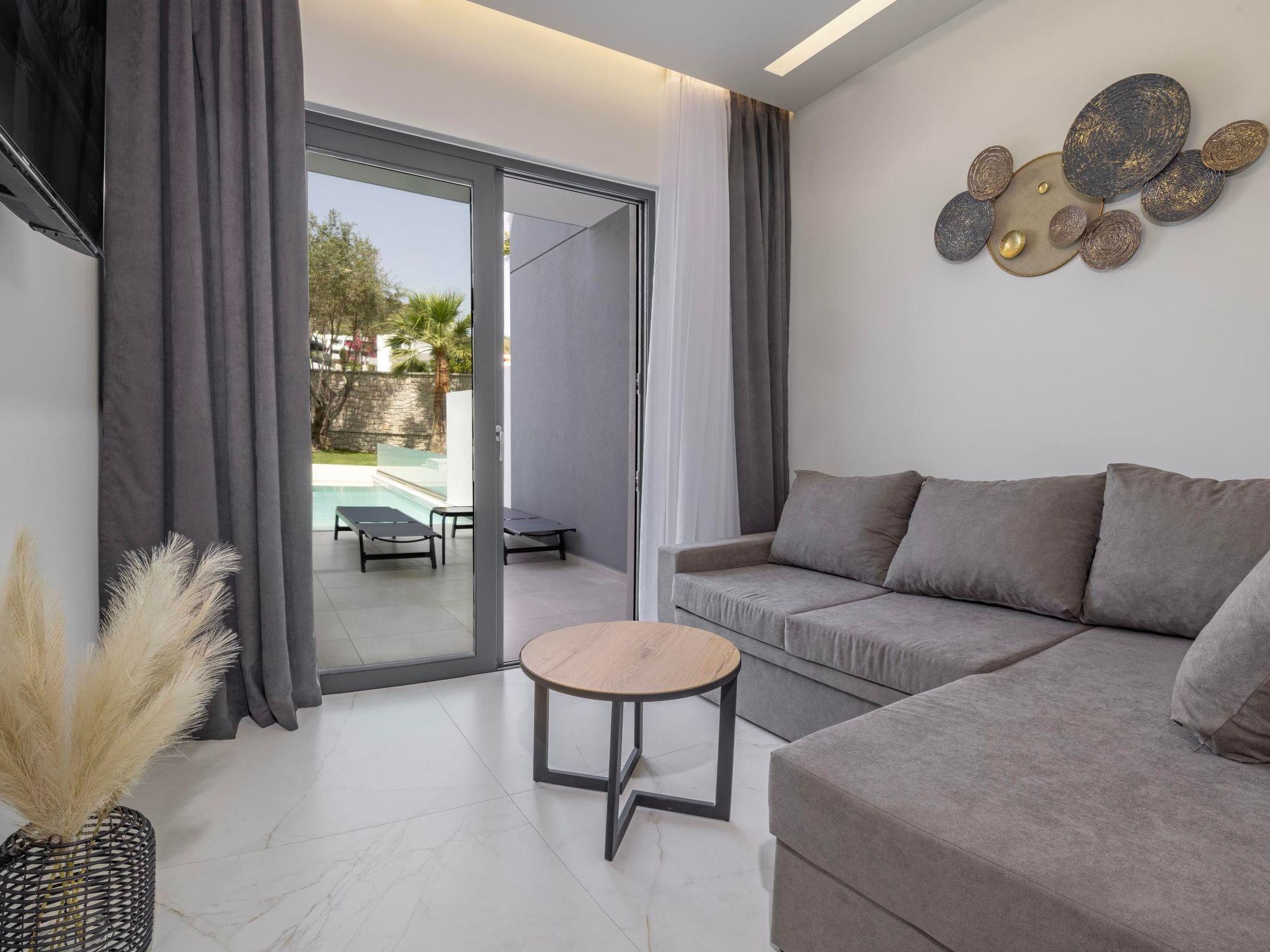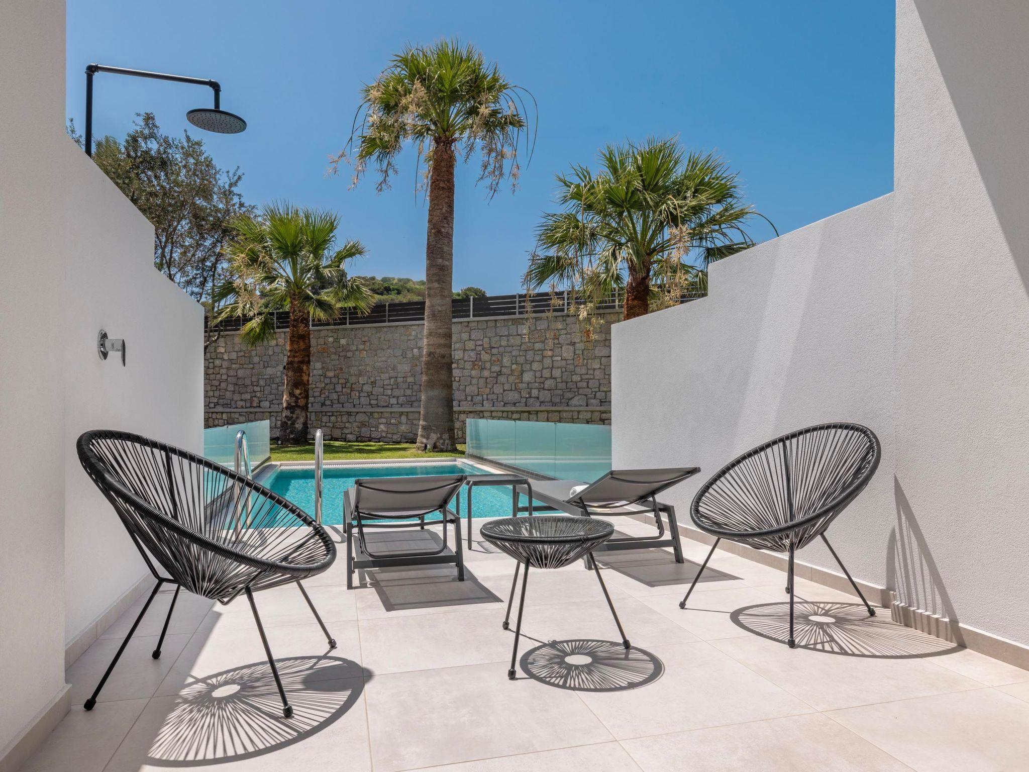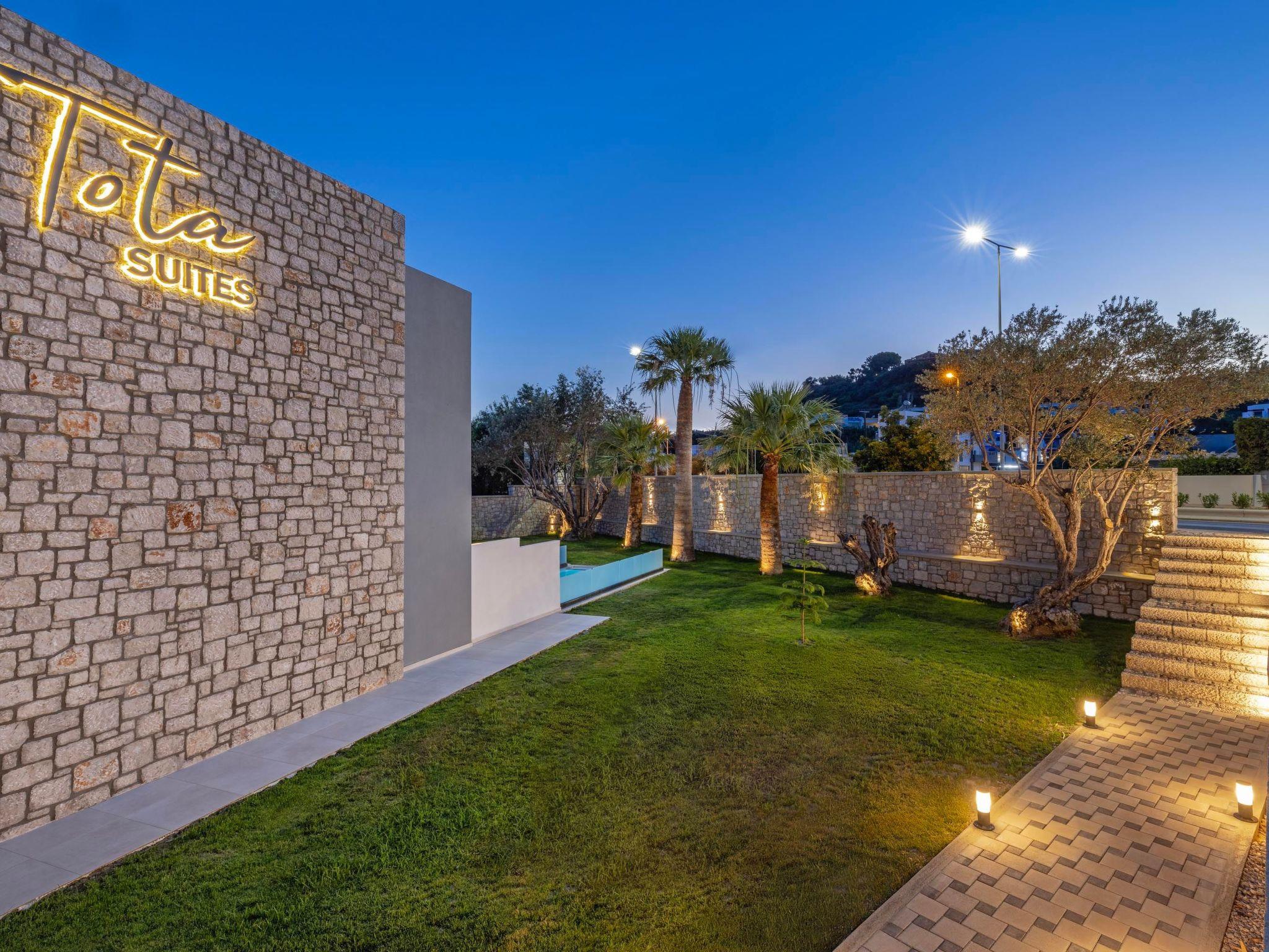 Tota Suites is a luxurious complex in Afantou, Rhodes, designed to offer a serene and comfortable retreat. Each of the six suites accommodates up to 4 guests, making them perfect for families or small groups. Inside each suite, the fully air-conditioned bedroom features a plush double bed and a private balcony, ideal for enjoying the tranquil surroundings. The bathroom is equipped with a modern shower, and there is an additional WC for convenience. The living room is a cozy space with a double sofa bed and a Smart TV, perfect for relaxing after a day of exploring. The fully equipped kitchen allows guests to prepare their own meals with ease, offering all the necessary appliances and utensils for a comfortable stay. Whether you're making a quick snack or a full meal, you'll find everything you need. Outside, each suite has its own private garden, providing a peaceful space to unwind. The outdoor dining area is perfect for enjoying meals in the fresh air, while the private swimming pool offers a refreshing escape from the warm Rhodes sun. Additionally, each suite includes a private parking space, ensuring secure and convenient access. Tota Suites combines modern amenities with a tranquil setting, offering guests the perfect blend of comfort, privacy, and luxury. Whether you're looking for relaxation or adventure, Tota Suites is the ideal choice for a memorable stay in Rhodes.