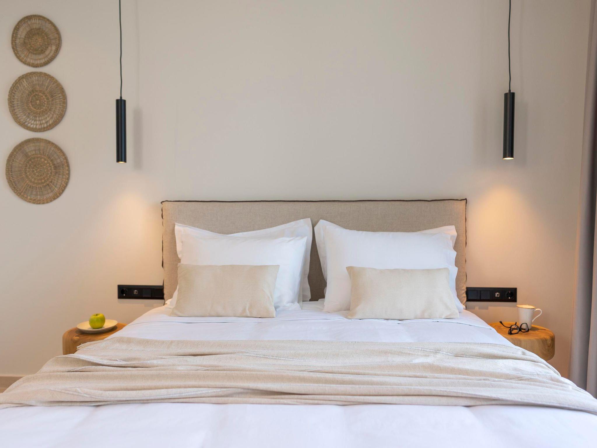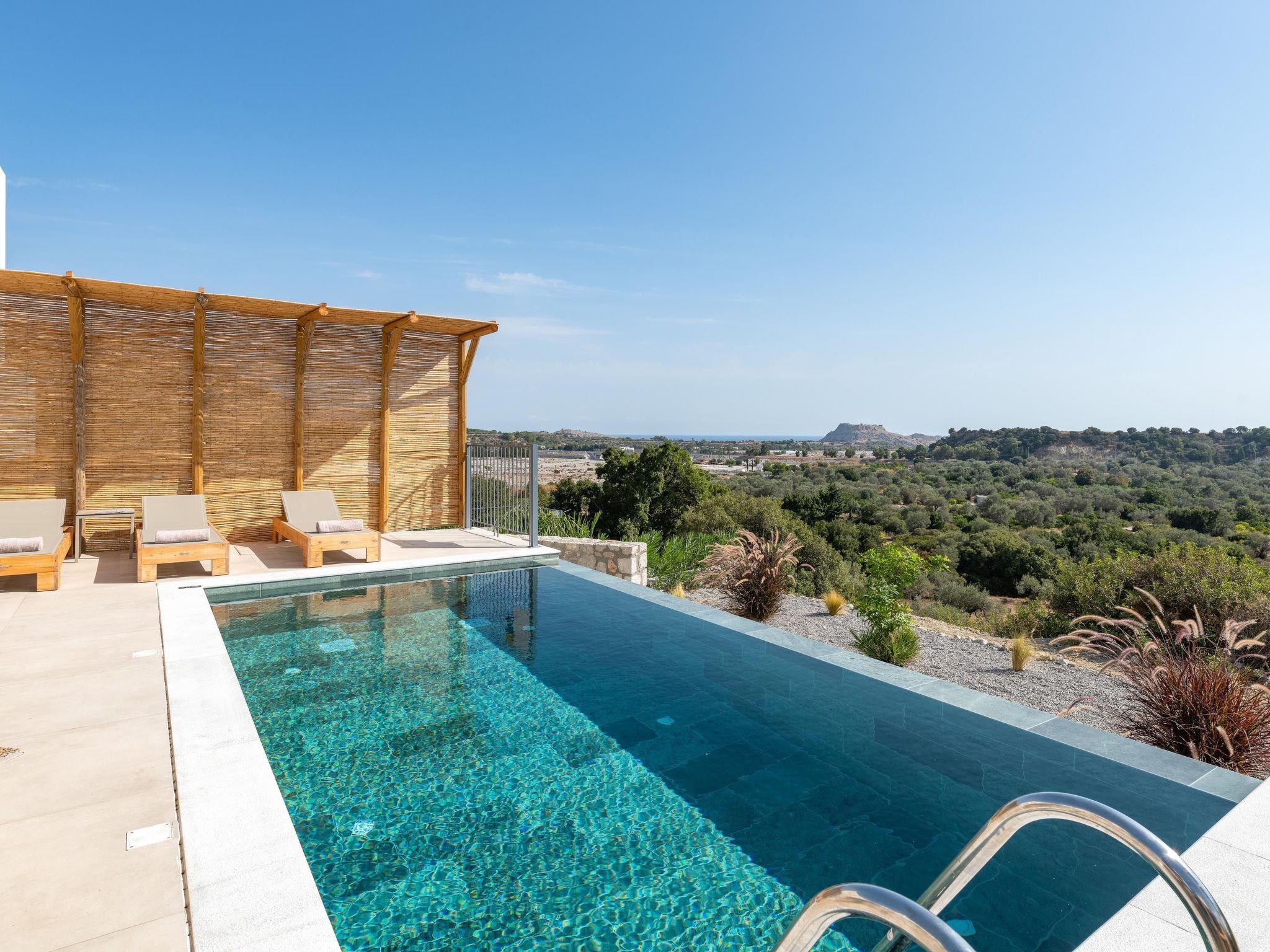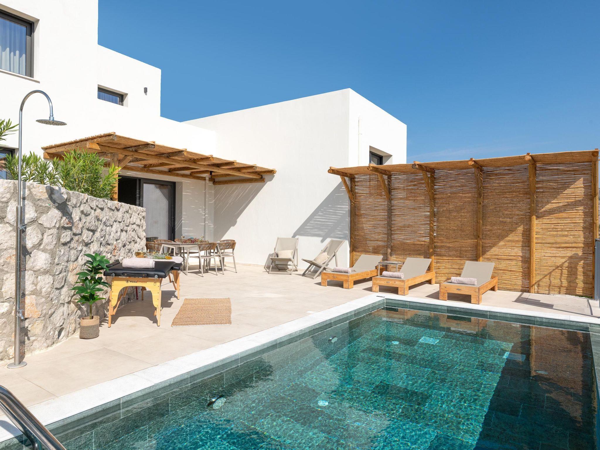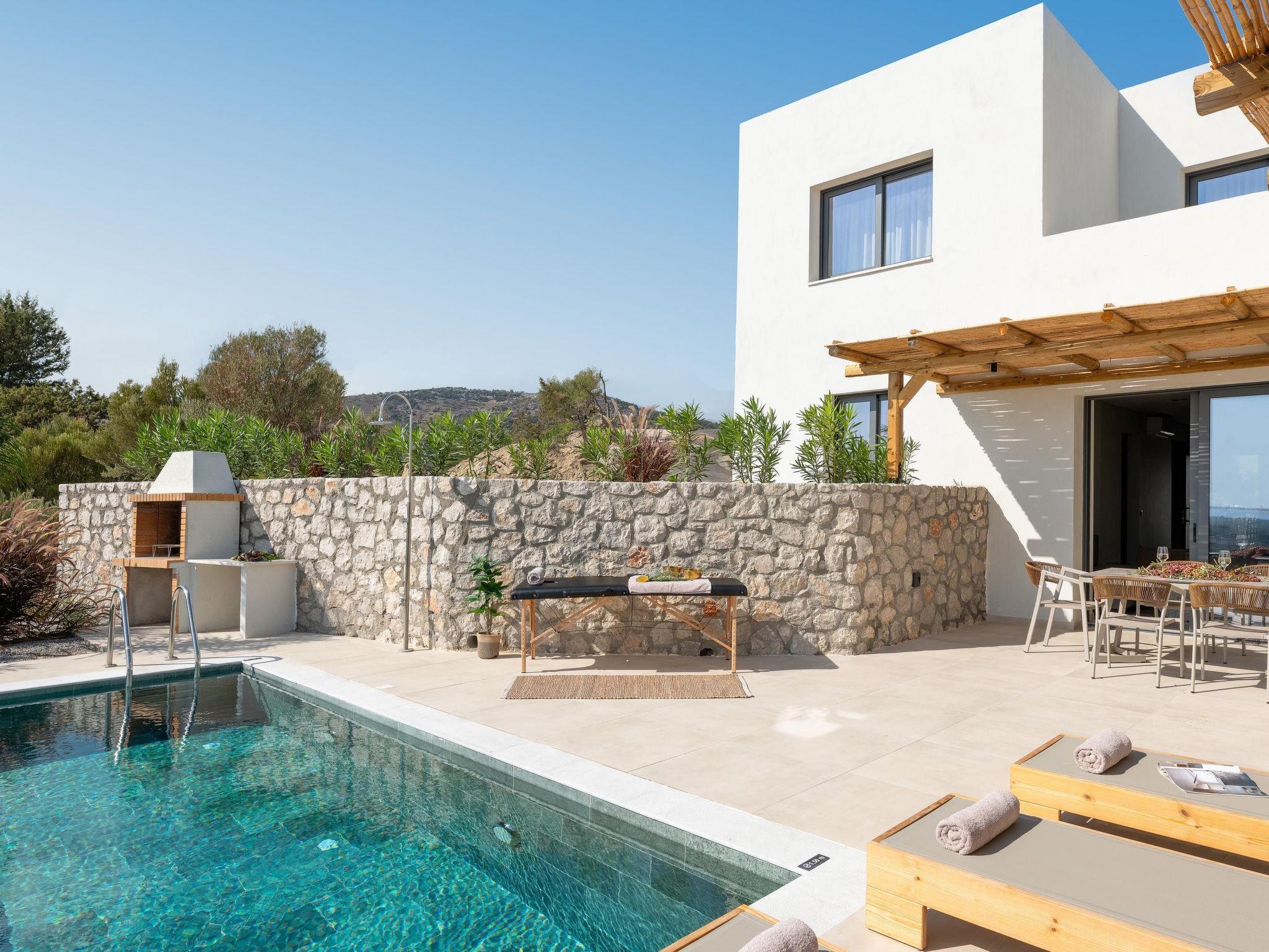 Massari Hills Luxury Living are 15 fantastic brand-new properties designed in unique minimal architecture with unique warm-colored details. They are located in Massari, only a 5-minute drive from Charaki beach. All of the modern villas provide you with all comforts, private swimming pools and patios in a unique design. There is an outdoor sharing gym and each villa offers a BBQ installation. Each property accommodates up to 8 guests.