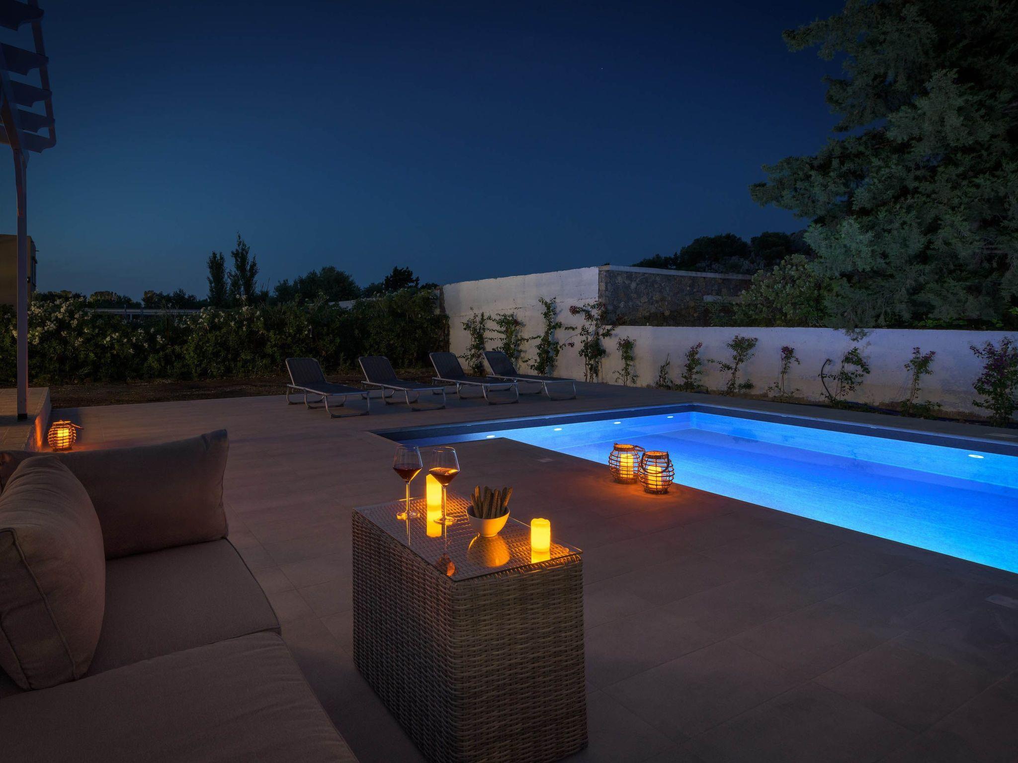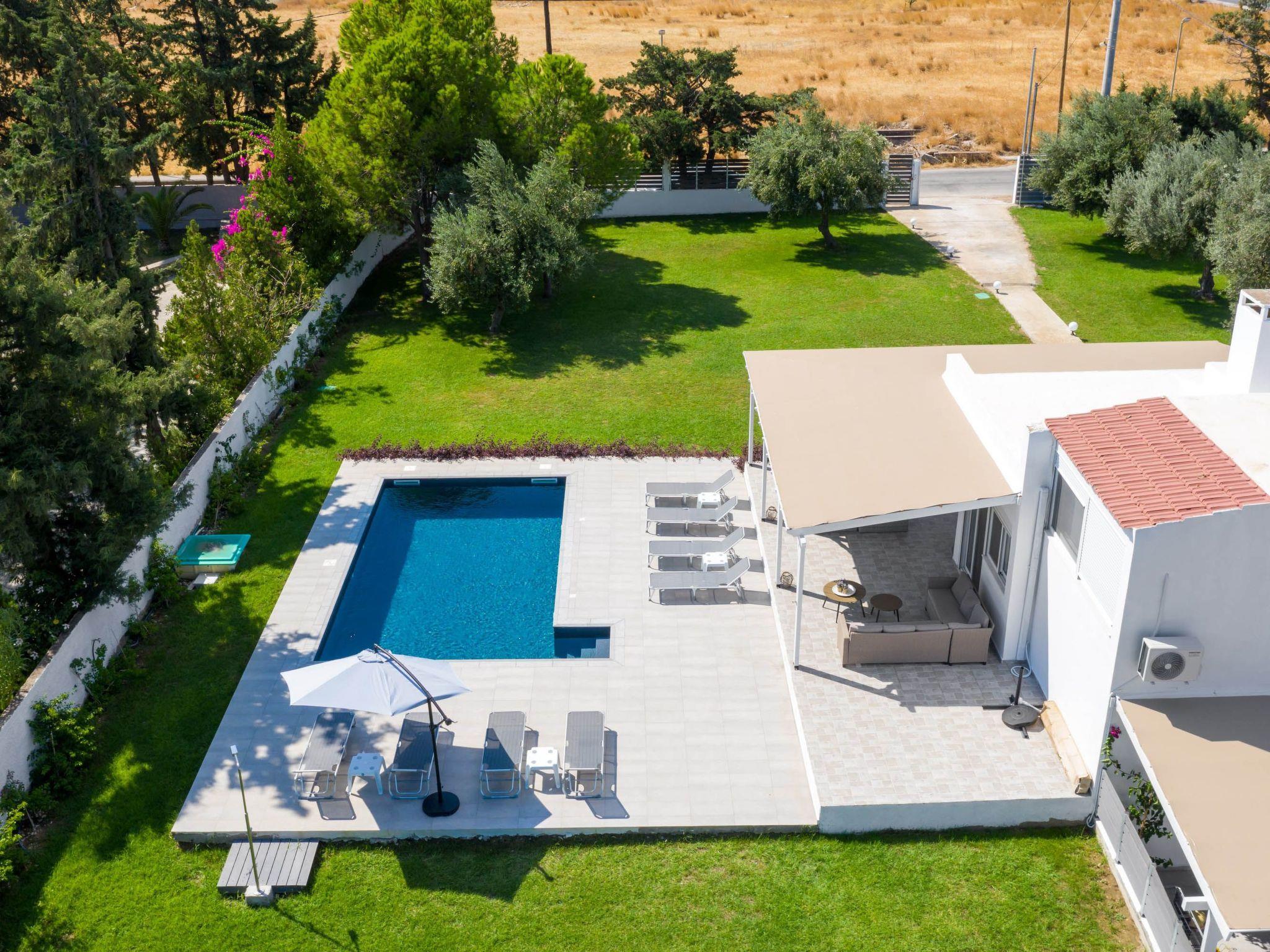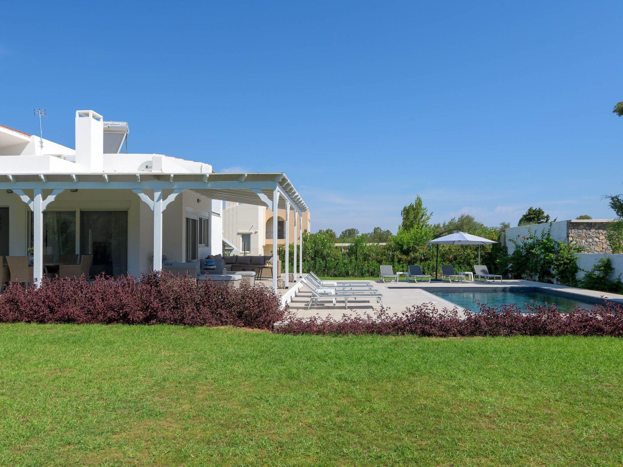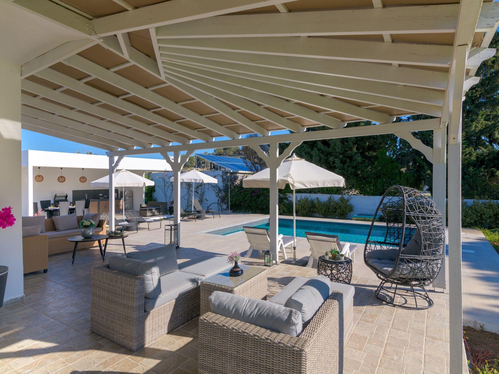 Casa Bianca Villa is an imposing structure located at Kolympia Village. It offers an incredible private swimming pool and accommodates up to 10 people. The nearest beach is found at a walking distance of 10 minutes. Decorated with unique furniture, Casa Bianca Villa is what you need for a pleasant and an unforgettable stay in Rhodes. Casa Bianca Villa has 3 incredible bedrooms. Two of the rooms have double beds and one of them has 4 single beds. Also, there is one double sofa bed in the living room. The property has 2 bathrooms, both with a stylish shower. There’s a fully equipped kitchen suitable for any meal preparation accompanied from the sitting area. In addition, there’s a comfy living room with a screen TV with satellite channels and a game console. There’s free Wi-Fi access throughout the property. Outdoors, there’s a private swimming pool with its sunbeds where you can work on your tan and relax under the Aegean sun. Also, there’s a BBQ facility and a beautiful siting area to enjoy a meal with your loved ones.