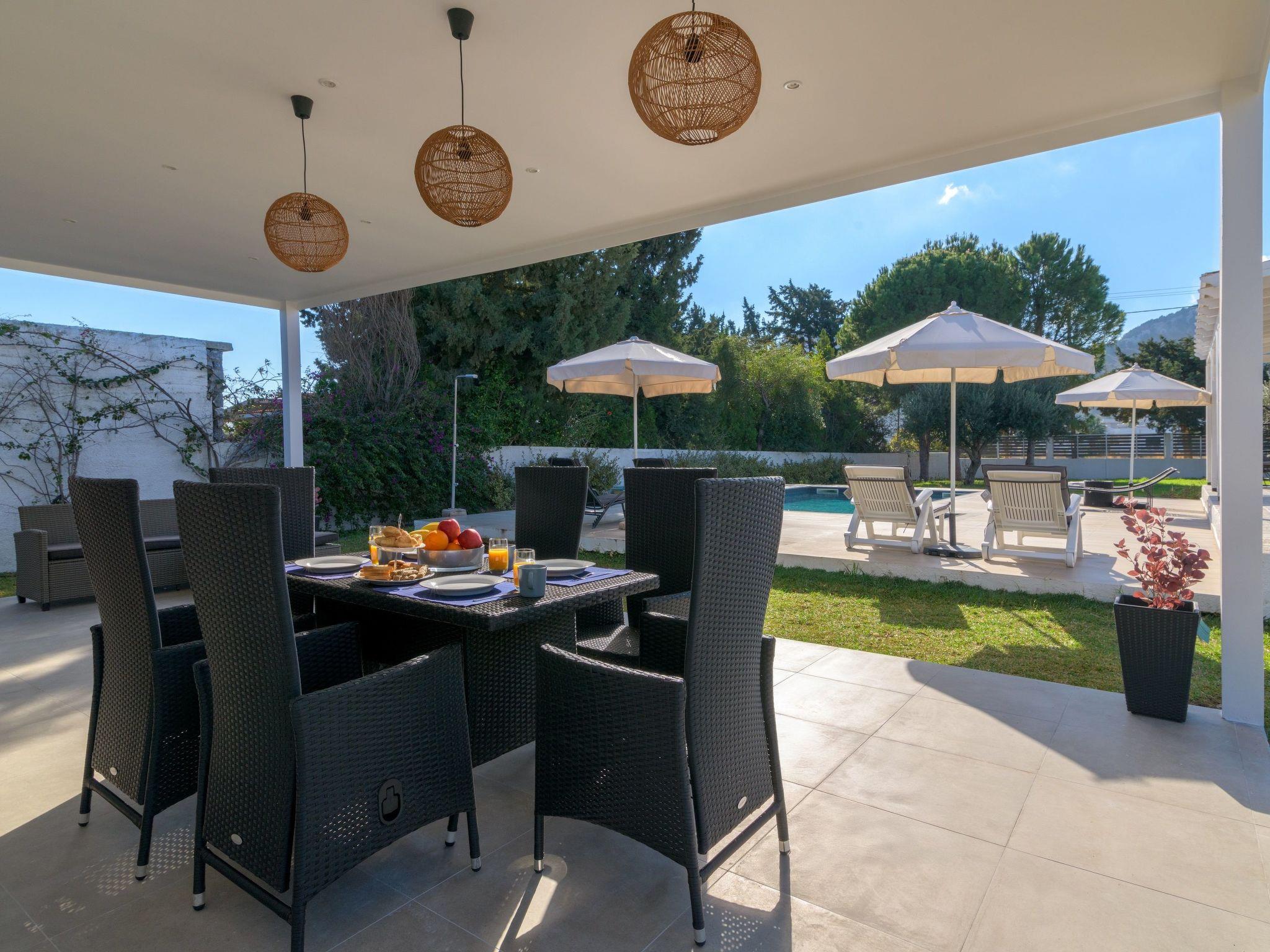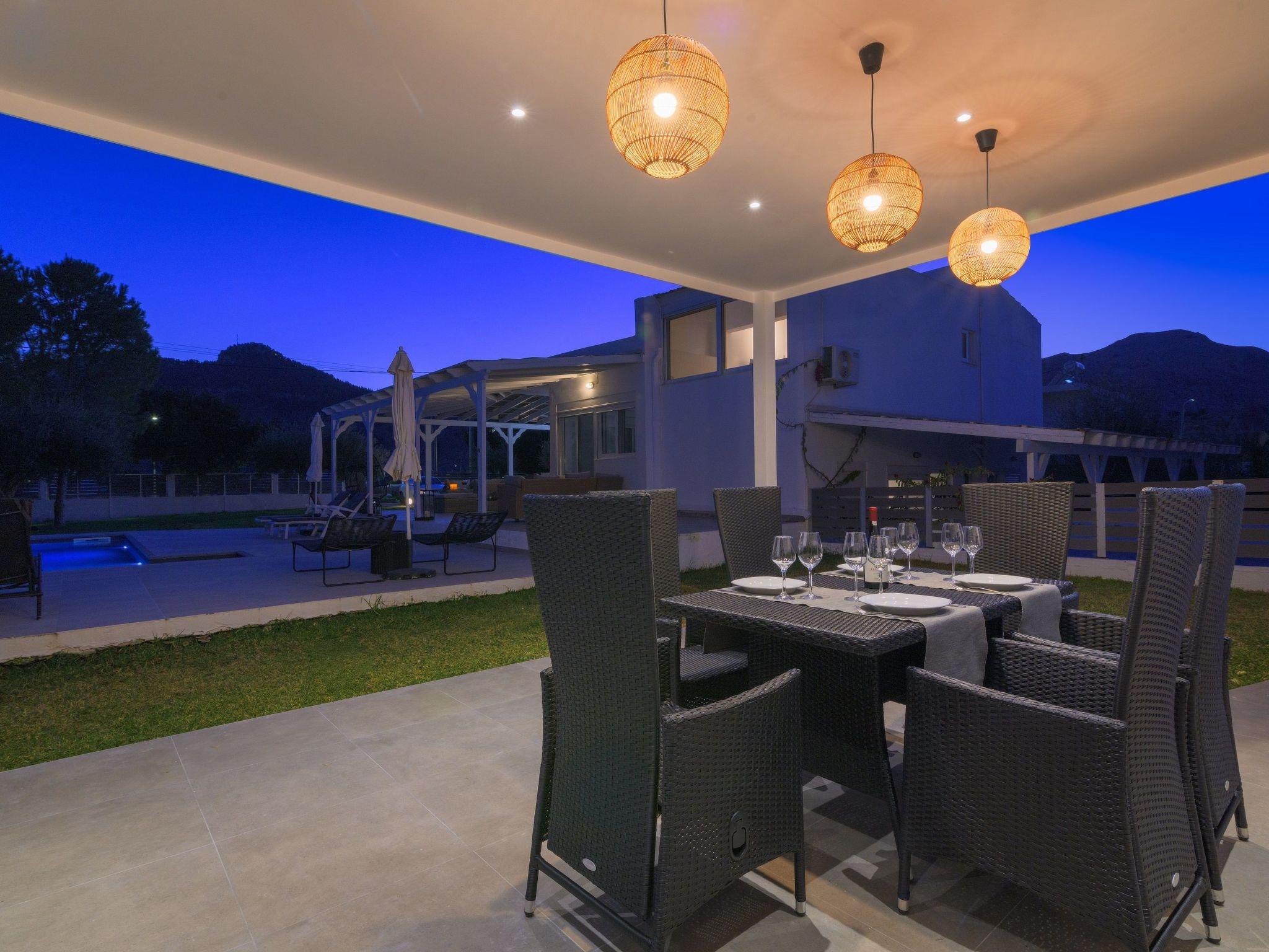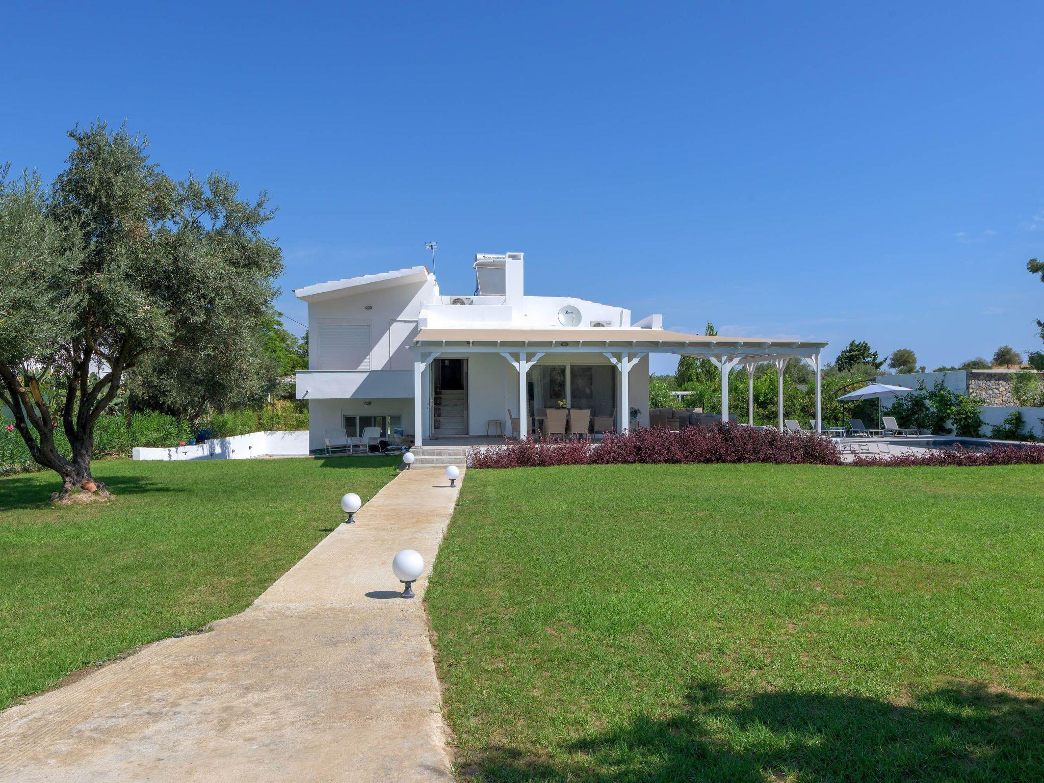 Casa Bianca Villa is an imposing structure located at Kolympia Village. It offers an incredible private swimming pool and accommodates up to 10 people. The nearest beach is found at a walking distance of 10 minutes. Decorated with unique furniture, Casa Bianca Villa is what you need for a pleasant and an unforgettable stay in Rhodes. Casa Bianca Villa has 3 incredible bedrooms. Two of the rooms have double beds and one of them has 4 single beds. Also, there is one double sofa bed in the living room. The property has 2 bathrooms, both with a stylish shower. There’s a fully equipped kitchen suitable for any meal preparation accompanied from the sitting area. In addition, there’s a comfy living room with a screen TV with satellite channels and a game console. There’s free Wi-Fi access throughout the property. Outdoors, there’s a private swimming pool with its sunbeds where you can work on your tan and relax under the Aegean sun. Also, there’s a BBQ facility and a beautiful siting area to enjoy a meal with your loved ones.
