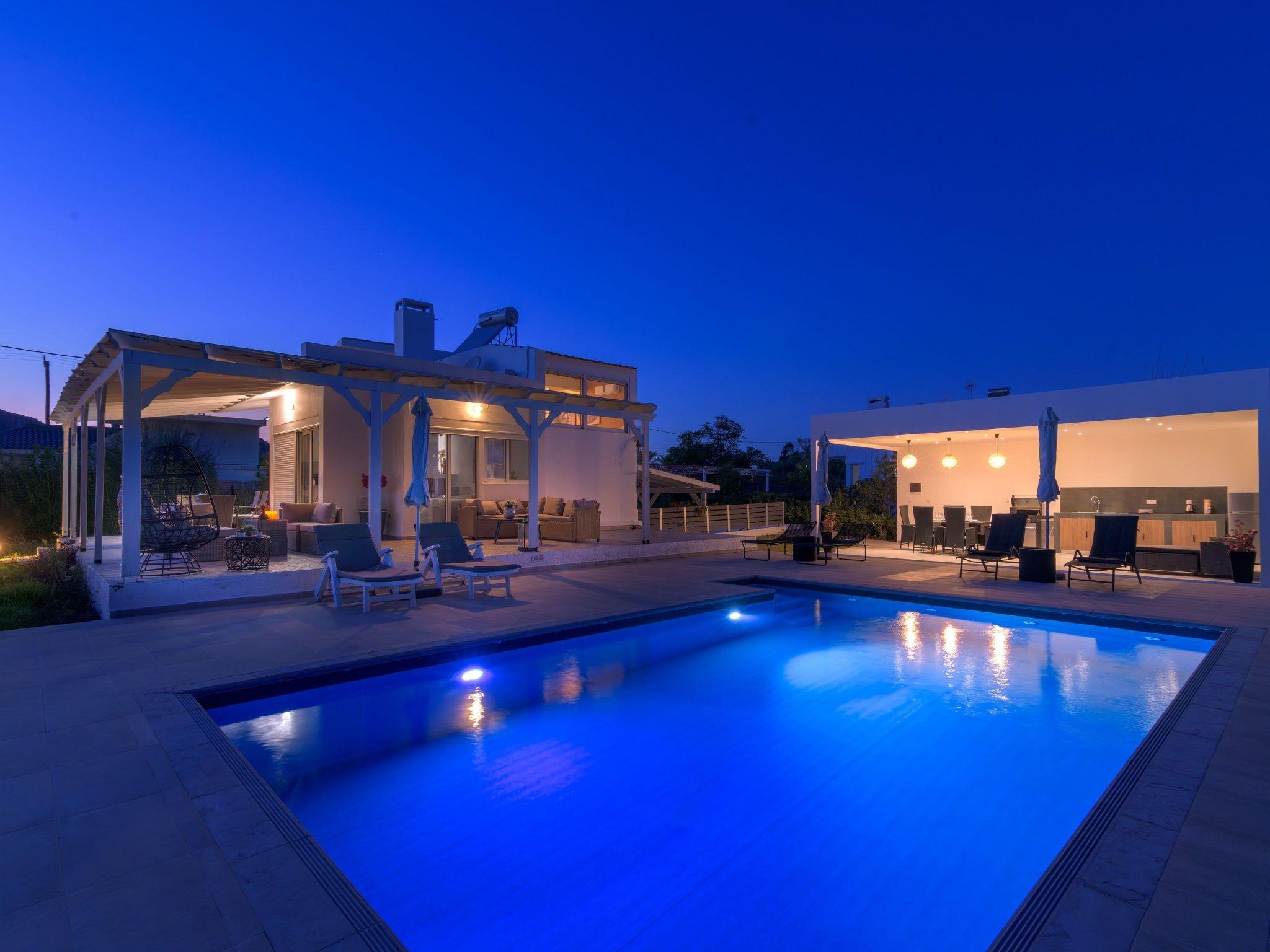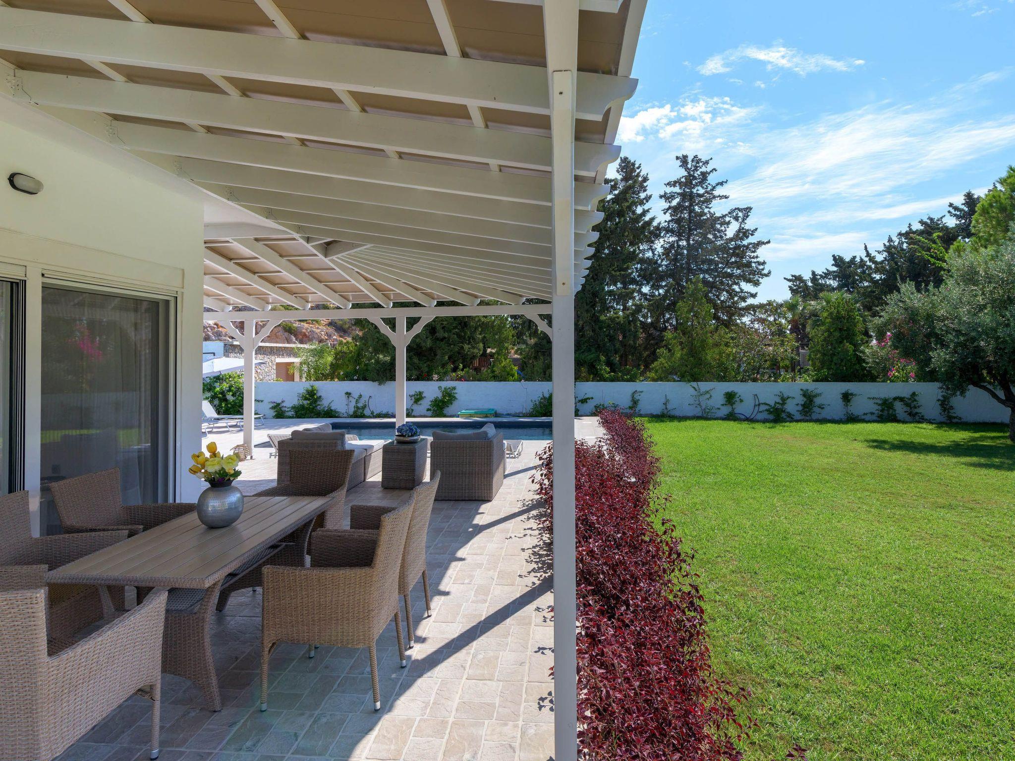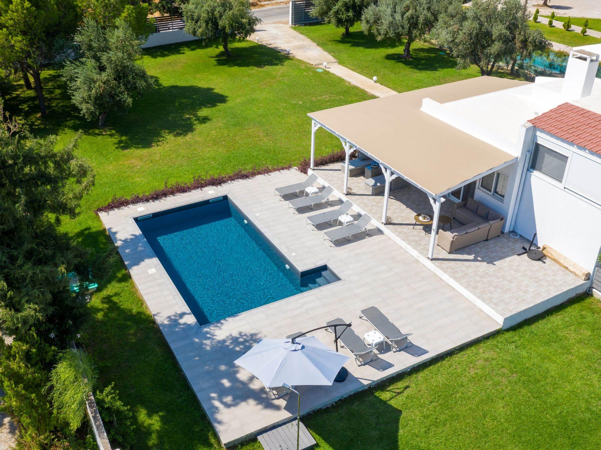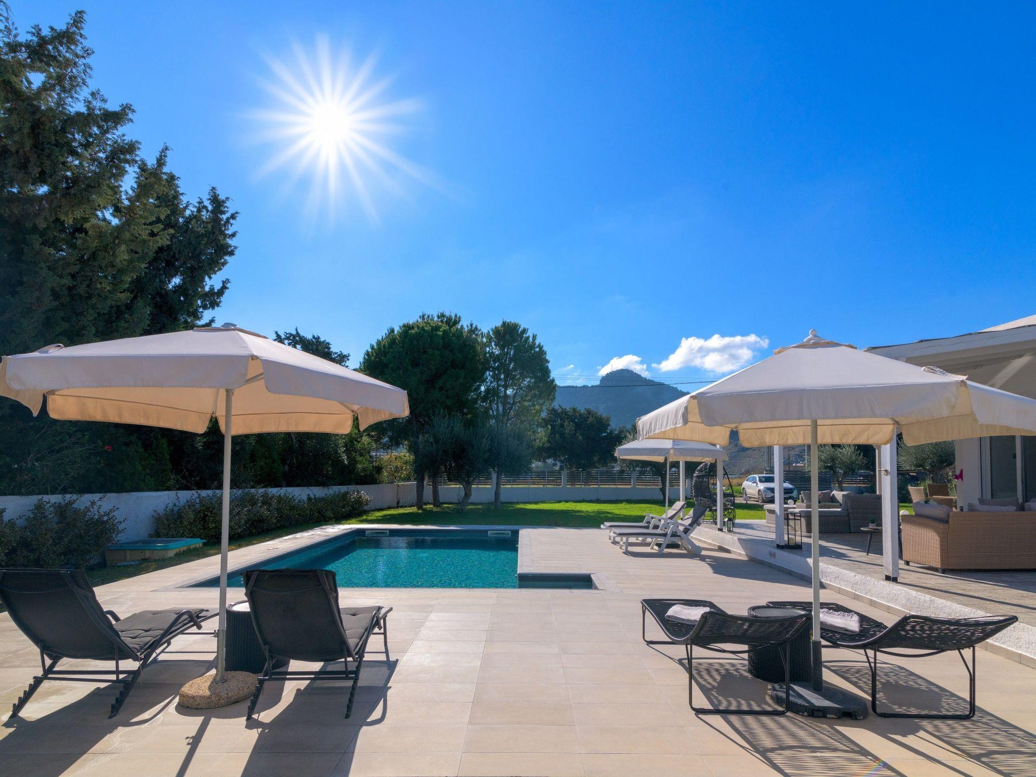 Casa Bianca Villa is an imposing structure located at Kolympia Village. It offers an incredible private swimming pool and accommodates up to 10 people. The nearest beach is found at a walking distance of 10 minutes. Decorated with unique furniture, Casa Bianca Villa is what you need for a pleasant and an unforgettable stay in Rhodes. Casa Bianca Villa has 3 incredible bedrooms. Two of the rooms have double beds and one of them has 4 single beds. Also, there is one double sofa bed in the living room. The property has 2 bathrooms, both with a stylish shower. There’s a fully equipped kitchen suitable for any meal preparation accompanied from the sitting area. In addition, there’s a comfy living room with a screen TV with satellite channels and a game console. There’s free Wi-Fi access throughout the property. Outdoors, there’s a private swimming pool with its sunbeds where you can work on your tan and relax under the Aegean sun. Also, there’s a BBQ facility and a beautiful siting area to enjoy a meal with your loved ones.