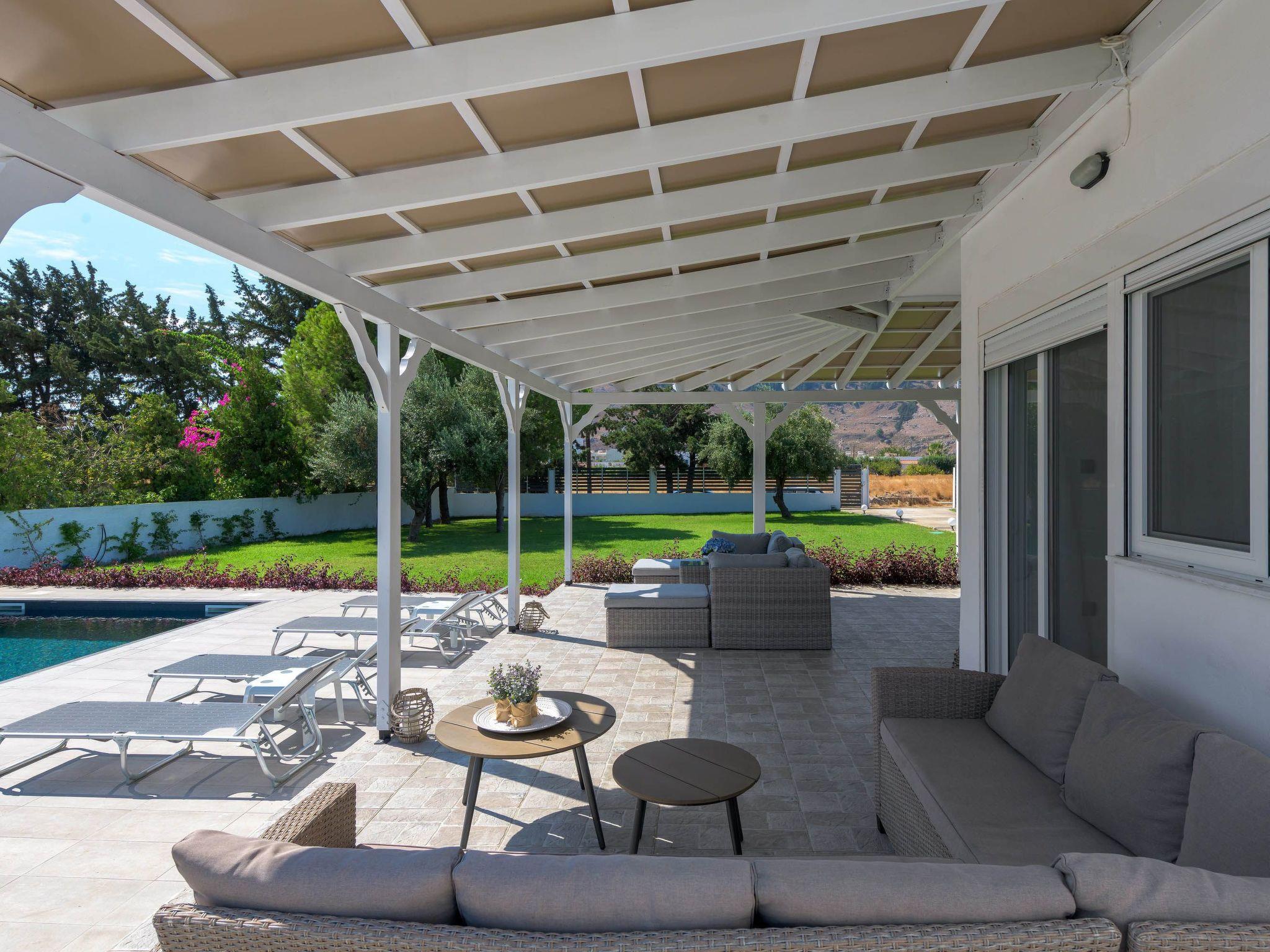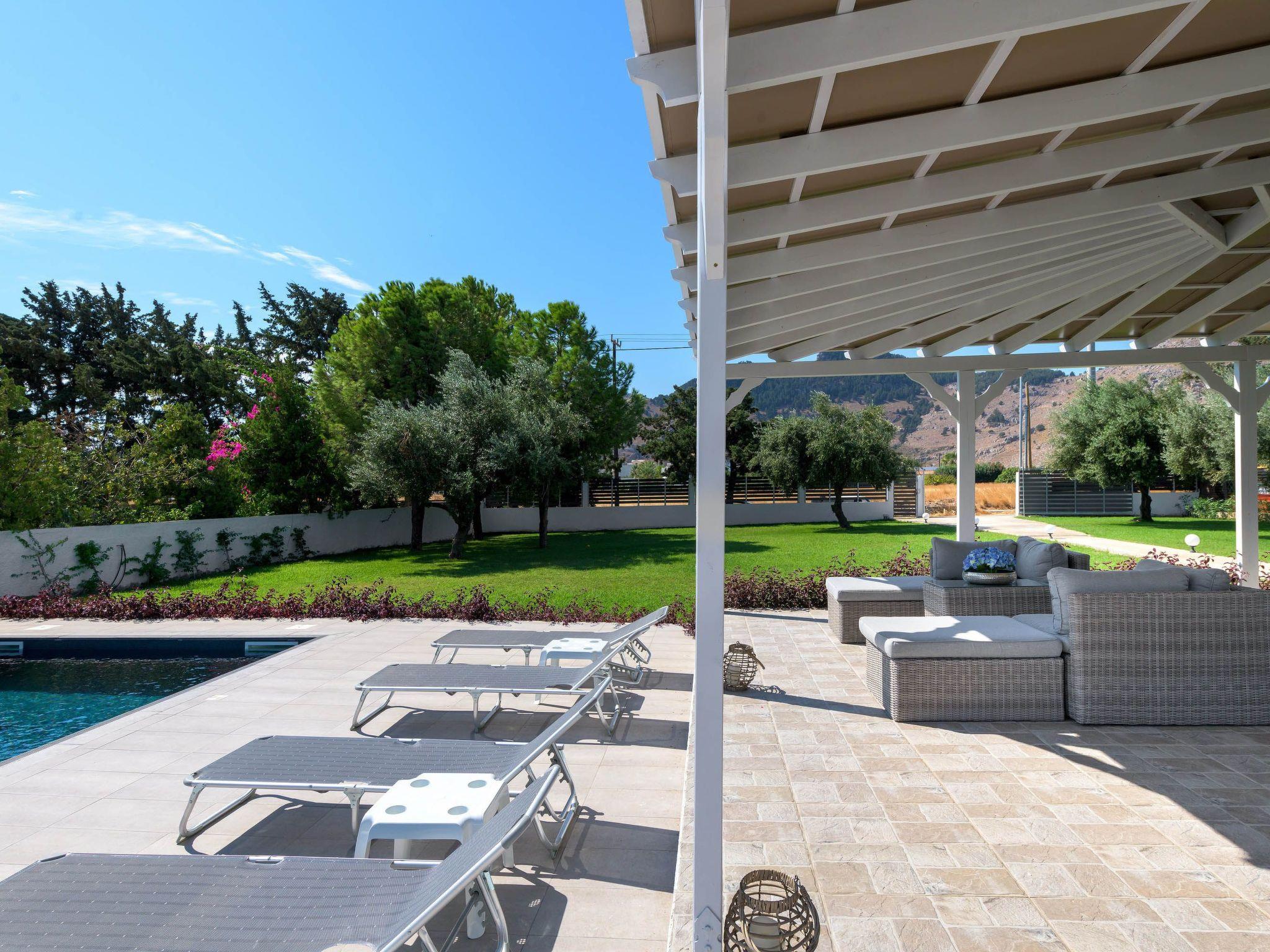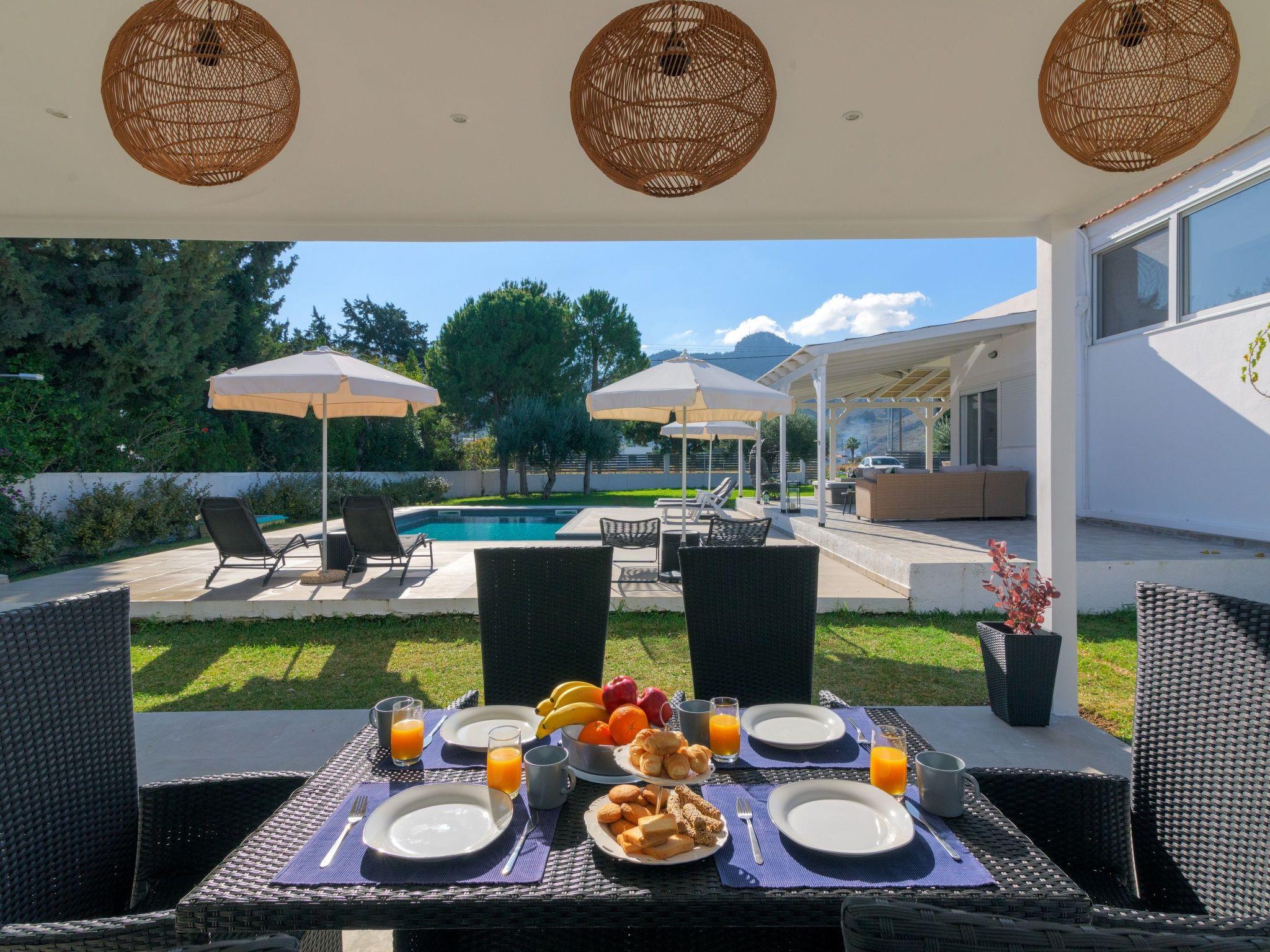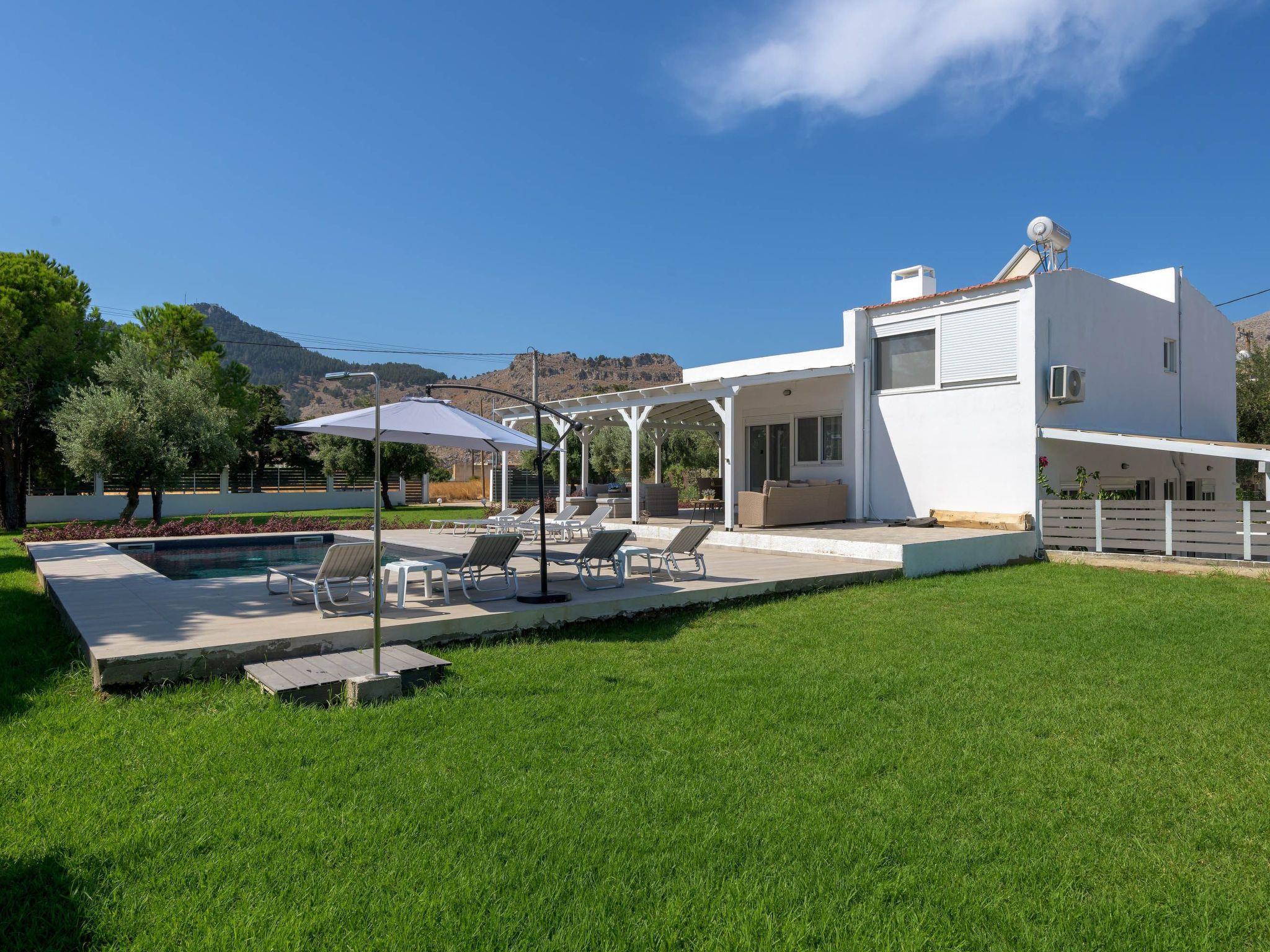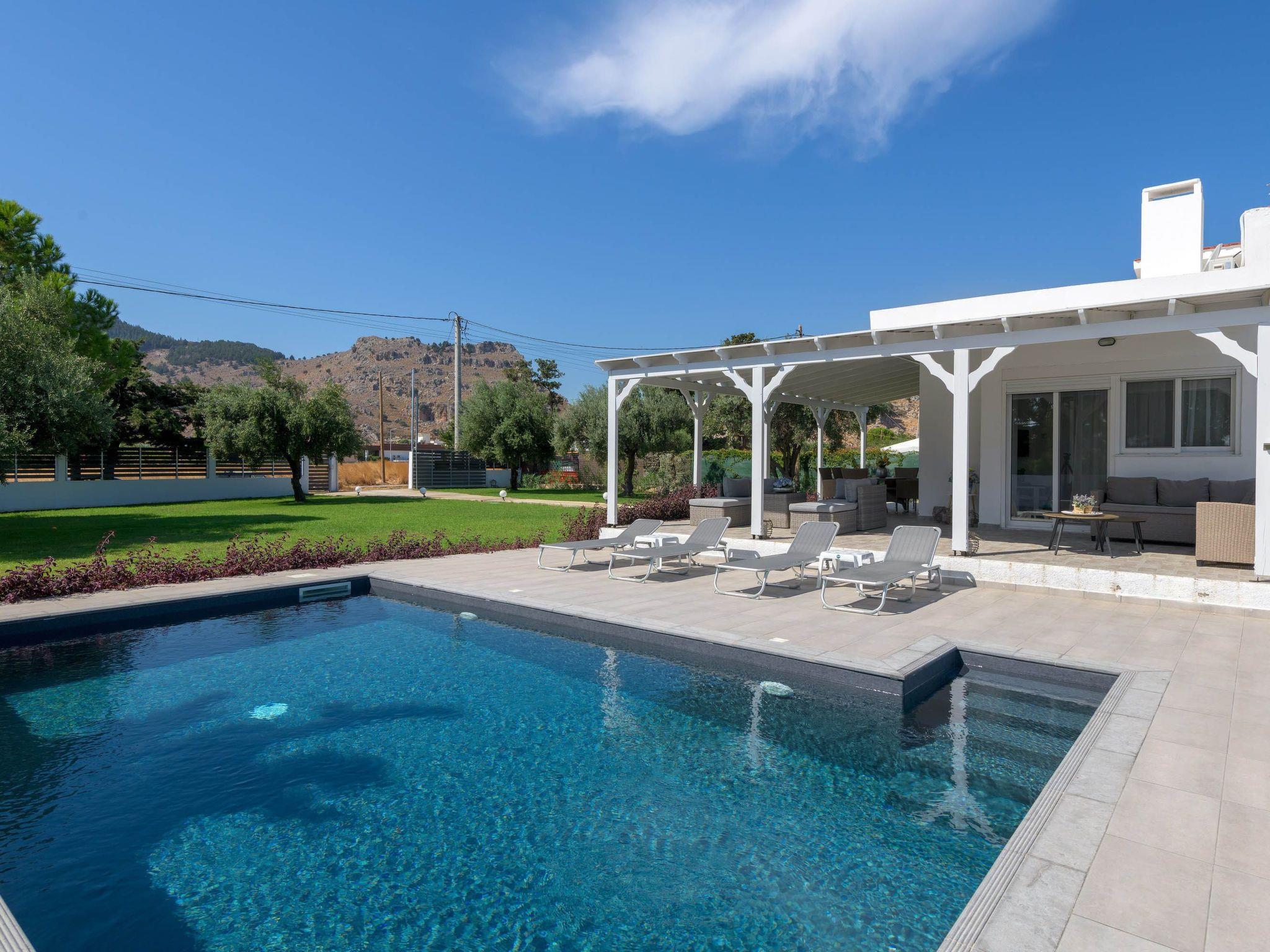 Casa Bianca Villa is located at Kolympia Village. At a walking distance, you can find everything you might need such as shops, pharmacies, restaurants, car rentals etc. Also, the nearest beach is found at a walking distance of 10 minutes. You should visit Tsambika beach which has a breathtaking landscape and it’s found at a driving distance of only a 10 minute drive. You shouldn’t miss visiting Lindos which has the most beautiful archaeological site in Rhodes at a driving distance of only a 25 minute drive. There, you’ll find the most idyllic beaches in Rhodes. Old Town of Rhodes is the oldest inhabited medieval town in Europe and is found at a driving distance of only 35 minutes.