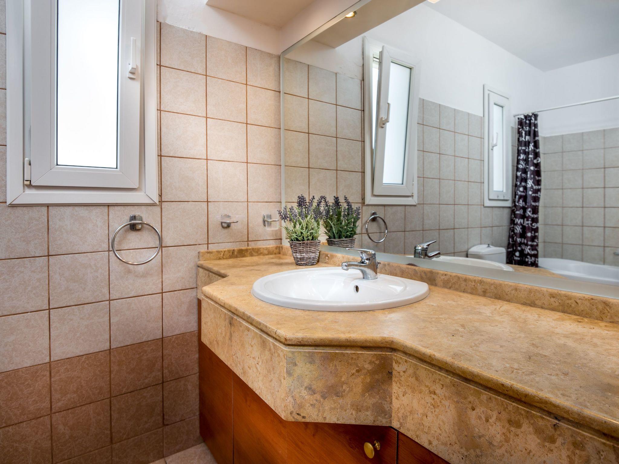 There are 3 air conditioned bedrooms, two with double beds and one with twin beds. The house has a spacious, modernly equipped kitchen and a comfortable dining area. The living room has access to a furnished terrace with panoramic views of the surrounding area and offers a unique setting for relaxation. There’s a screen TV and a free Wi-Fi access throughout the property. Outdoors, you’ll find a private swimming pool with its sunbeds to work on your tan under the rays of the Aegean sun. The surrounding area is quite inviting and welcoming. Also, there’s a BBQ facility as well as a dining area to enjoy a meal and a gathering with your friends or family.