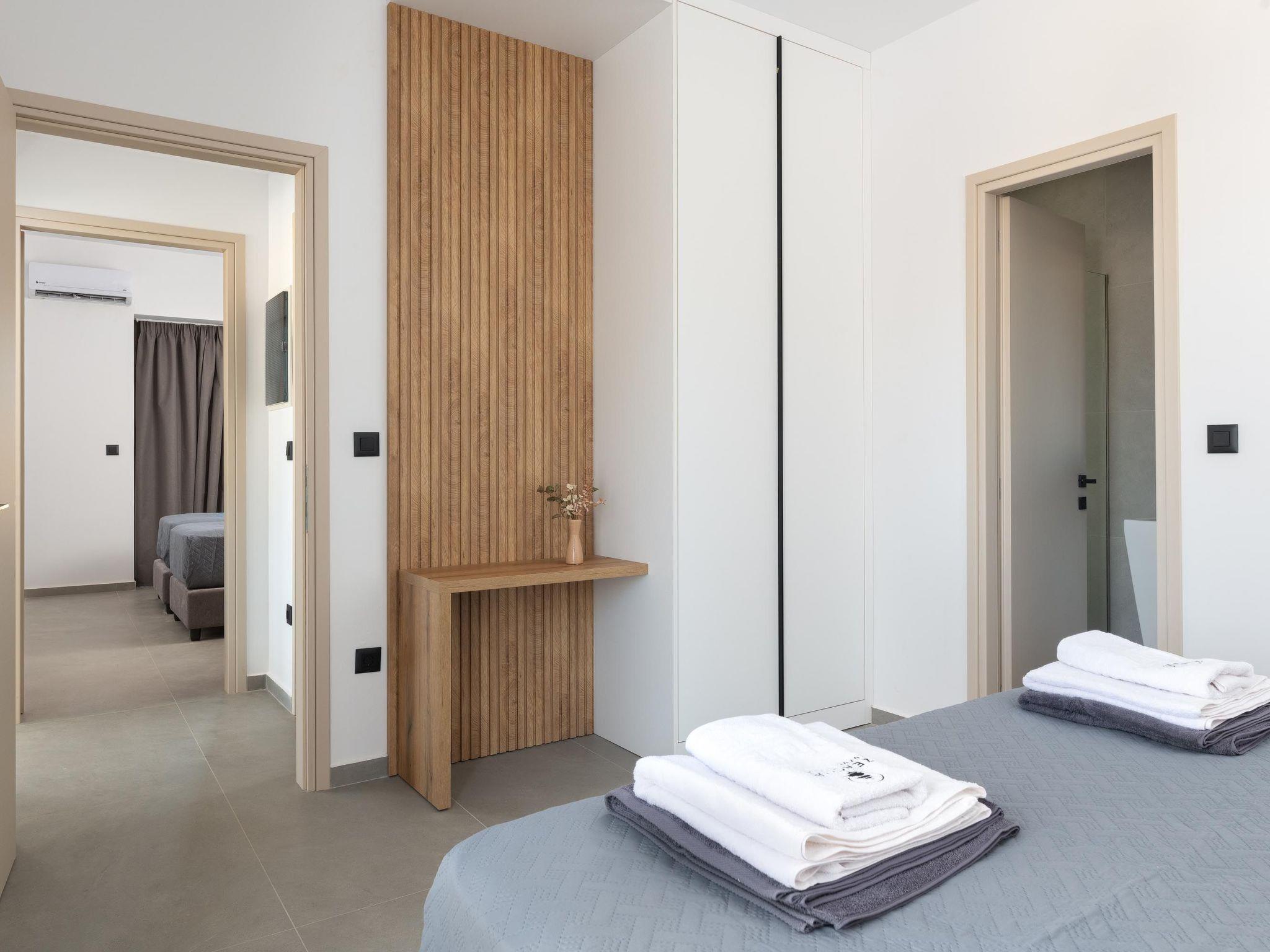 Zen Club Luxury Villas in Kolympia Village, Rhodes Island, features 15 stunning villas, each designed for ultimate comfort. Each villa includes two bedrooms: one with a double bed and another with two single beds that can be converted into a double bed. There are two modern showers, ensuring convenience for all guests. Inside, you'll find a TV and a fully equipped kitchen, perfect for preparing meals. The private garden offers a peaceful escape, complete with an outdoor kitchen, outdoor furniture, and a BBQ for enjoyable outdoor dining. Each villa also includes private parking, ensuring the safety and convenience of your vehicle. These villas combine modern amenities with beautiful surroundings, creating an ideal setting for a relaxing holiday. Enjoy the luxury of a private pool and the peace of a secluded garden, making Zen Club Luxury Villas the perfect choice for your stay in Rhodes.