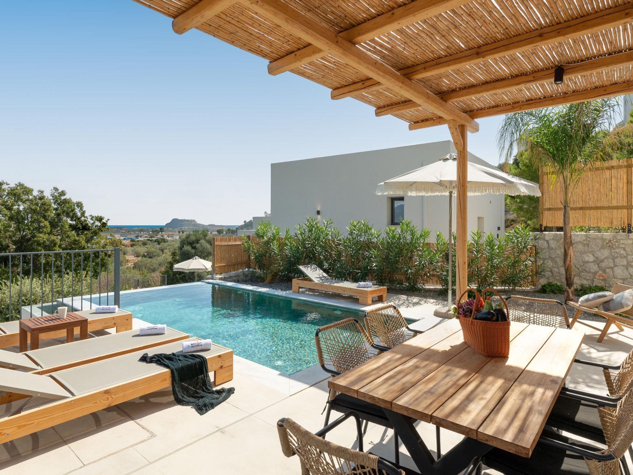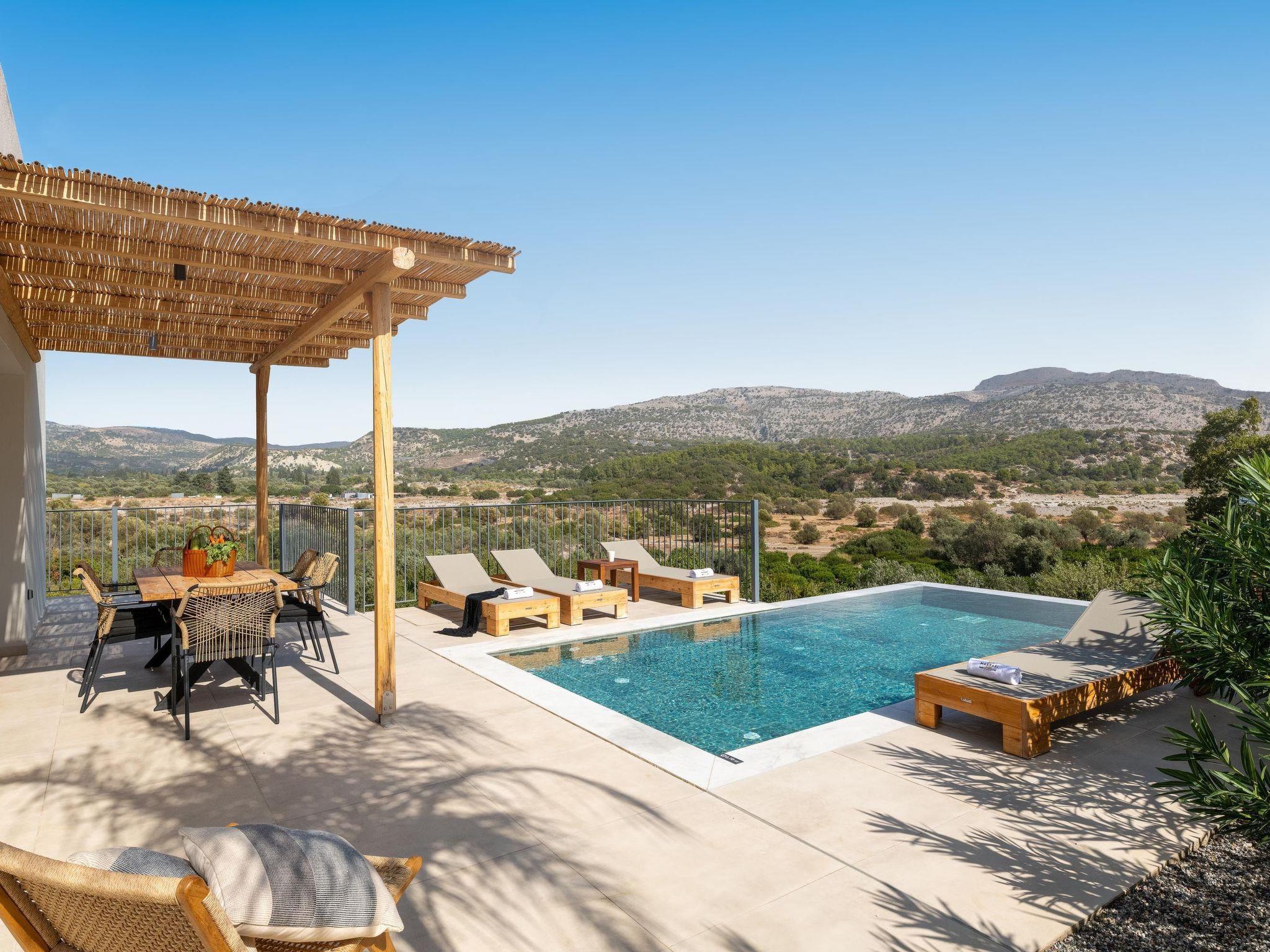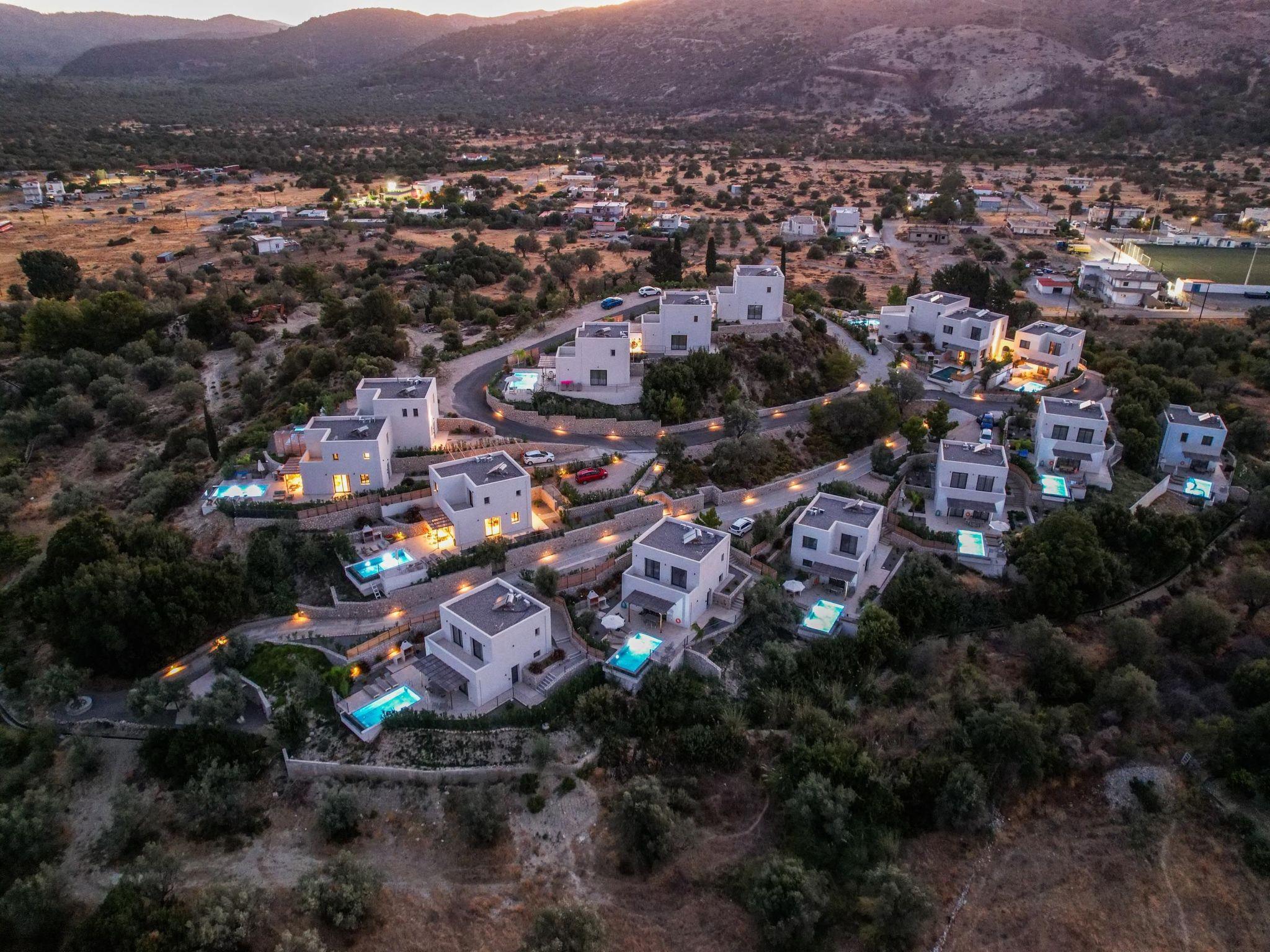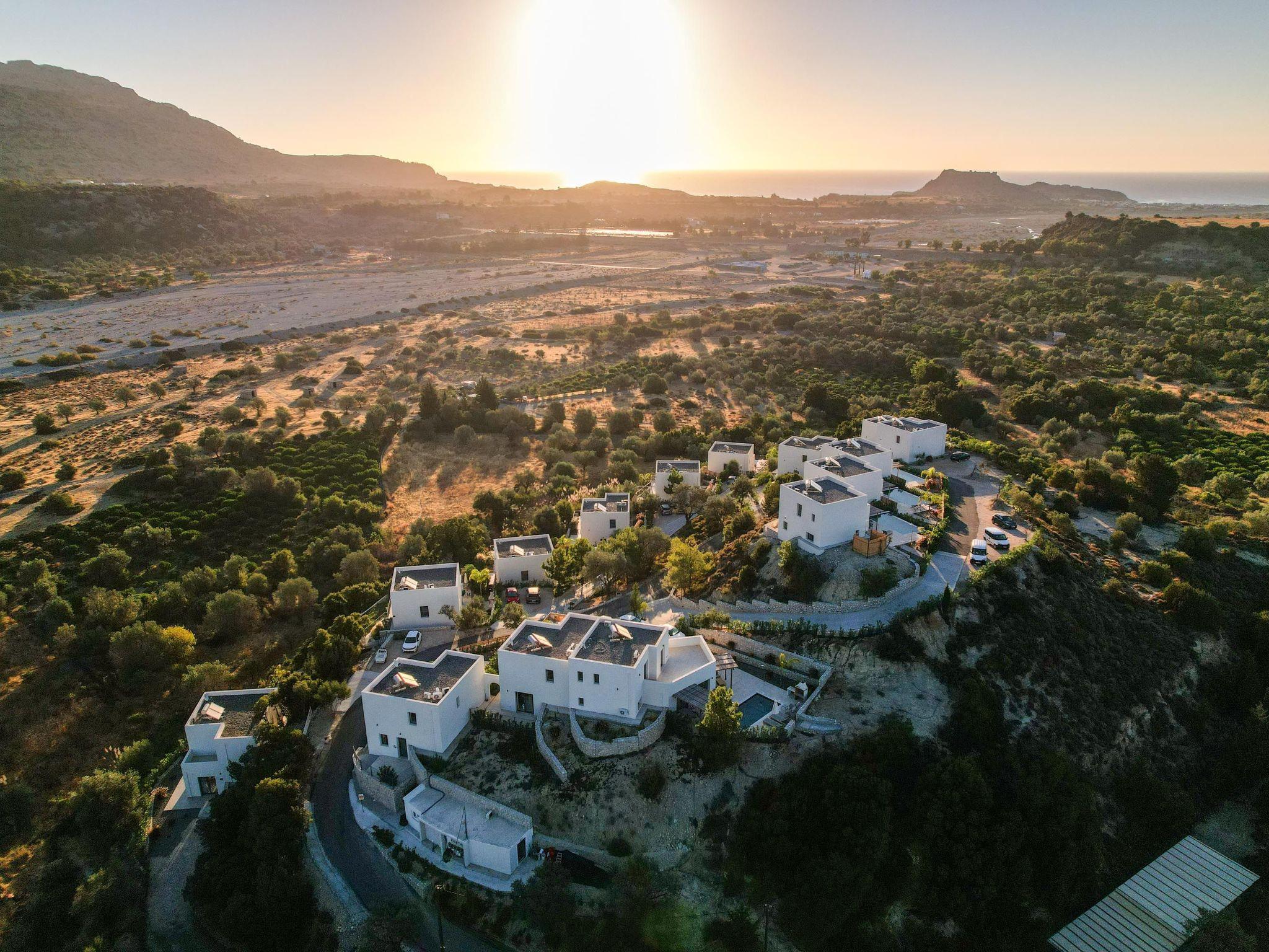 Massari Hills Luxury Living are 15 fantastic brand-new properties designed in unique minimal architecture with unique warm-colored details. They are located in Massari, only a 5-minute drive from Charaki beach. All of the modern villas provide you with all comforts, private swimming pools and patios in a unique design. There is an outdoor sharing gym and each villa offers a BBQ installation. Each property accommodates up to 8 guests.