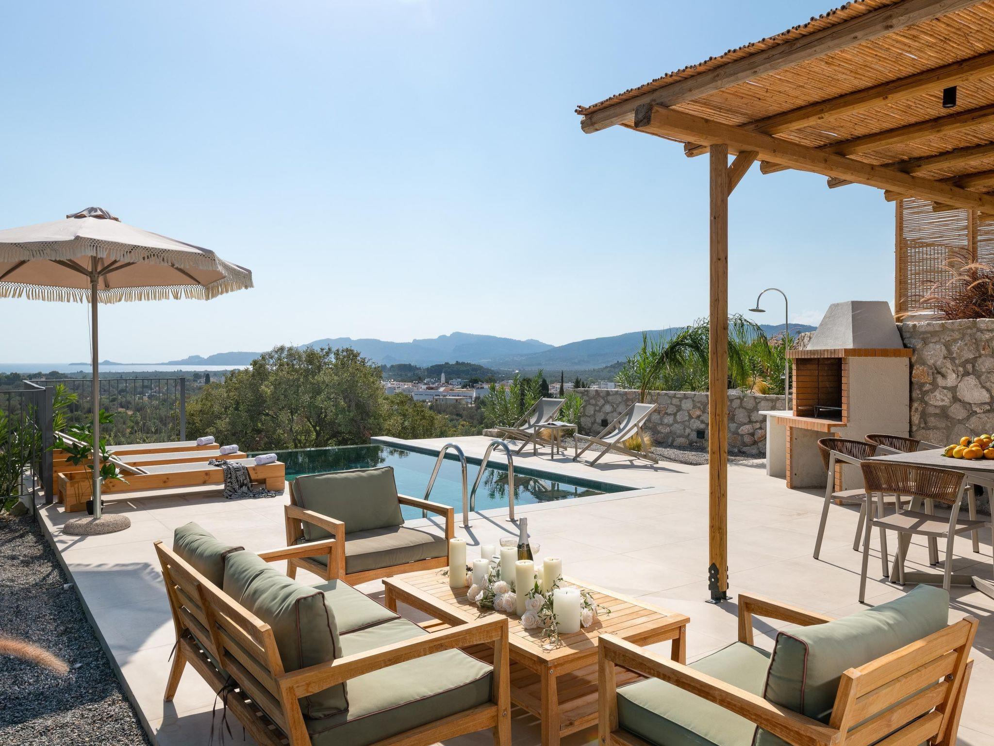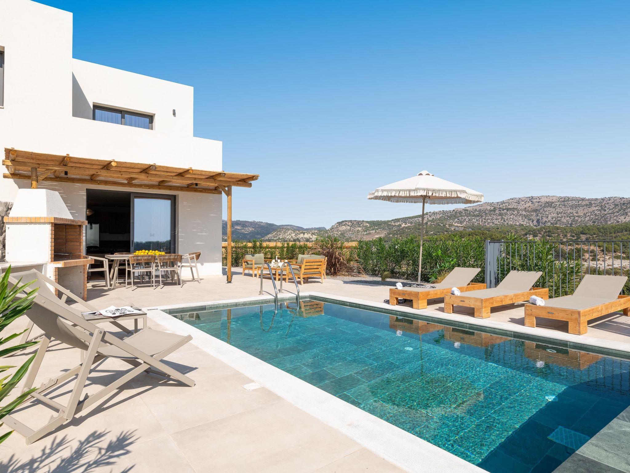 Massari Hills Luxury Living are 15 fantastic brand-new properties designed in unique minimal architecture with unique warm-colored details. They are located in Massari, only a 5-minute drive from Charaki beach. All of the modern villas provide you with all comforts, private swimming pools and patios in a unique design. There is an outdoor sharing gym and each villa offers a BBQ installation. Each property accommodates up to 8 guests.