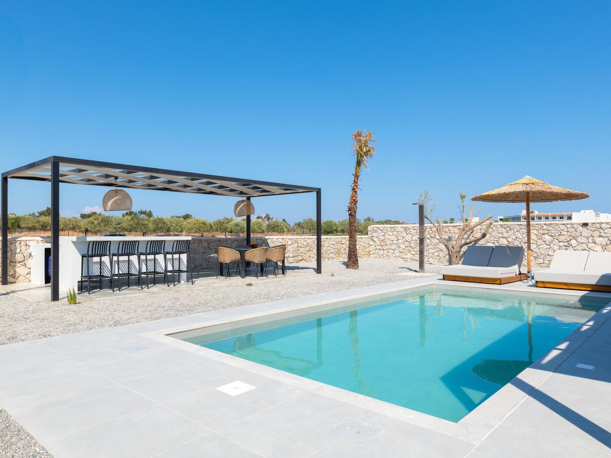 Zen Club Luxury Villas in Kolympia Village, Rhodes Island, features 15 stunning villas, each designed for ultimate comfort. Each villa includes two bedrooms: one with a double bed and another with two single beds that can be converted into a double bed. There are two modern showers, ensuring convenience for all guests. Inside, you'll find a TV and a fully equipped kitchen, perfect for preparing meals. The private garden offers a peaceful escape, complete with an outdoor kitchen, outdoor furniture, and a BBQ for enjoyable outdoor dining. Each villa also includes private parking, ensuring the safety and convenience of your vehicle. These villas combine modern amenities with beautiful surroundings, creating an ideal setting for a relaxing holiday. Enjoy the luxury of a private pool and the peace of a secluded garden, making Zen Club Luxury Villas the perfect choice for your stay in Rhodes.