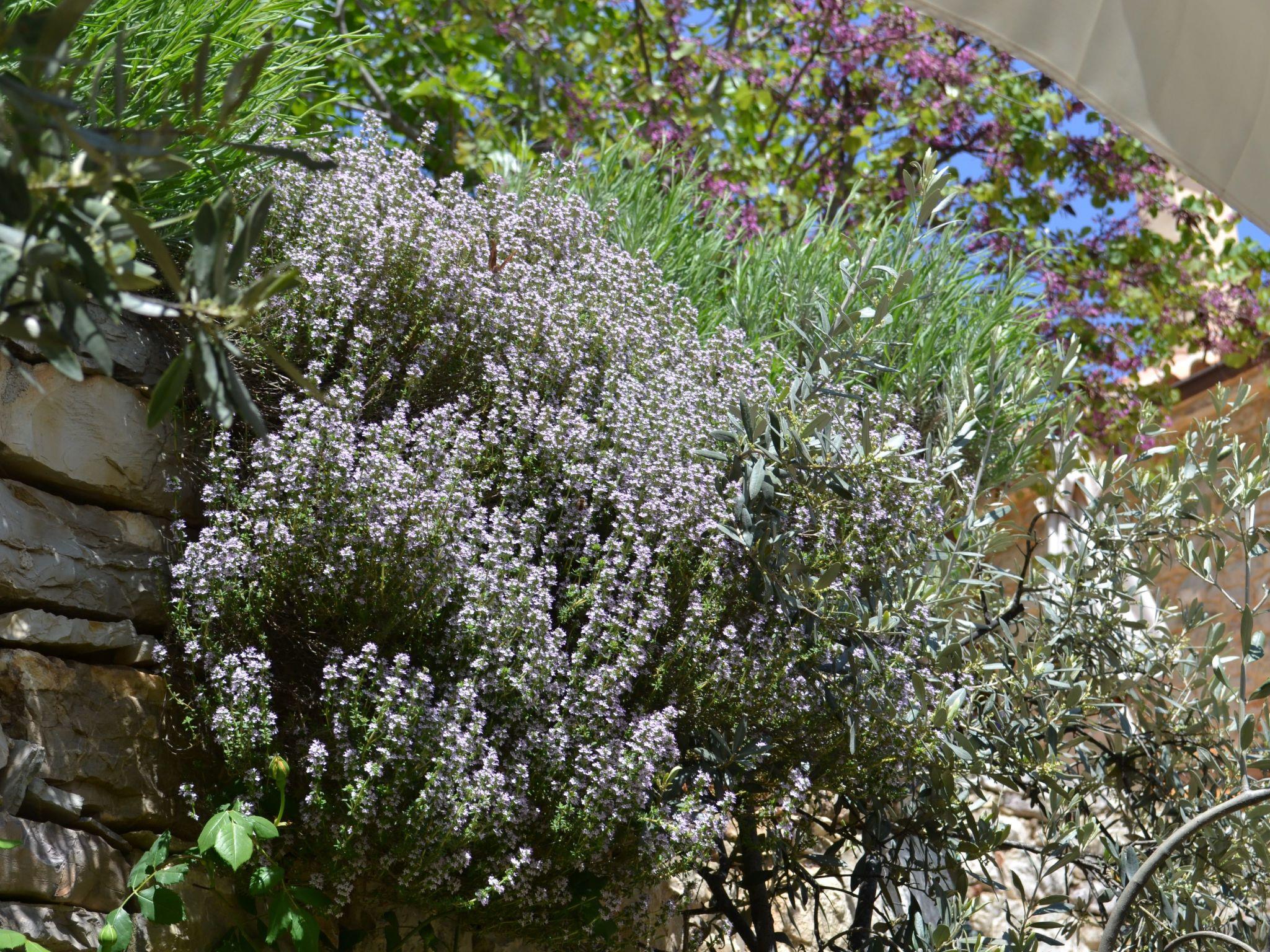 The stone-paved garden features Mediterranean plants, trees and herbs and offers unobstructed views of the valley and surrounding mountains. Choose the shady corner which suits you for reading or having a meal outdoors.