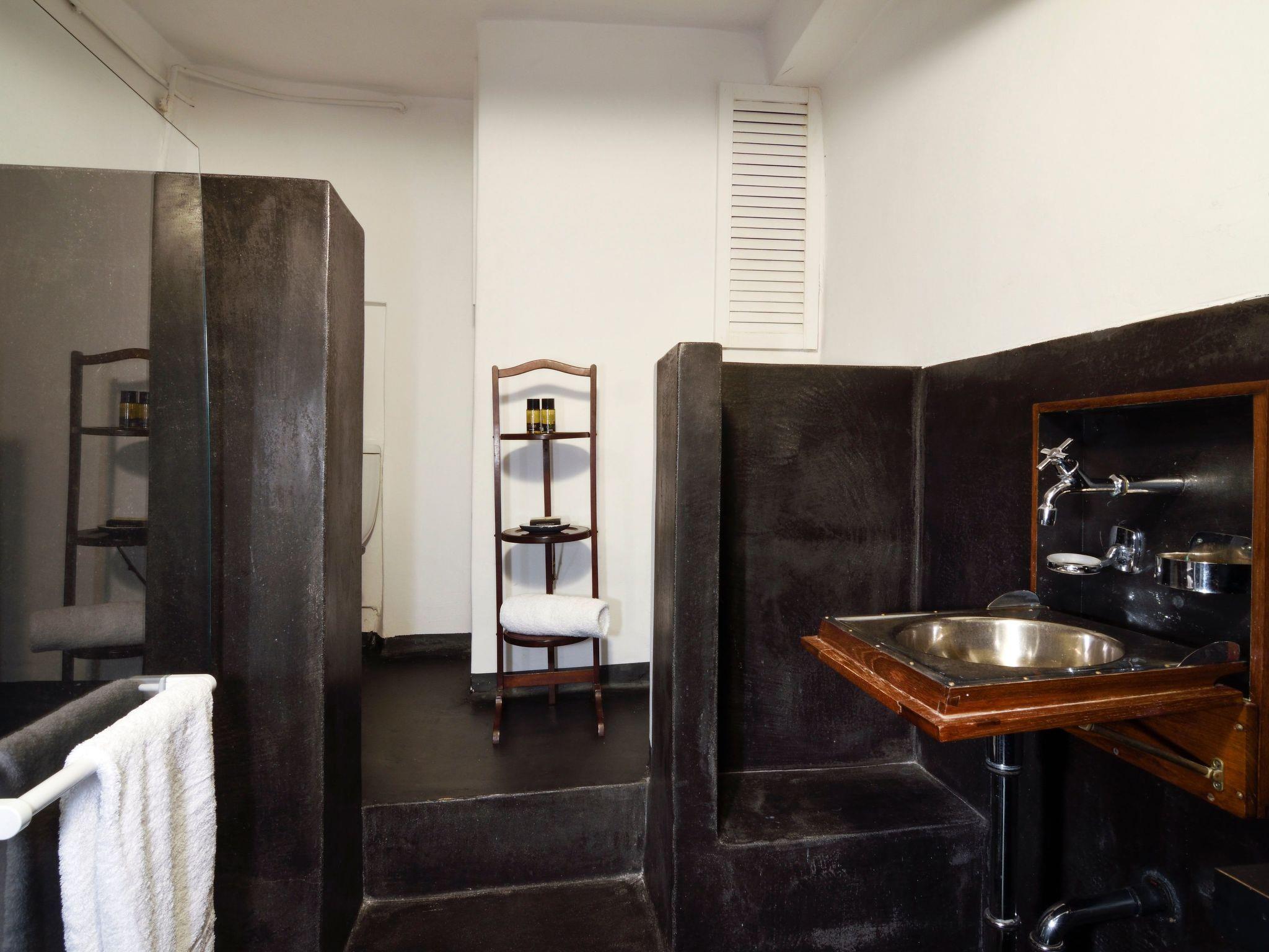 This studio has a double bed which can be converted to two single beds. Kitchen for cooking is the garden kitchen (few steps away) equipped with gas cooking and bbq.