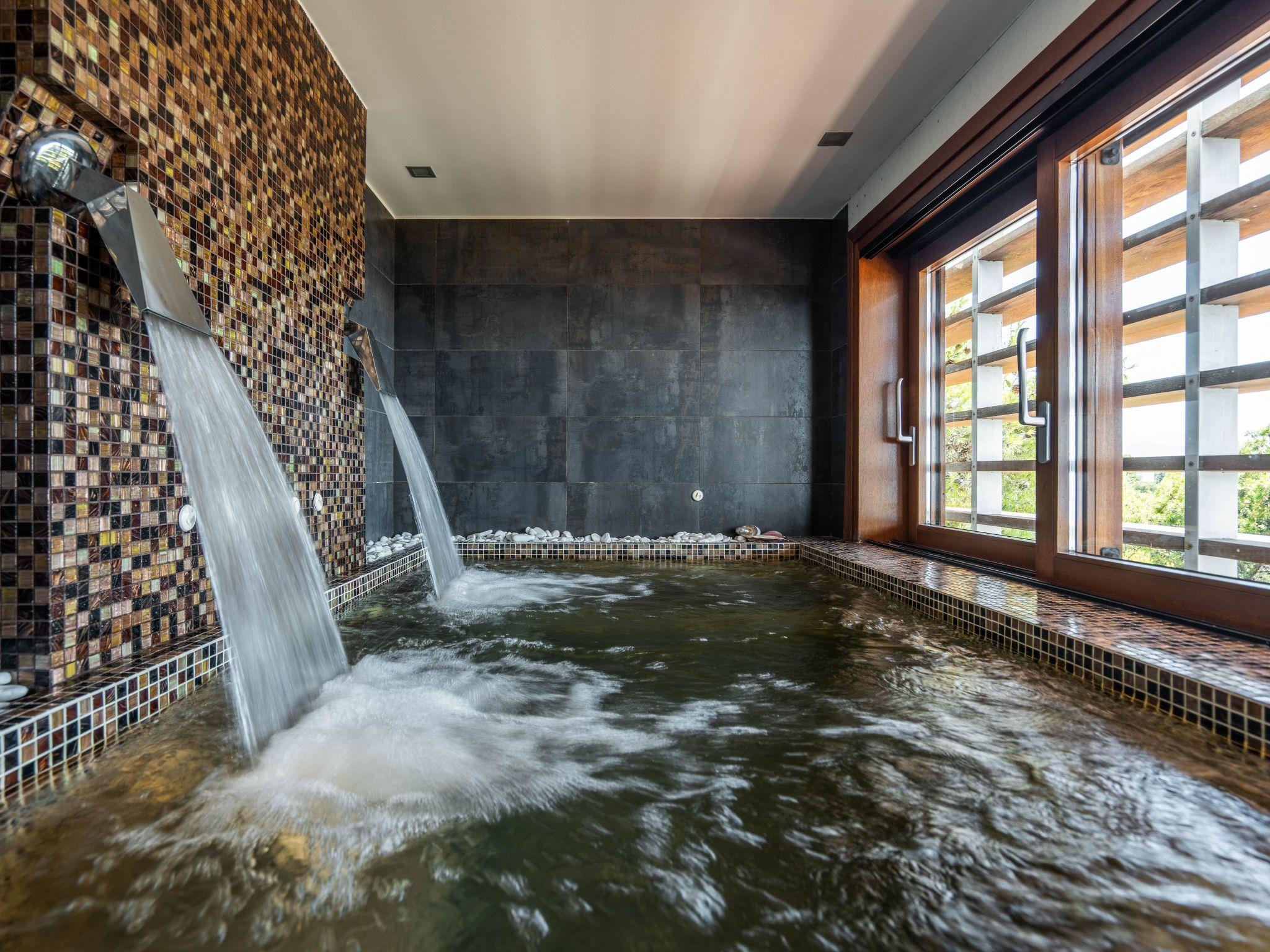 • Swimming pool: Infinity heated pool, ecologically purified, 11 X 7 m, depth 1.6 m across the board with hydro massage.