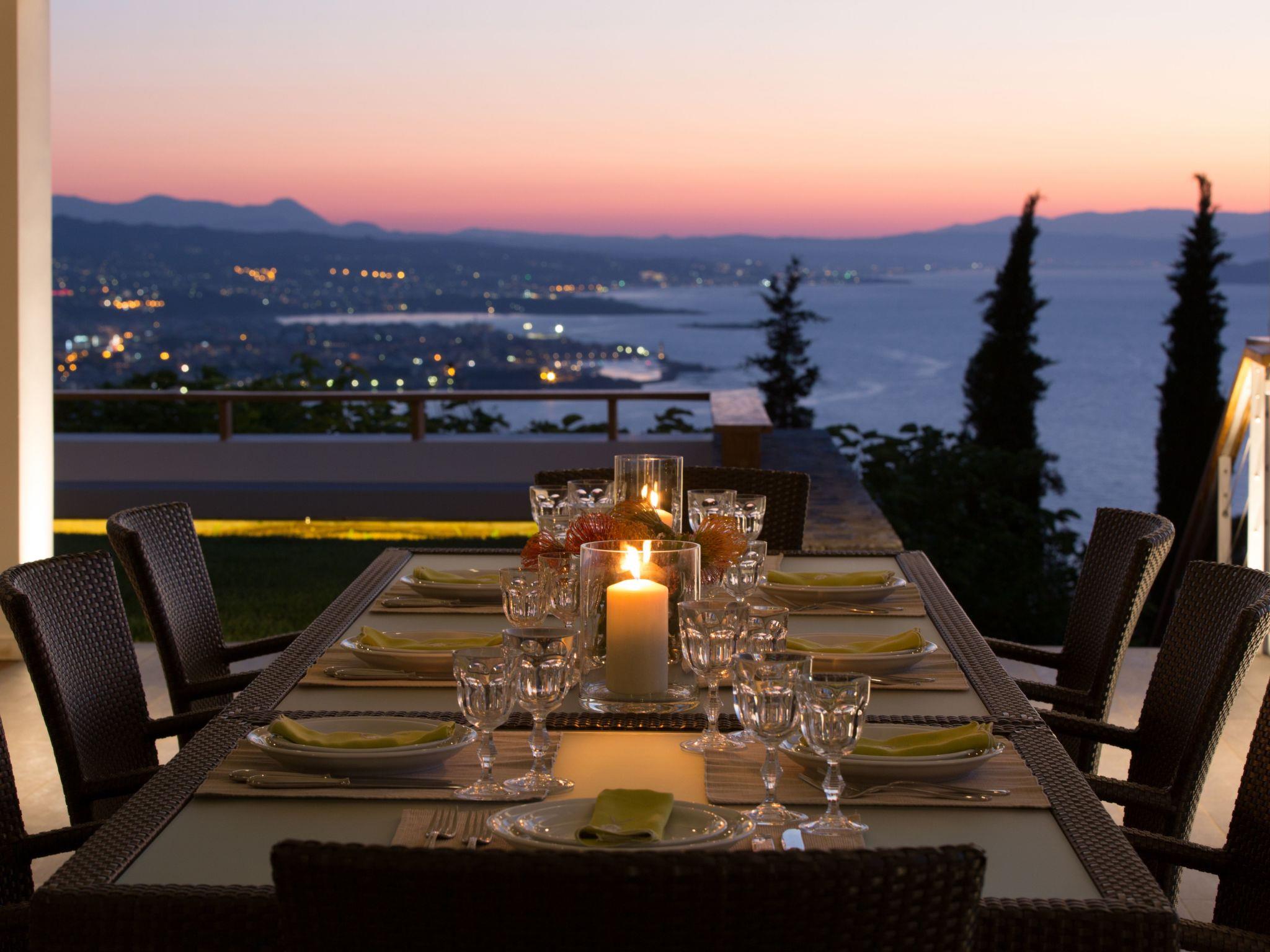 VILLA TERRA CRETA Luxury Retreat and Spa The villa is located in one of the most spectacular places of Greece and is endowed with a panoramic view primarily of the picturesque town of Chania and its landmark, the renovated lighthouse at the old Venetian harbor but also of both, the blue Aegean Sea and the famous White Mountains of Crete, usually covered with snow from November until late May. This makes Villa Terra Creta a wonderful safe haven to visit throughout the whole year. The house has a modern architectural design in perfect harmony with its mature garden and the surrounding landscape. Indoor and outdoor living transcend harmoniously, so it is equally suitable for all seasons throughout the year.