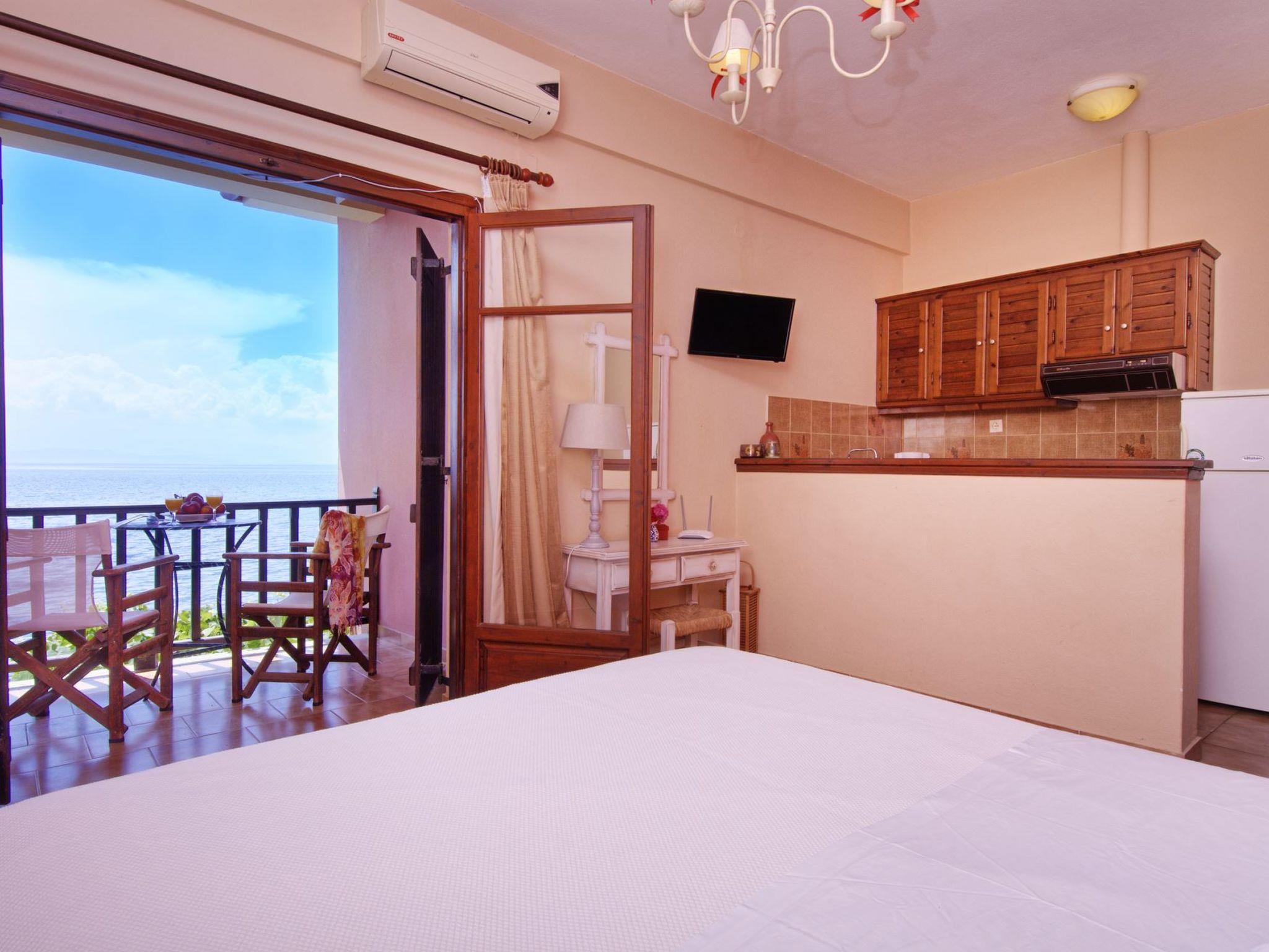 Each flat is tastefully and modernly furnished and has a bedroom with a double bed or two single beds and a bed-sitting room with two further beds and a kitchenette separated by a bar. The flats also have a shower/WC, air conditioning, flat-screen TV, WiFi internet and balcony with garden furniture and sea view.
