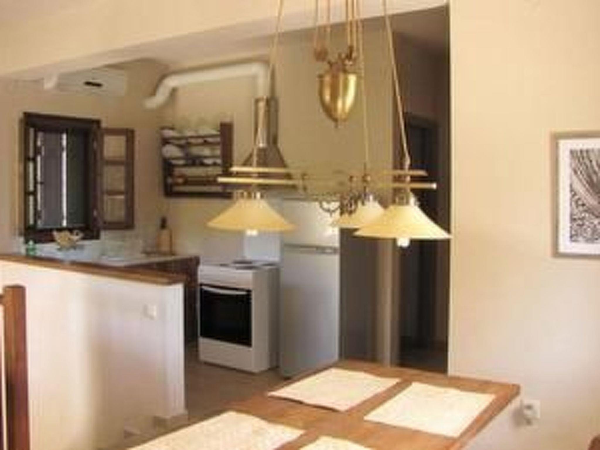 Eleni Villa I has 2 flats. One flat on the upper floor and one on the ground floor: Each flat is suitable for 4-5 people and has two bedrooms (one with a double bed and one with two single beds), a spacious living room with a seating area and sleeping facilities for a 5th person, a dining table and a well-equipped kitchen. The flat on the upper floor has a fireplace and a balcony with garden furniture and is 74 square metres in size (+ balcony).