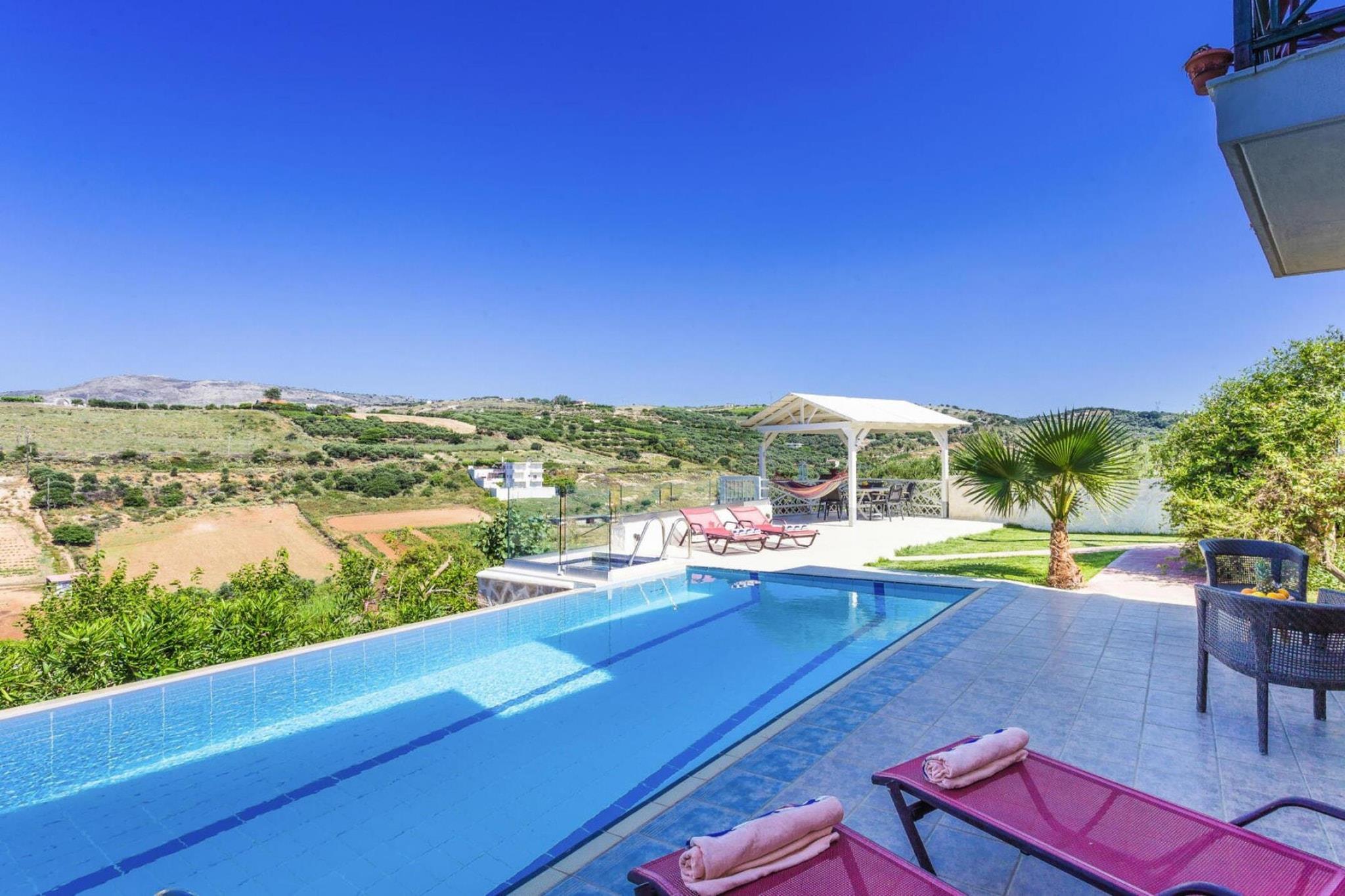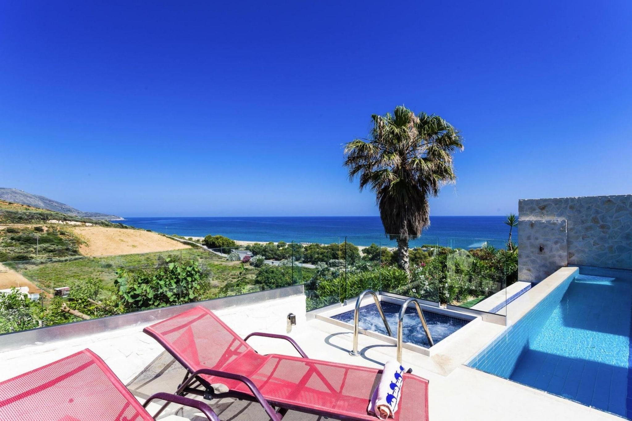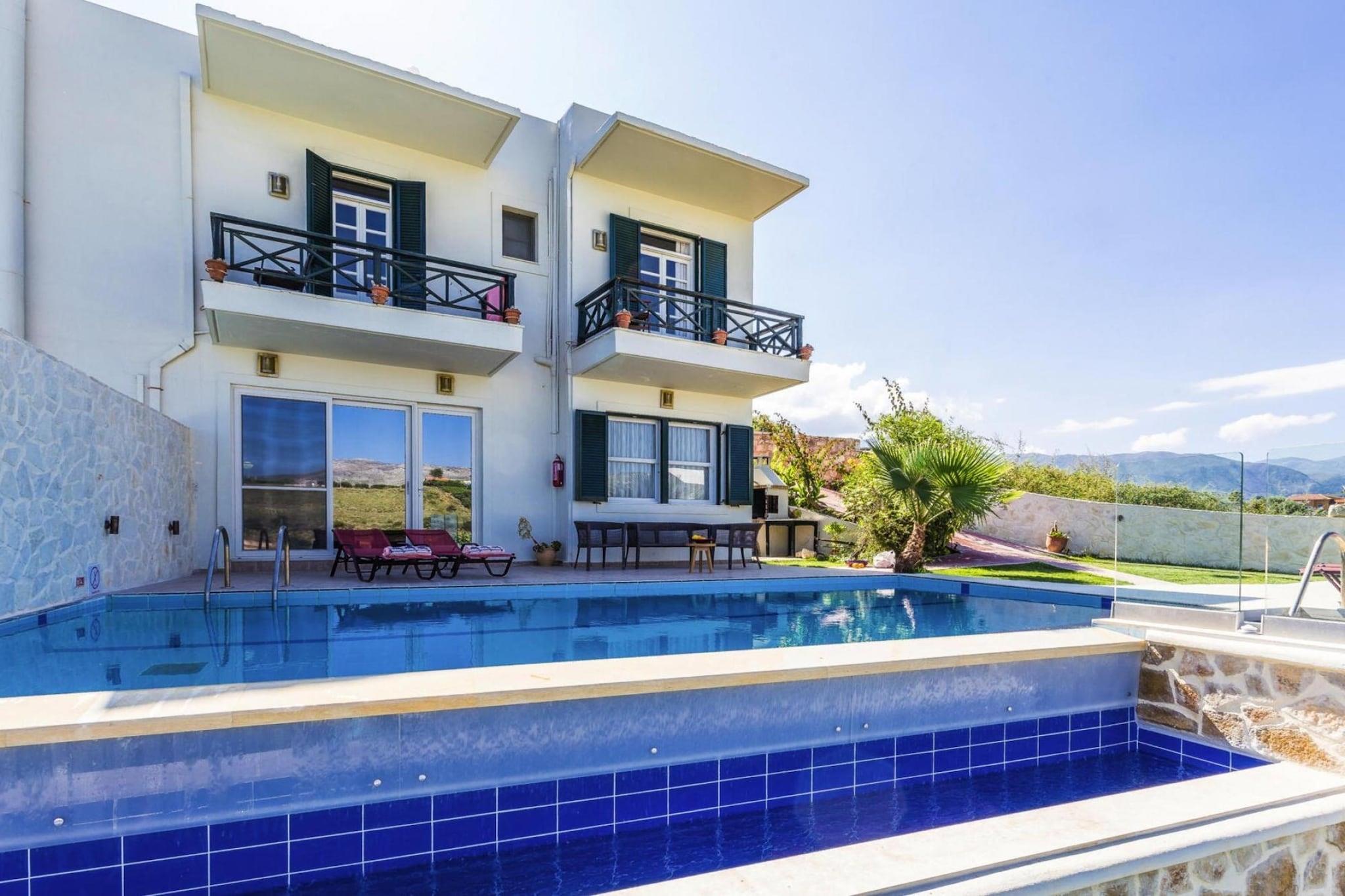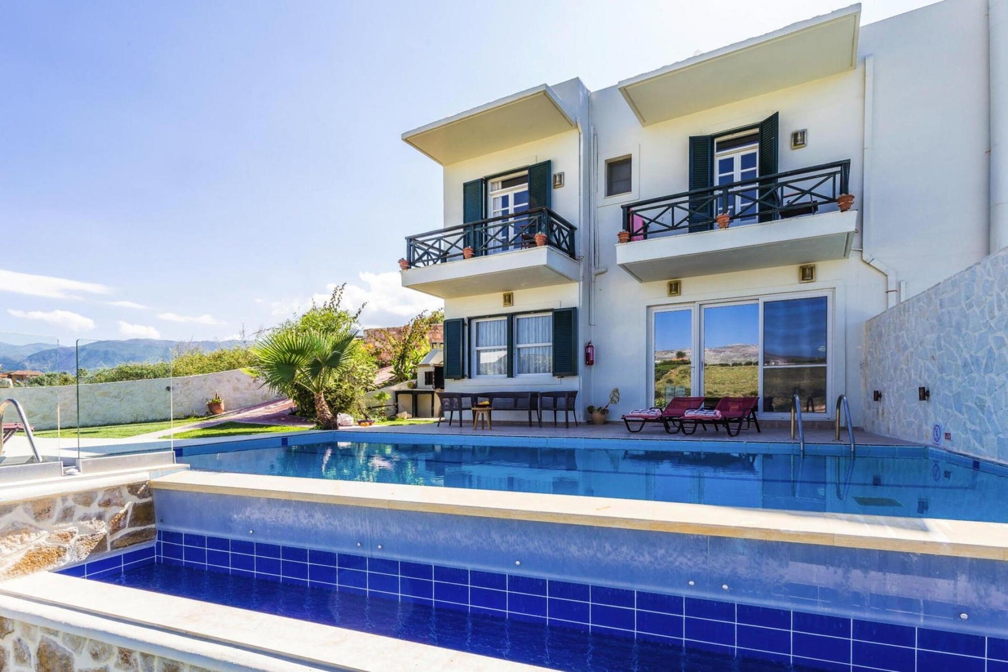 To komfortable rekkehus med ideell beliggenhet, kun 200 meter fra den lange sandstranden som strekker seg til Georgioupolis. Beliggenheten på en høyde lar deg nyte en vakker utsikt over Egeerhavet. Husene har hvert sitt svømmebasseng med solterrasse og grill. I sommermånedene er mange barer og tavernaer åpne langs stranden. Mange tradisjonelle landsbyer i området inviterer deg til å utforske. Detaljer: Forbruksbaserte energikostnader, sengetøy, håndklær, sluttrengjøring, WiFi-mobilitet: Ikke egnet for bevegelseshemmede