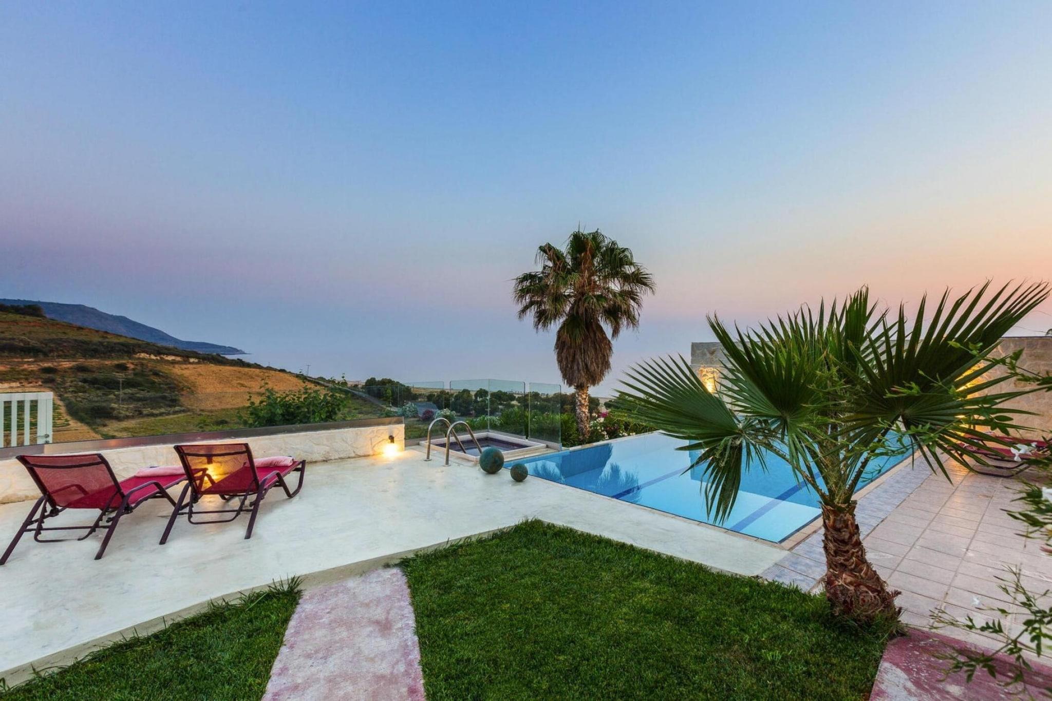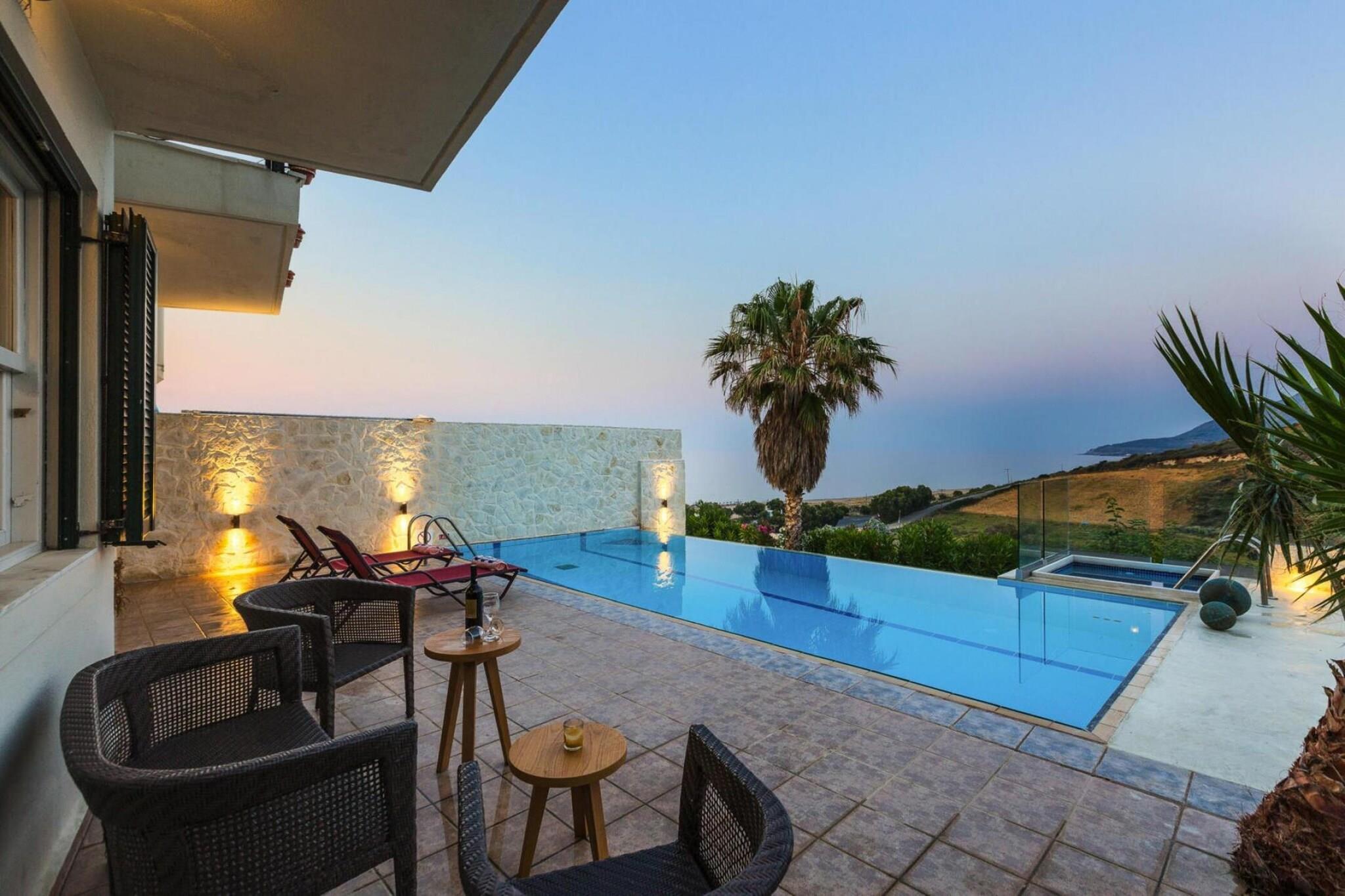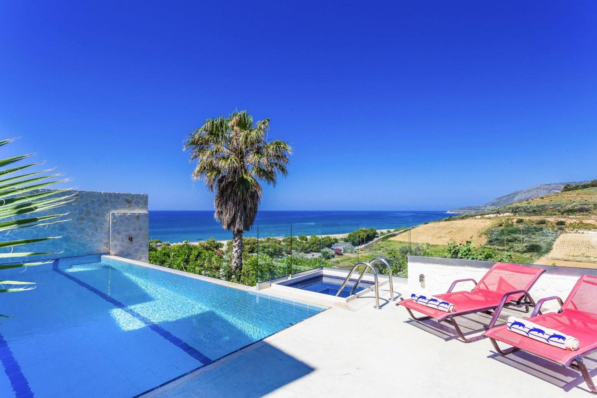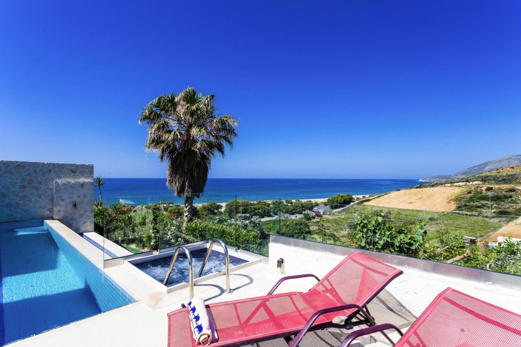 To komfortable rekkehus med ideell beliggenhet, kun 200 meter fra den lange sandstranden som strekker seg til Georgioupolis. Beliggenheten på en høyde lar deg nyte en vakker utsikt over Egeerhavet. Husene har hvert sitt svømmebasseng med solterrasse og grill. I sommermånedene er mange barer og tavernaer åpne langs stranden. Mange tradisjonelle landsbyer i området inviterer deg til å utforske. Detaljer: Forbruksbaserte energikostnader, sengetøy, håndklær, sluttrengjøring, WiFi-mobilitet: Ikke egnet for bevegelseshemmede