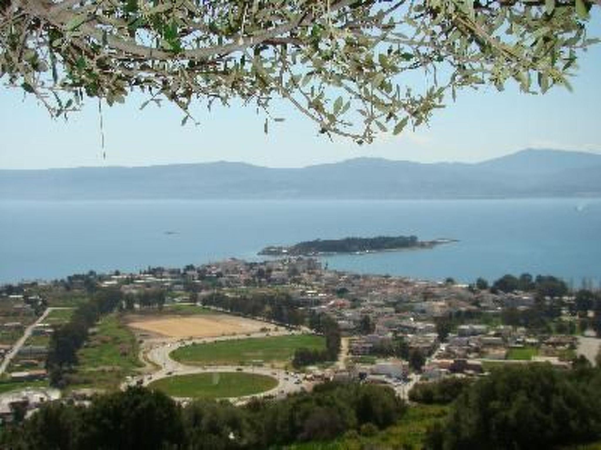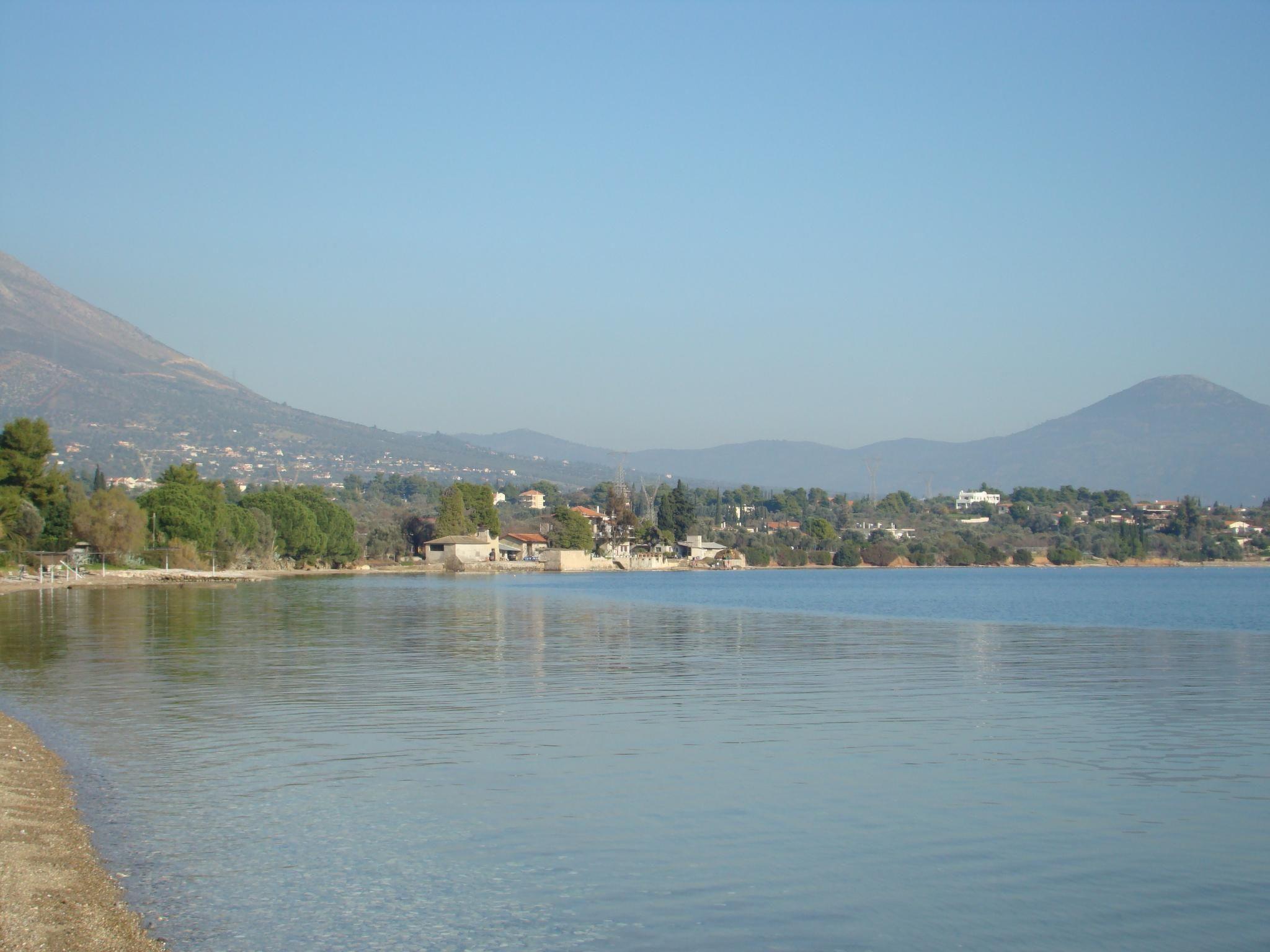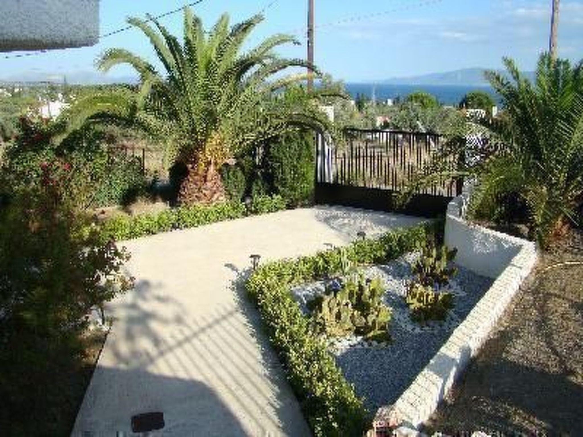 Dozens of olive trees and Mediterranean vegetation with clear views of the South Evian Gulf and the island of Evia and Attica.