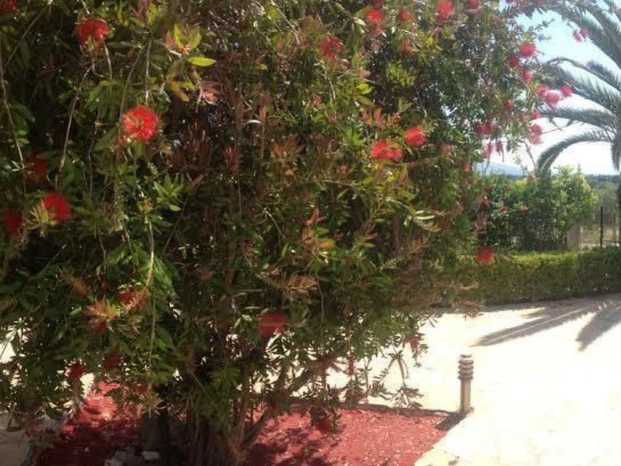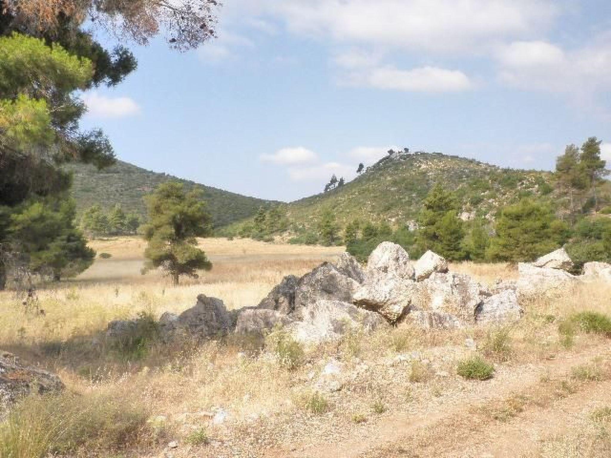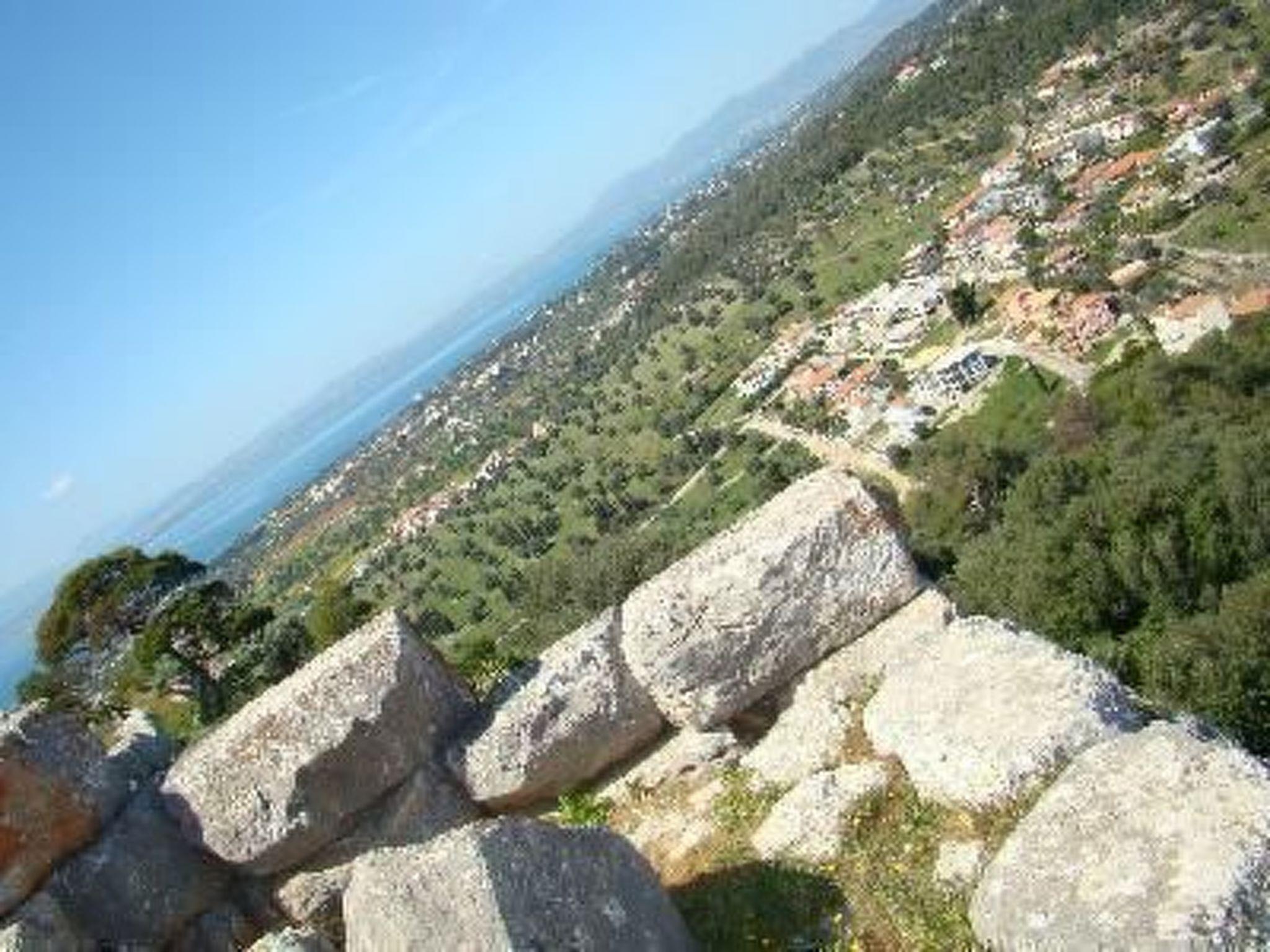 Dozens of olive trees and Mediterranean vegetation with clear views of the South Evian Gulf and the island of Evia and Attica.