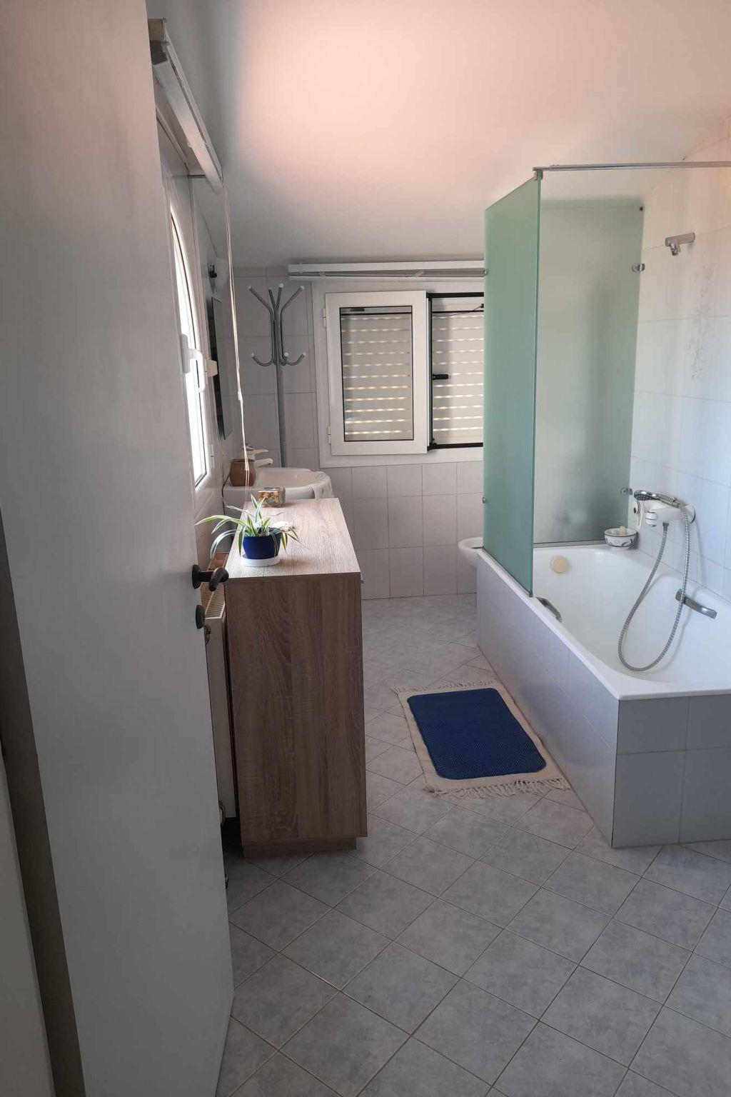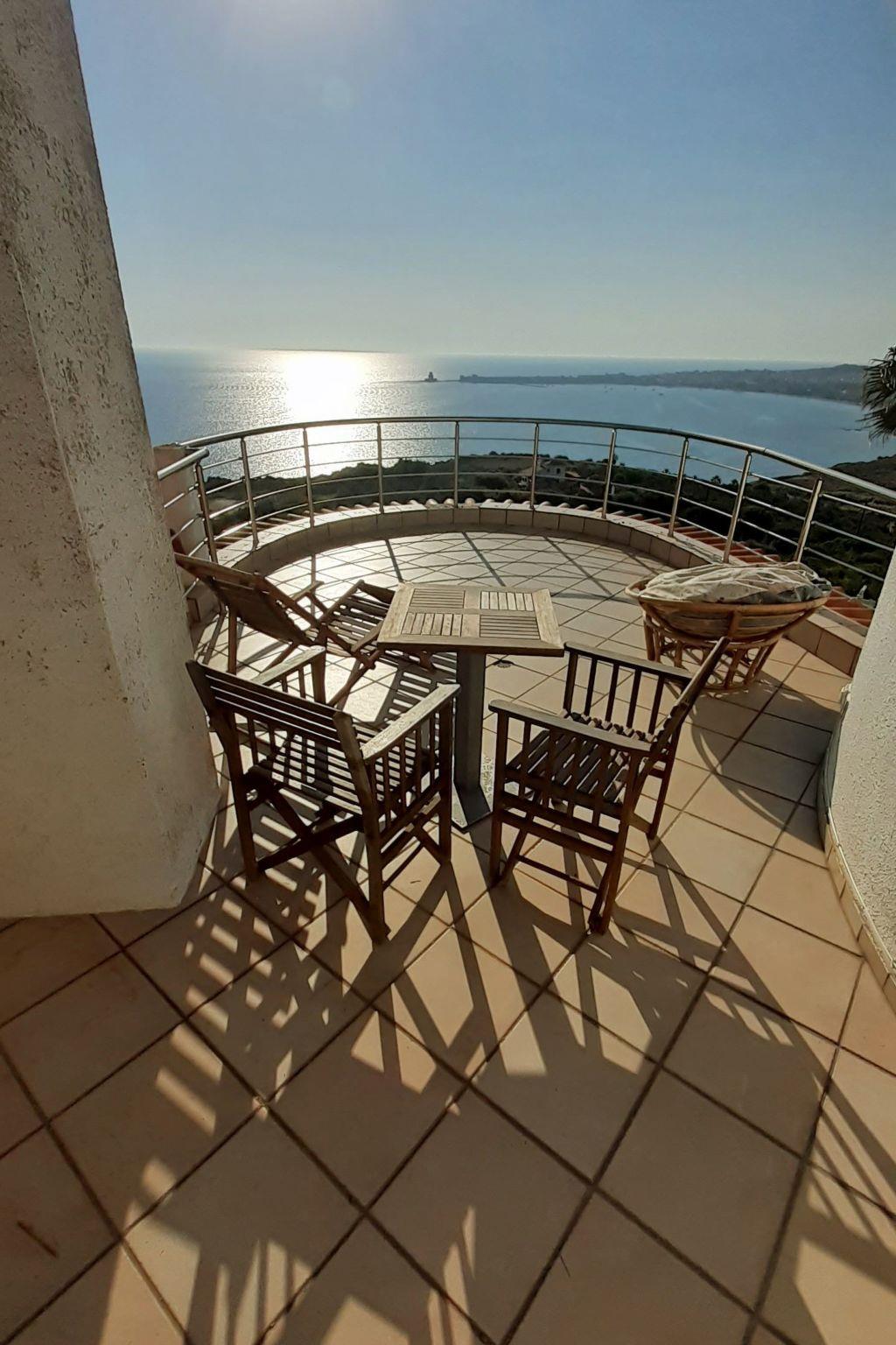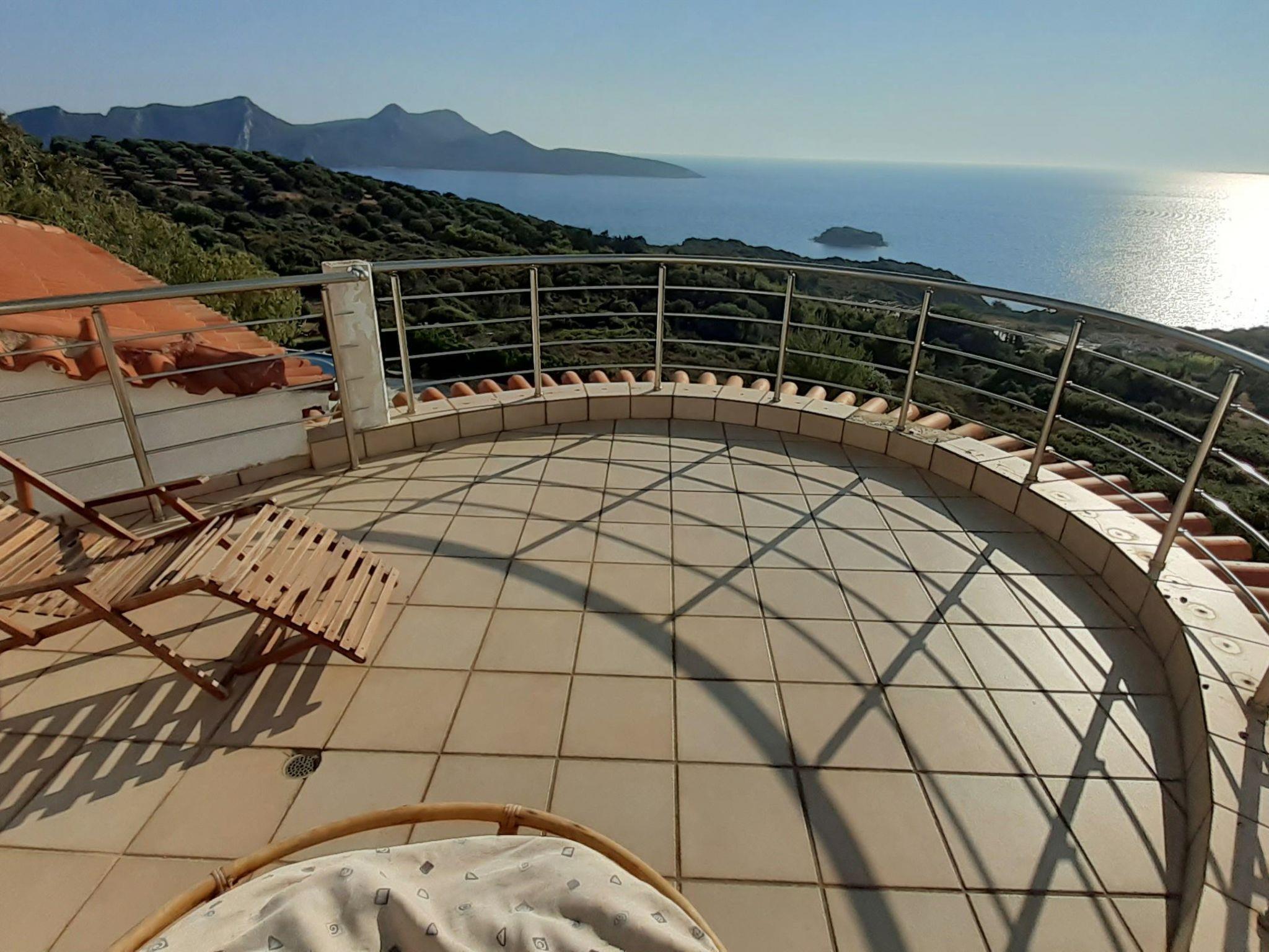 Upper ground floor-1st-2nd floor for 9 people, air-conditioned open space comprising living room with sea-view balcony, dining room, kitchen with sea-view balcony. Separate bathroom and air-conditioned double bedroom with garden view. Upper ground floor-1st + 4 stairs, 1 double bedroom with sea view balcony/bathroom-wc/air conditioning. 2nd 1 double bedroom with garden view/air conditioning/bathroom-wc and 1 round triple bedroom, WITHOUT BATHROOM-WC, sea and garden view/air conditioning.Panoramic terrace. Bed linen and towels changed once every 7 nights. If you wish to stay more often, it is possible to rent
