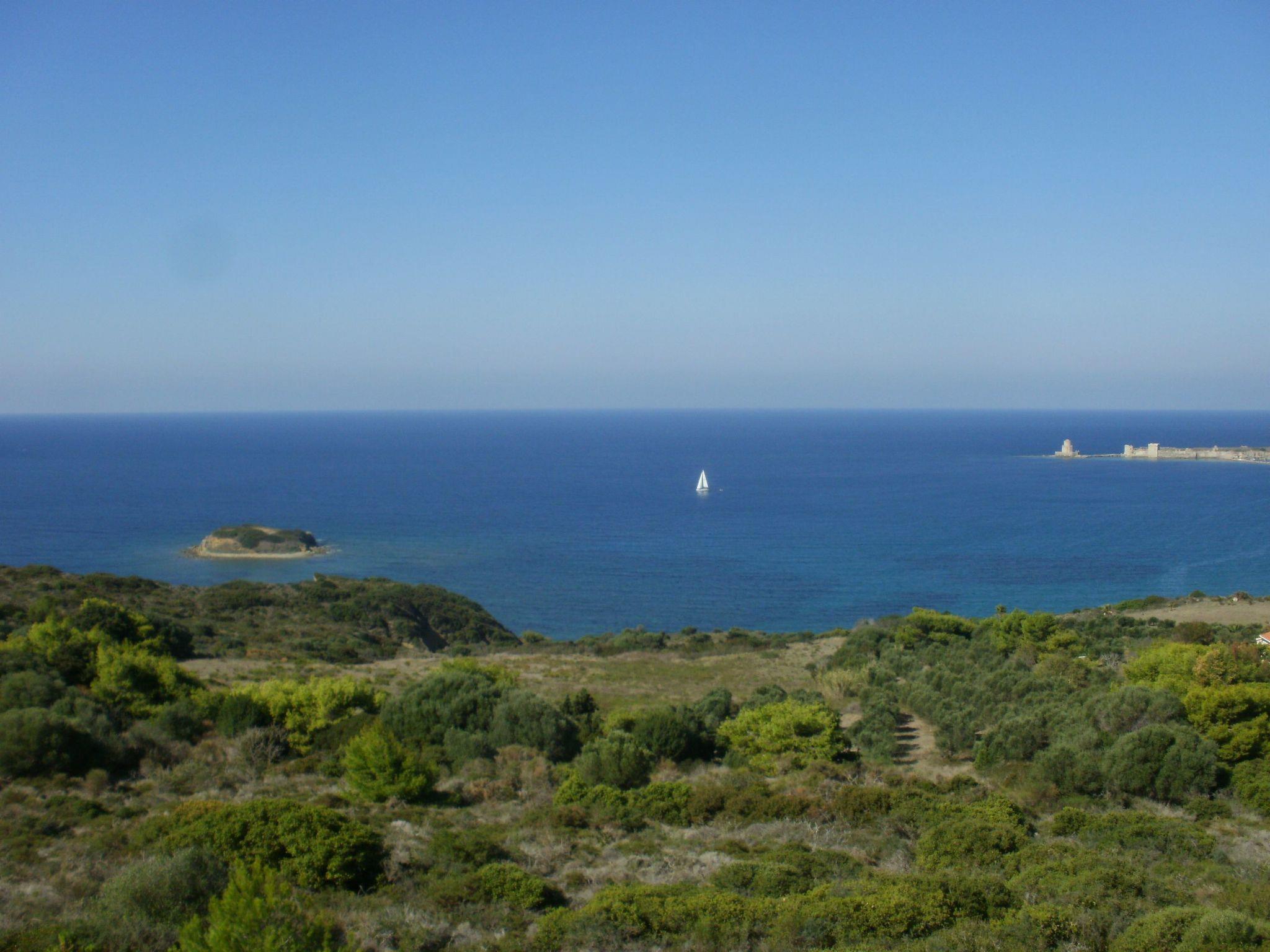 Charly Point villa flat with sea view and citadel, above-ground pool 4 minutes from the beaches and village Villa can be divided into 2 flats and 1 guest room. Can be rented in its entirety for up to 13 holidaymakers. Panoramic view of the sea and citadel. Park-like garden. Ideally located, quiet, above-ground swimming pool, private pool bar for holidaymakers only, sun loungers, parasol, hammock. Large shady park with relaxation areas for personal reverie. Rooms tastefully decorated in the colours of the surrounding countryside, with sandy, pebbled and rocky beaches nearby. 3 golf courses within 15 minutes' drive, with superb views over the Bay of Navarino.