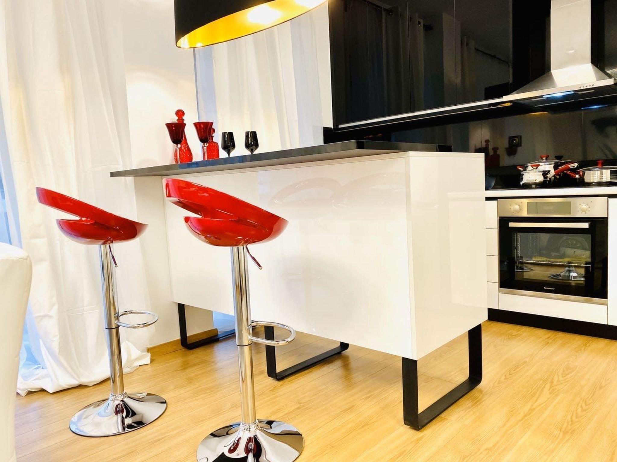 Inside, the apartment boasts a thoughtful layout designed to make your stay as comfortable as possible. The two bedrooms are furnished with cozy double beds, ensuring a good night's sleep after a day of exploration. The living area, spacious and inviting, comes equipped with a smart TV, offering endless entertainment options for guests of all ages. The inclusion of a fully equipped kitchen allows for seamless meal preparation, whether you're whipping up a quick breakfast or hosting a dinner.