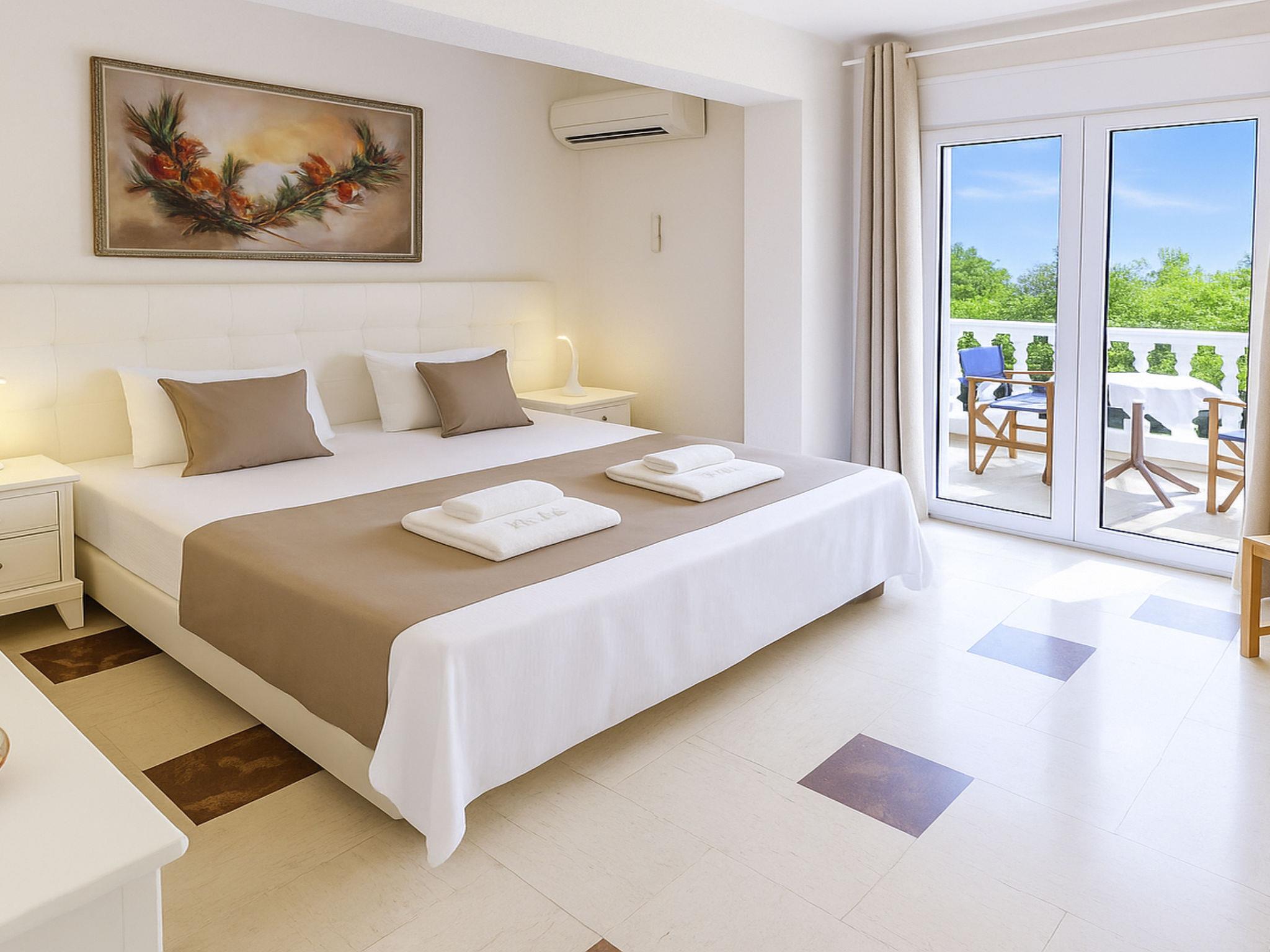 The villa features 3 recently renovated bedrooms accommodating up to 8 guests, 3 bathrooms, a spacious fully equipped kitchen, and a large living room with a dining area. Each bedroom has its own private balcony, and there is also a large veranda offering panoramic views of the lush garden and private pool.