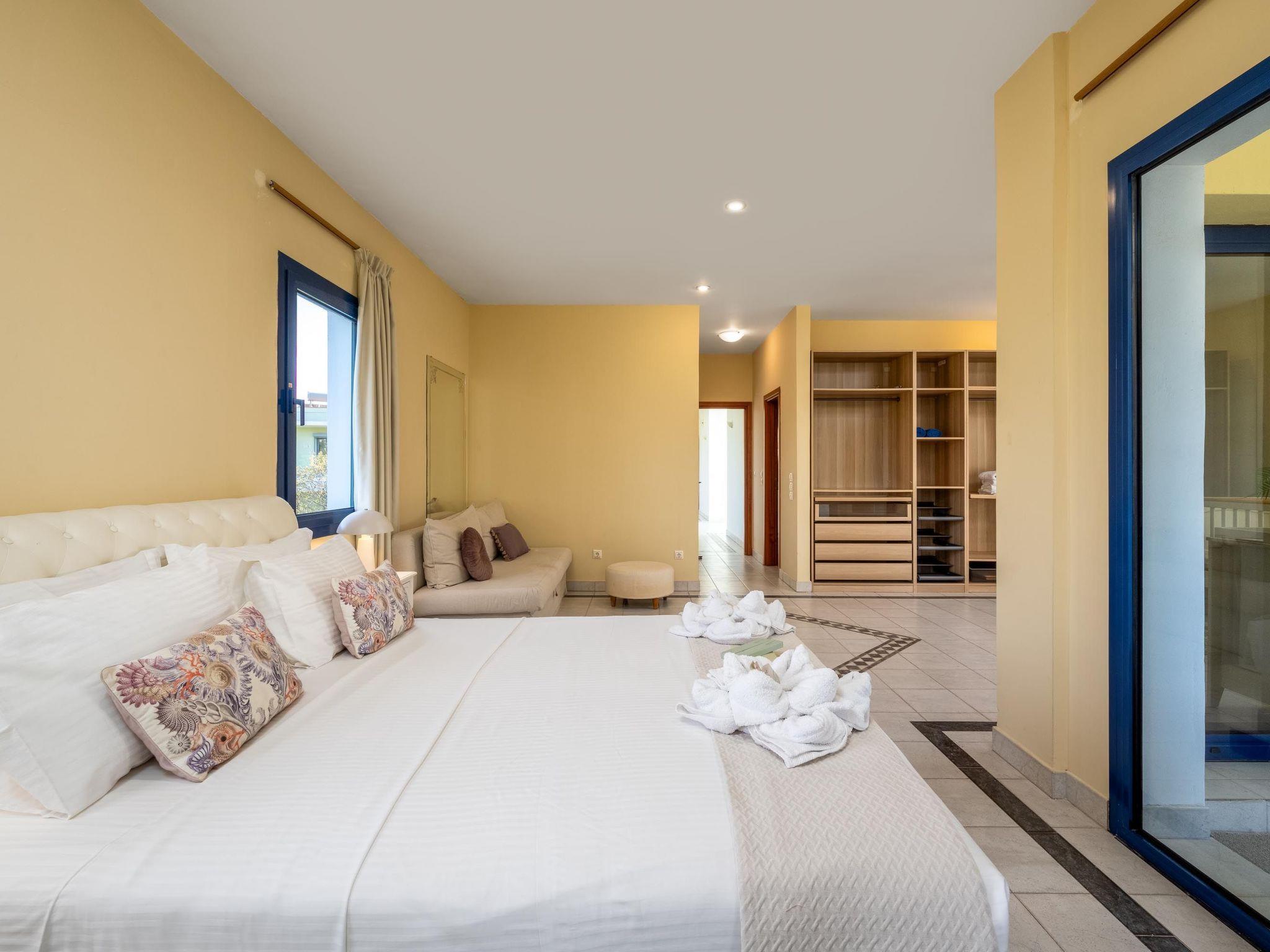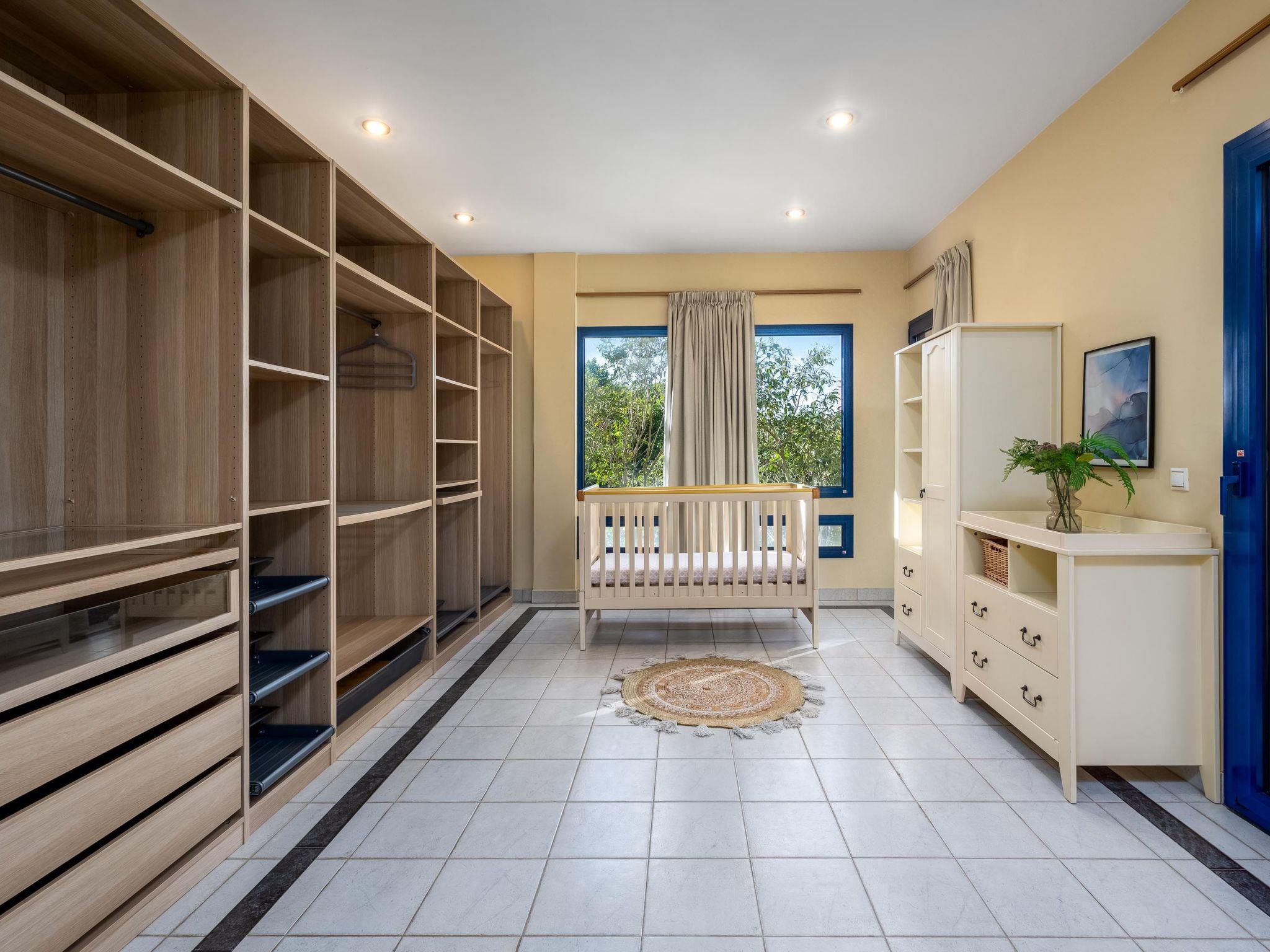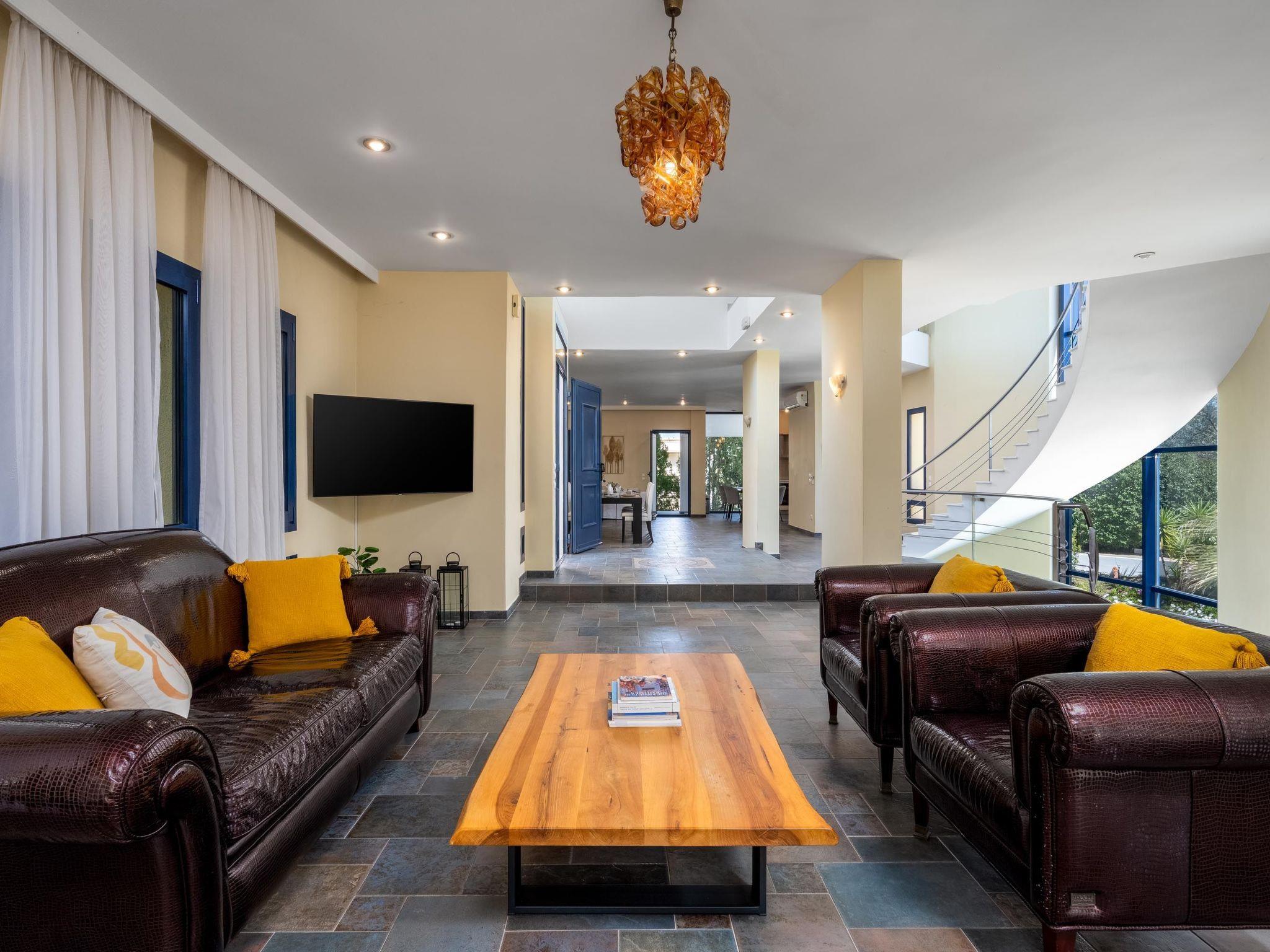 All rooms and interior spaces are commodious and sunny and are decorated in a modern style with warm hues and artful details. Themis Private Villa provides you with a peaceful and private accommodation, presenting you with five modern and cozy bedrooms. There are 2 bedroom with double beds and single sofa beds. Each of them offers an ensuite bathroom. One of the bathrooms offers a relaxing bathtub with jacuzzi features as well as a shower. The other ensuite bathroom offers a shower. Also, there are 2 bedrooms with double beds. Lastly, there’s a bedroom with 3 double bedsand an ensuite bathroom with a shower. Apart from the ensuite bathrooms, there’s also a bathroom with a shower and a wc. All bedrooms are fully airconditioned. There is a kitchen fully equipped for any meal preparation accompanied from the seating area. Also, there is a comfy large living room. There’s free wifi access throughout the property. The whole atmosphere of the villa radiates serenity and comfort, bathed in abundant sunlight, decorated with beautiful flowers and Greek statues, one of them, a miniature replica of the exceptional Nike of Samothrace. Outdoors, villa offers a private swimming pool with its sunbeds to relax in the hot summer days while working on your tan. There are also BBQ facilities where you can prepare a great meal for an evening gathering with family and friends. Also, there’s a table tennis as well as treadmill to keep in shape throughout your holidays!