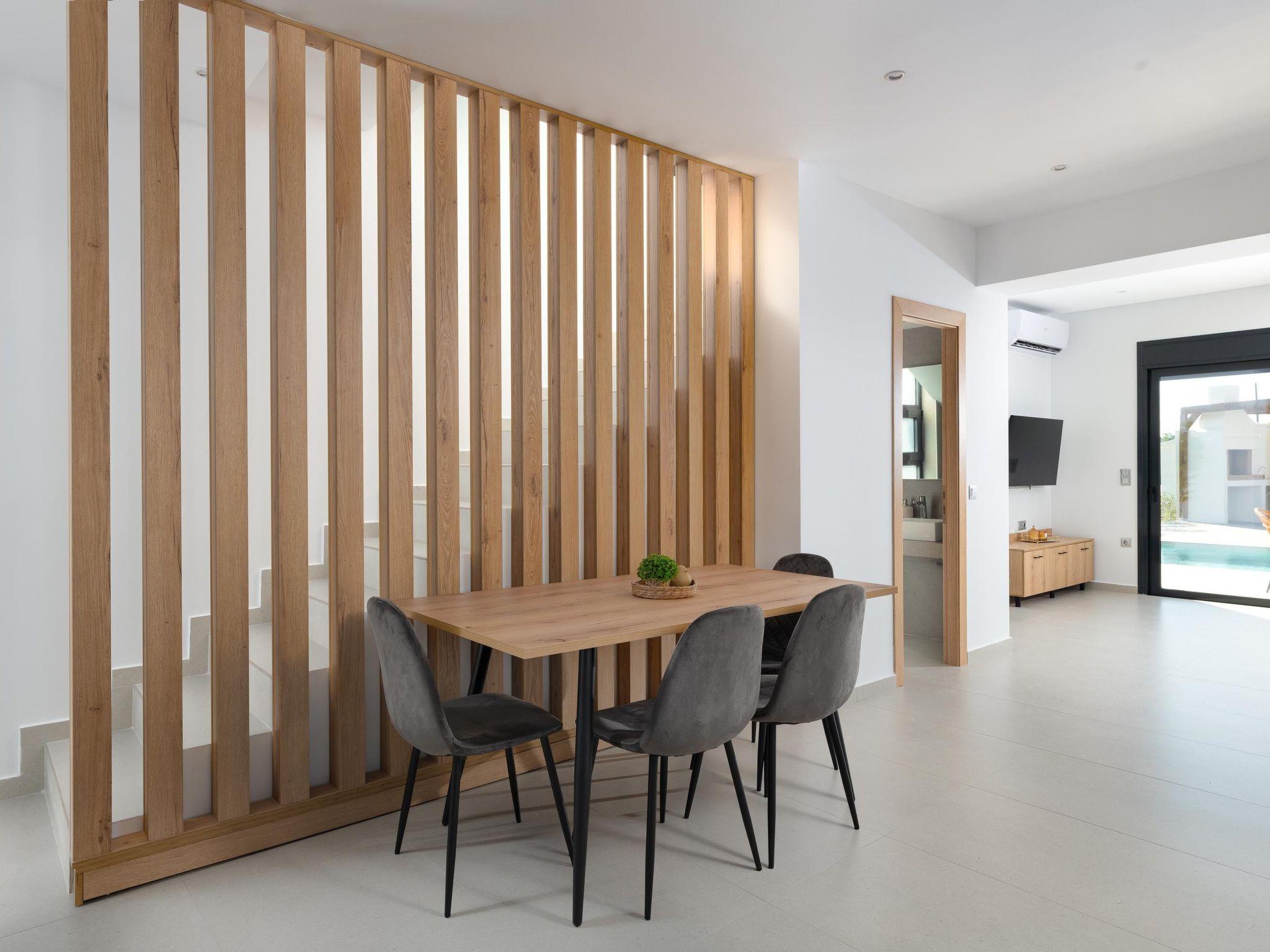 Davlakos Villa Eve in Kremasti is a perfect getaway with a private pool. It features three comfortable double bedrooms and a double sofa bed in the living room, accommodating up to 8 guests. The villa has three bathrooms ,one WC and two showers, with one ensuite in a bedroom. The spacious living area includes a TV for your entertainment and a fully equipped kitchen, making it easy to prepare meals during your stay. The private garden is a peaceful space with outdoor furniture, a dining table, sunbeds, and a BBQ for enjoying meals al fresco. With a dedicated private parking space, Davlakos Villa Eve offers convenience and comfort for a relaxing vacation. Ideal for families or groups, this villa provides a peaceful retreat with modern amenities, ensuring a memorable stay in the beautiful Kremasti area of Rhodes.