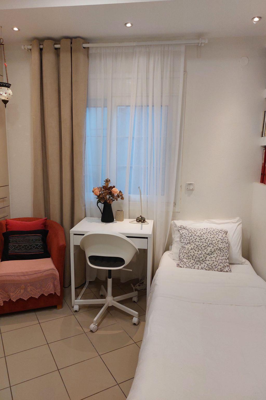 It has a fully equipped kitchen (oven, fridge, hob), bathroom with washing machine and shower, AC. a relaxing bedroom with a double bed and TV and a bedroom with a single bed with a desk, a comfortable living room equipped with a TV and Internet access. And a small balcony.