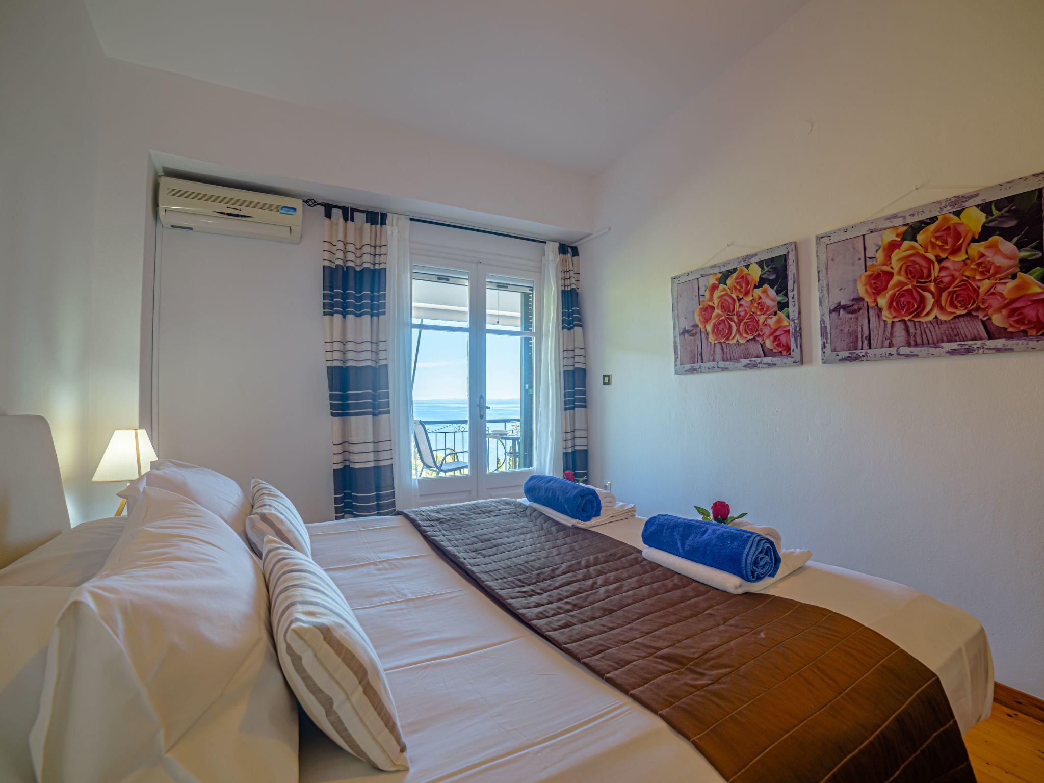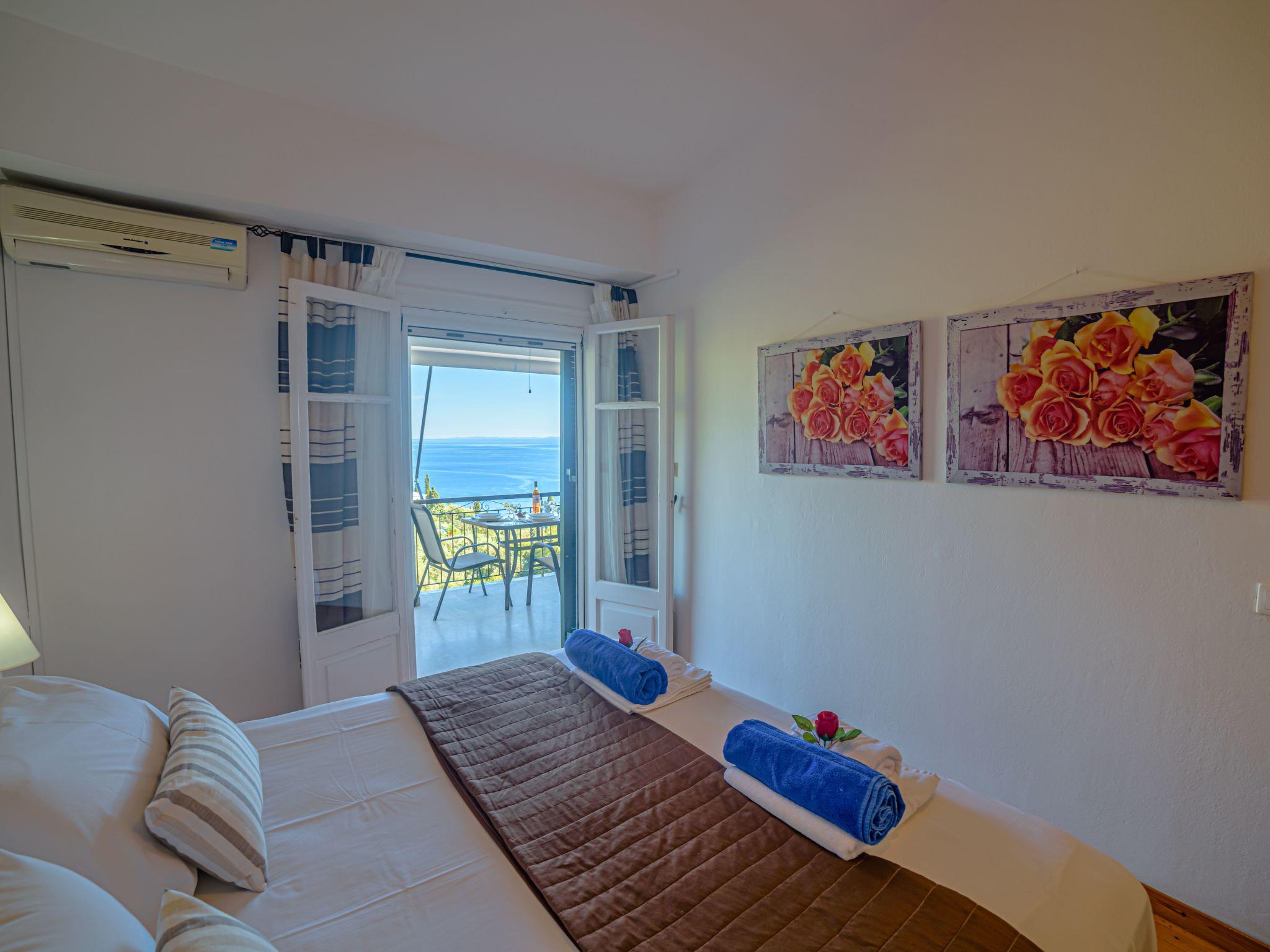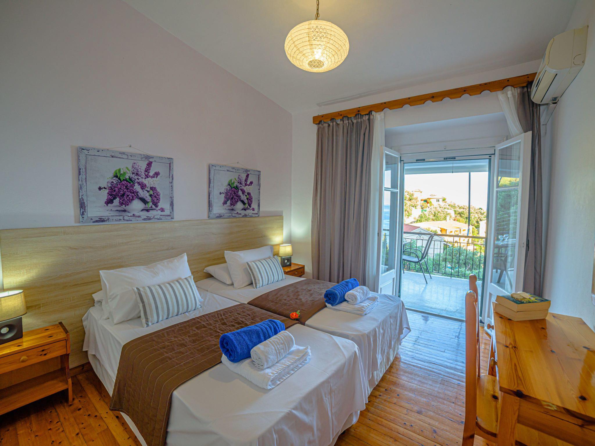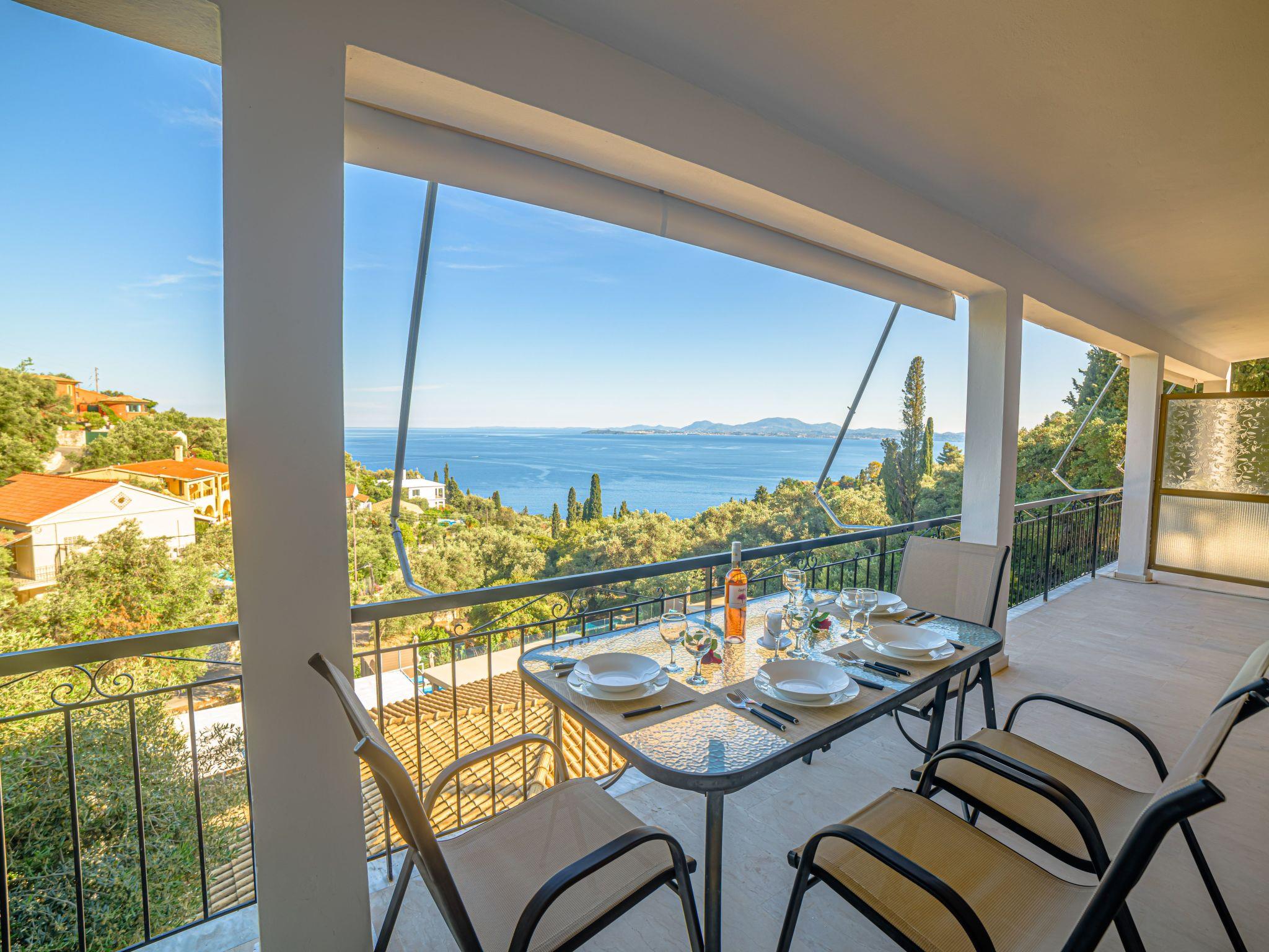 Combining a stunning wide view of the coastiline of Corfu Zeus 1 PRIVATE pool apartment (use only for one apartment) has 2 bedrooms, have been lovingly decorated - the master bedroom comes complete with double bed and en suite bathroom, whilst the remaining twin bedroom have use of its own bathroom with. Both bathrooms offer a hairdryer. Fully equiped kitchen,living room,2 bathrooms in perfect spot just 800 meters above Skinos Beach of Nissaki.