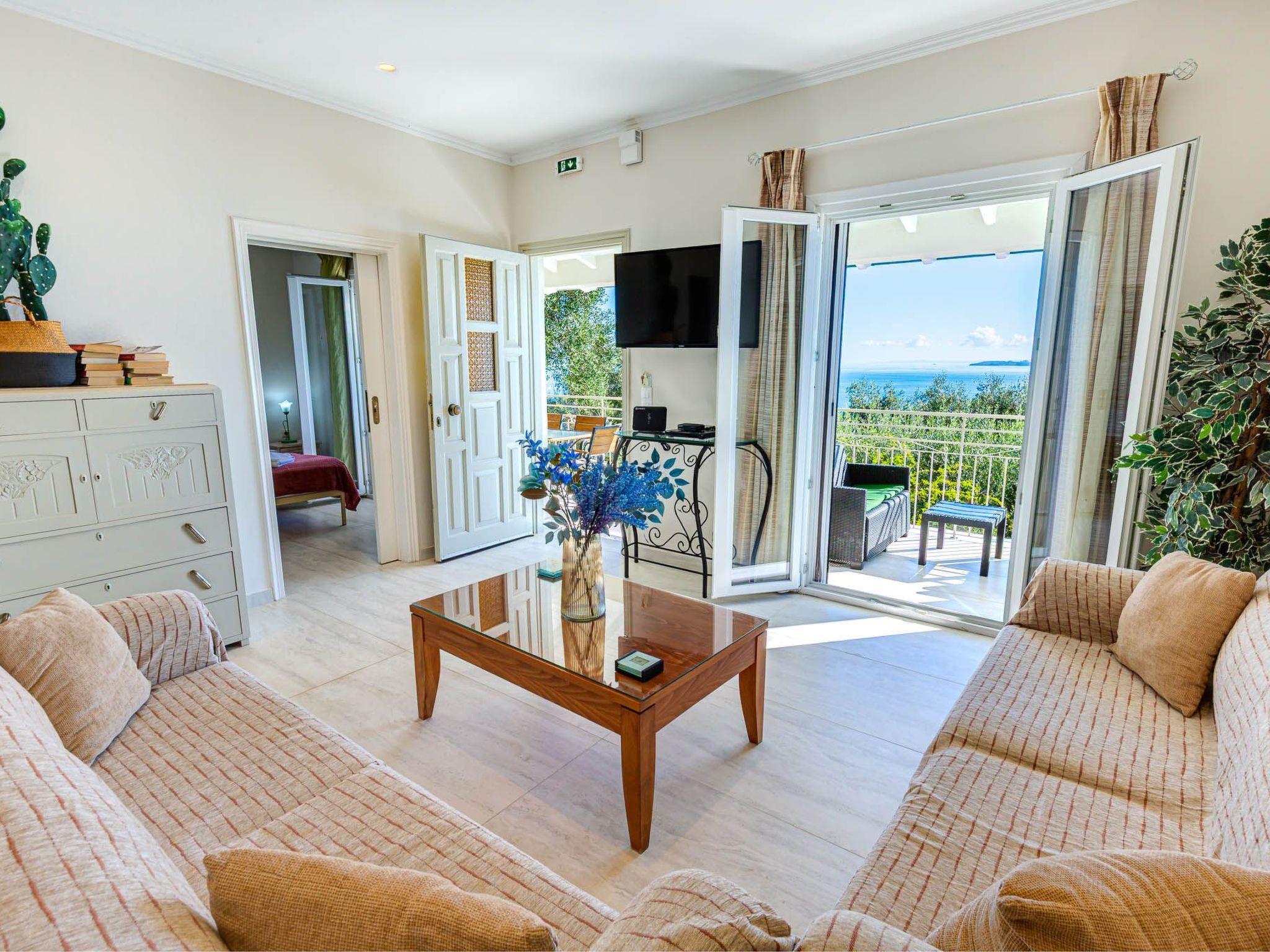 Inside, the villa is bright and welcoming, with contemporary furnishings and subtle touches that create a homely atmosphere. Large windows and doors connect the interiors to the outdoors, ensuring that the stunning sea views are part of every moment.