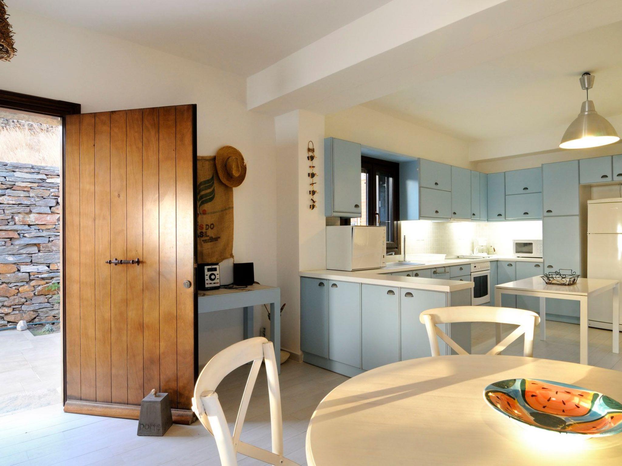 1 km for tavernas and shopping and organized beach, 3 km to water sports beach. In Kastellakia Bay on Kea island in the Cyclades, this holiday villa has access to the Kastellakia Beach and amazing sunset views 100 meters from the house. Access to Kea from Athens and its airport is easy, swift (door to door in 2 hours).