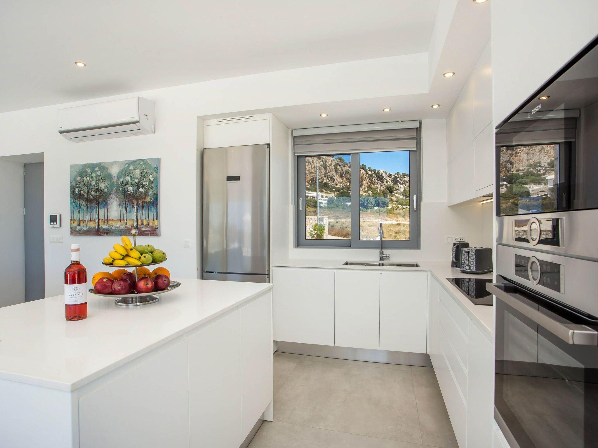 Your house in Rhodes combines comfort, relaxation, and luxury in a great location of Psalidi near all kinds of conveniences and places of interest. It offers a stunning private swimming pool and a contemporary design that will steal your heart. Also, the villa has an amazing view of the sea and is quite close to the cleanest beach of the island, Traganou beach, in only a 10-minute drive. Ideal for families and groups of friends, it accommodates up to 6 people.This stunning villa has 3 fully airconditioned bedrooms, one with a king-sized bed and 2 with double beds. Two of the bedrooms feature ensuite bathrooms with a shower. Also, there is a sharing bathroom with a shower as well. The decoration style in warm colors will make you relax and enjoy your holidays to the fullest. Guests will find a fully equipped kitchen suitable for any meal preparation as well as a seating area. Also, there is a living room with a smart Tv with cable channels and Netflix where you can relax and enjoy your company while arranging your next outdoor activity! All areas are fully air conditioned and there is free WIFI access throughout the property. Outdoors, there is a marvelous private swimming pool surrounded by its sunbeds and the breathtaking sea view. You can also find BBq facilities where you can prepare a delicious meal and have a gathering with your loved ones. Also, there’s an outdoor giant chess game for fun moments by the pool. And for those who don’t miss their workout even on vacation the villa provides you with outdoor gym equipment! This villa has everything you might need to feel comfortable and at home.