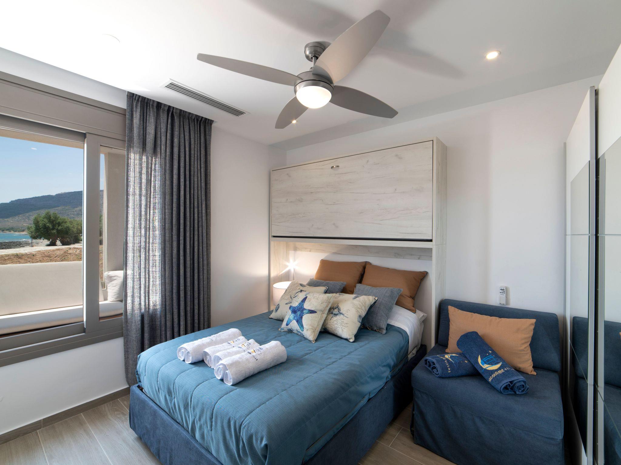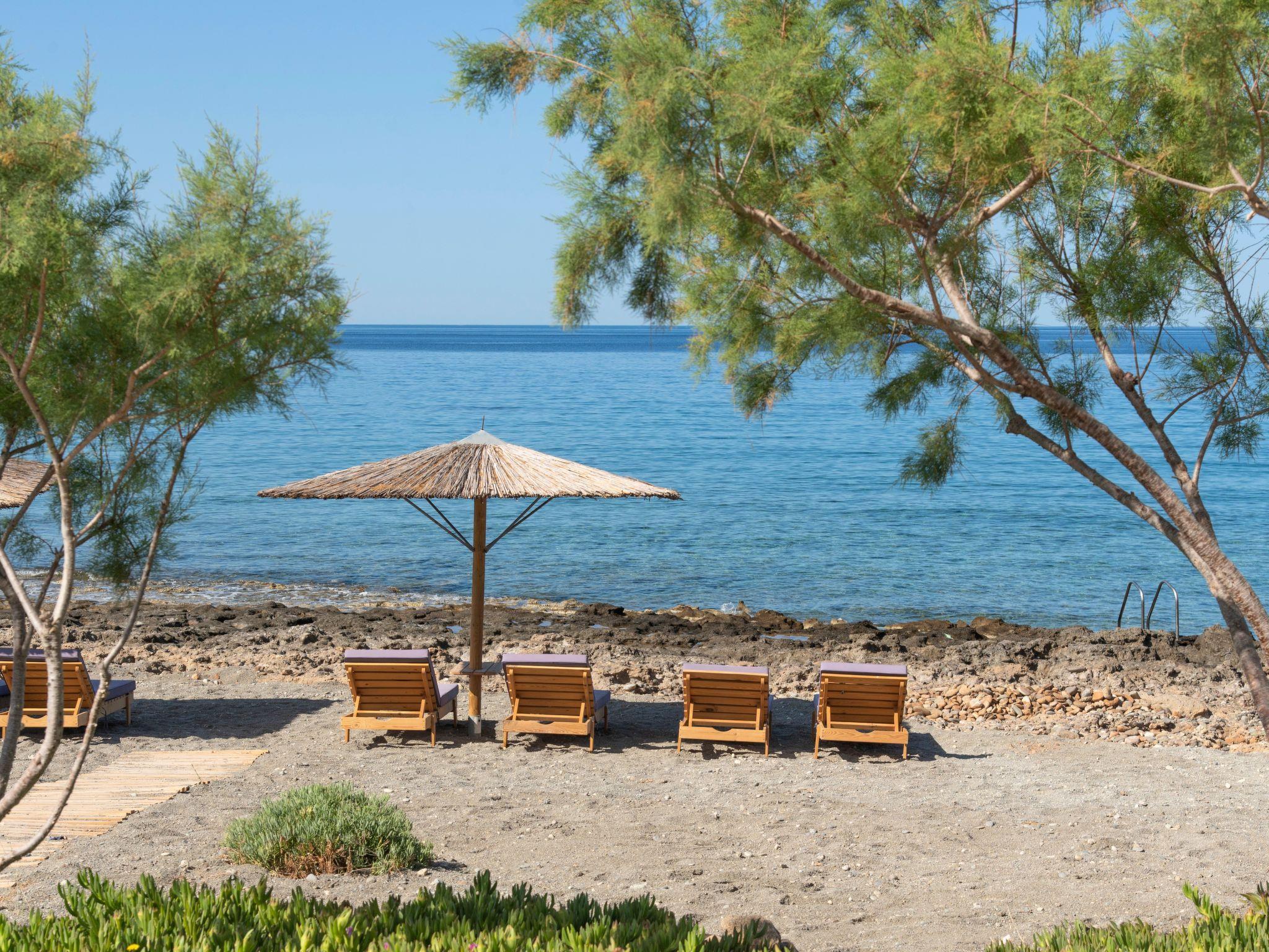 In a tranquil agricultural southeast Crete village, this secluded 5-bedroom, 4 bathroom offers luxury living in front of the pool with beautiful views of sea, moon on water & sunset. Enjoy the private infinity pool & adjoining spa, BBQ, games, bicycles. Less than 4 min walk to modern comforts & beach. The outdoor area boasts panoramic sea views that blend into the local landscape and many unique architectural and environmentally friendly features throughout. This luxury 5-bedroom, 4-bathroom rental is the entire ground floor, split into a 4 bedroom sea-front condo and a garden studio with its own living room and patio. Complete privacy, no shared areas.