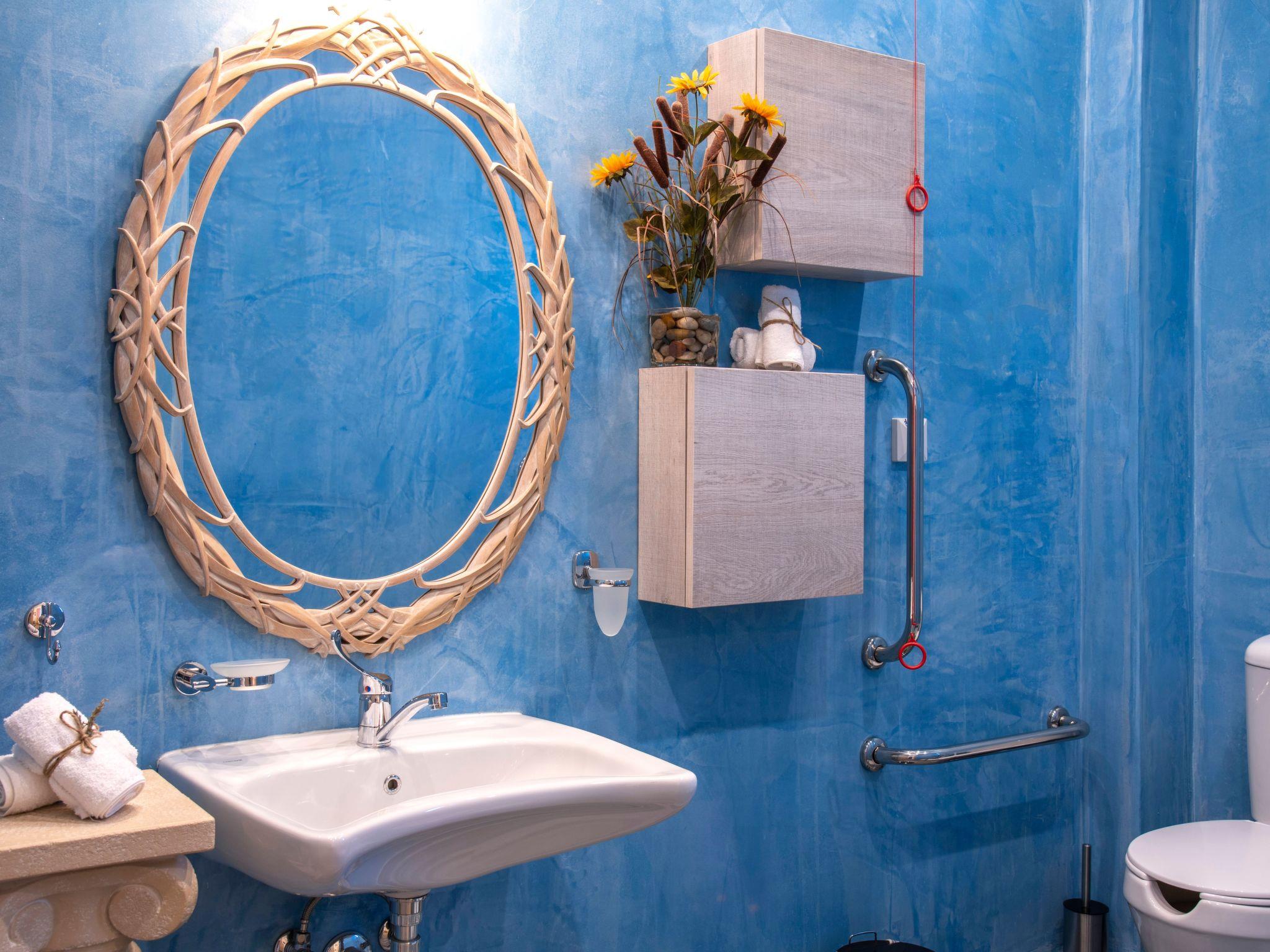 Lemonia (Lemon tree) is a traditional Kretan house with thick stone walls, two outdoor patios (one shaded with a large lemon tree, the other sunny), a happy long history, and authentic, hand-made decorations. It has a private driving entrance, two master bedrooms with en suite bathrooms, as well as a third large bedroom with 3 single beds, one of which is for special needs. There is also a chair bed that can sleep a 4th child. Built in 1935, it has been fully renovated. The whole villa is ground level and handicapped accessible.