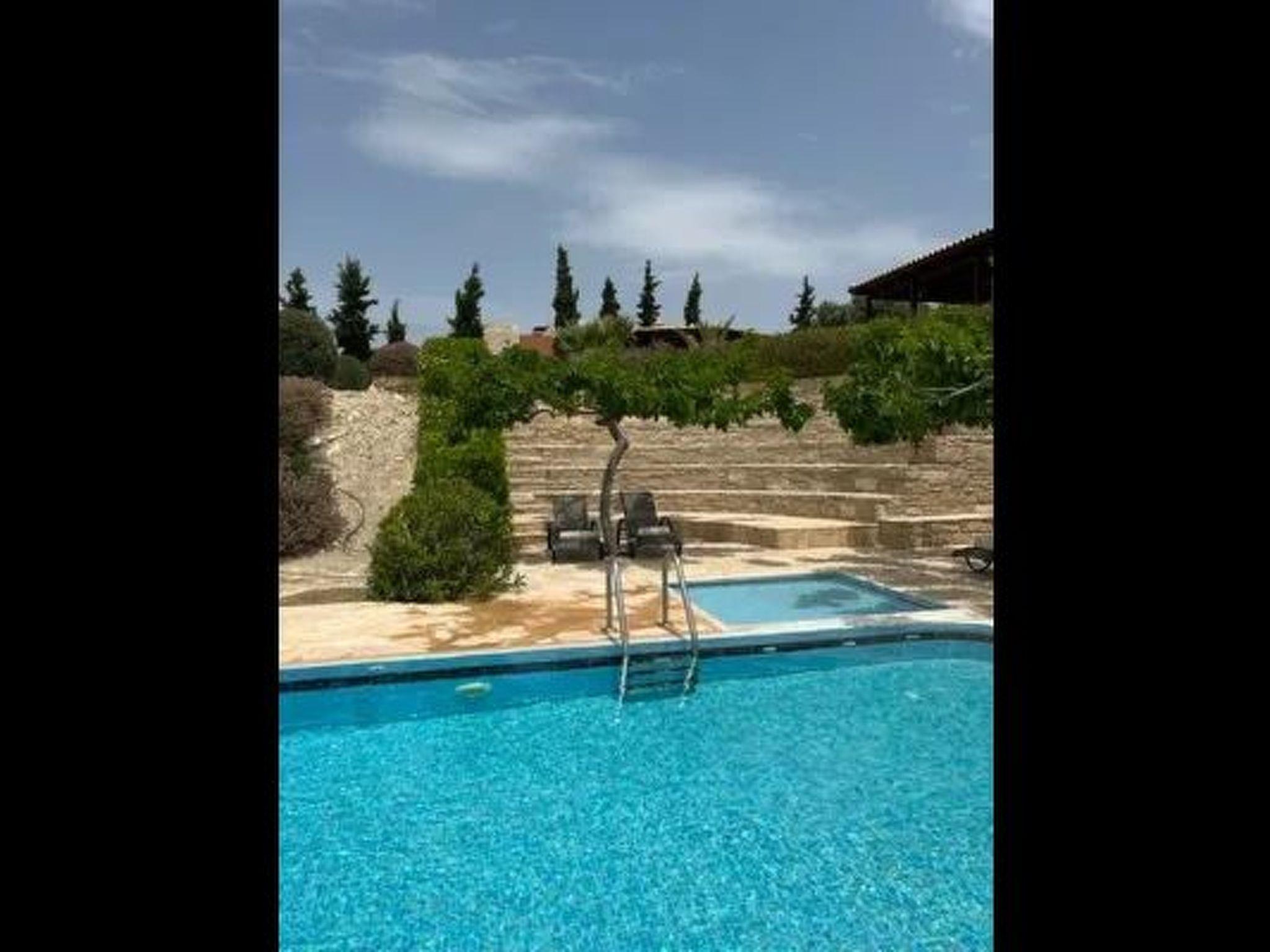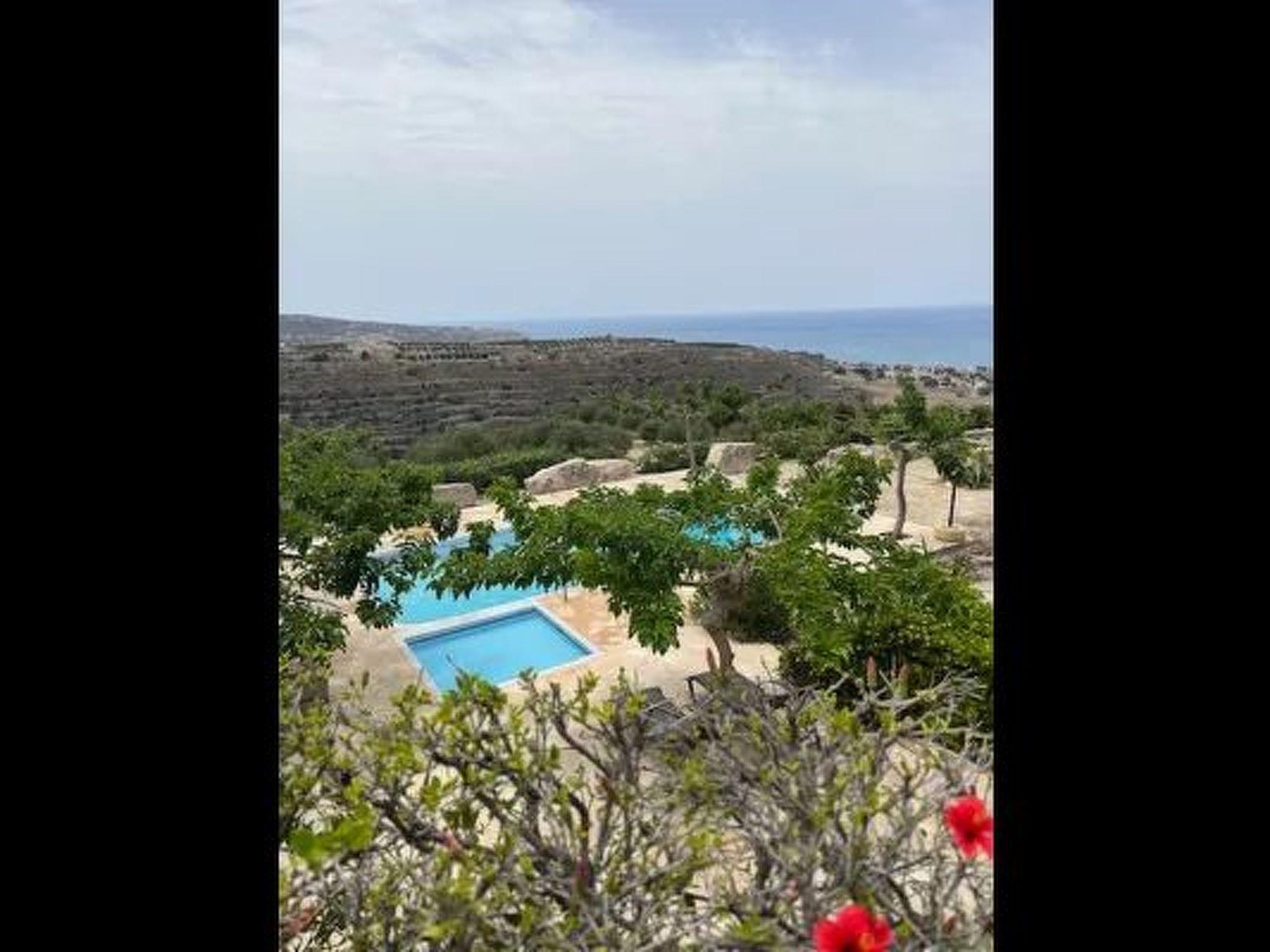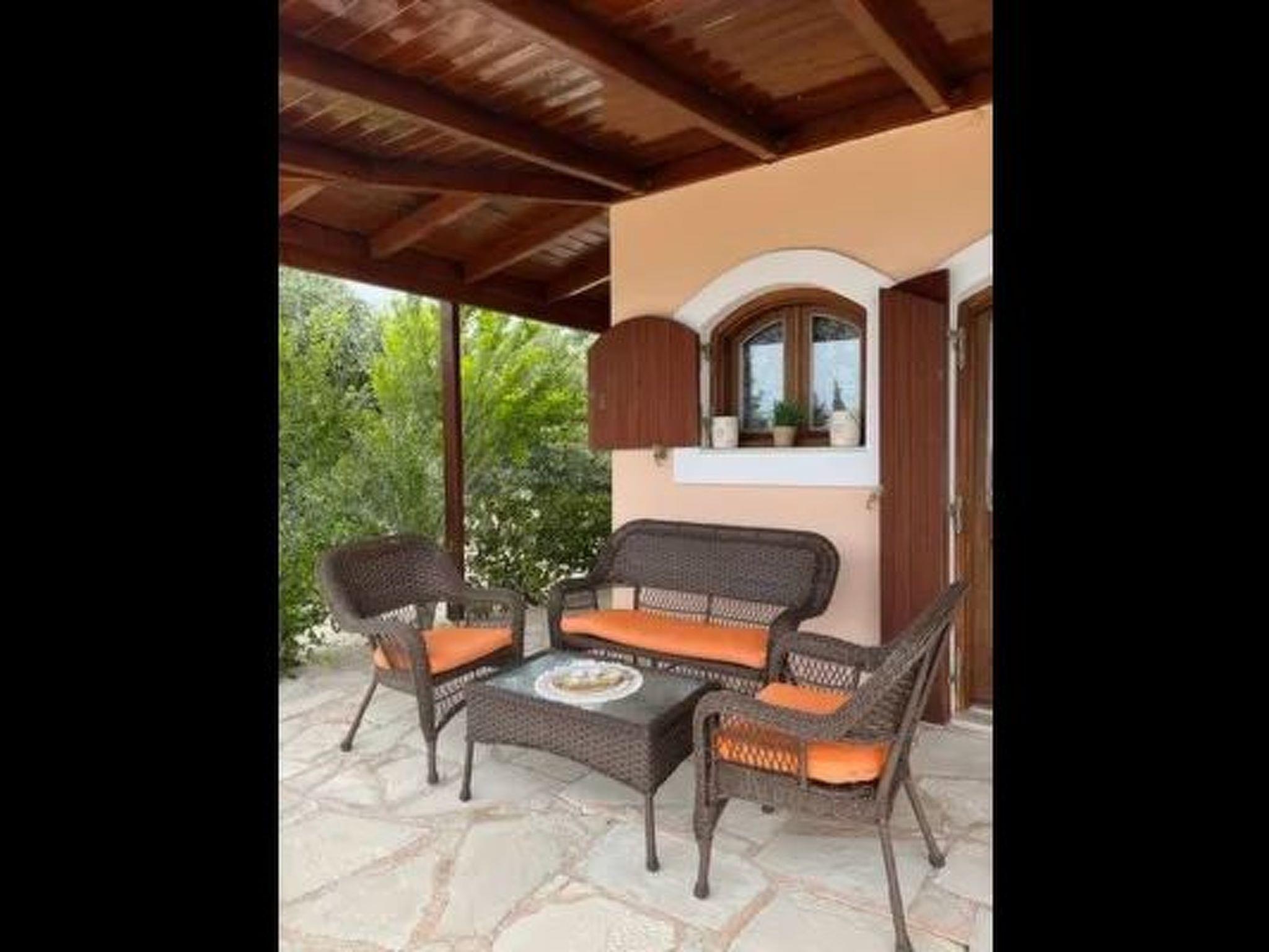 The holiday house is on one floor comprising two bedrooms, a living room-kitchen, a bathroom and a guest WC. The kitchen unit is equipped with the standard appliances such as a stove, oven, fridge with freezer compartment, and dishwasher. There is also a dining table with chairs. The adjoining living room provides further seating and a fireplace that exudes a pleasant atmosphere and warmth on cooler days. One of the bedrooms has a double bed (160 x 205cm), while the other has two single beds (each 100 x 195cm). The double bedroom provides access to the bathroom with a bath. An air conditioning unit and wireless Internet access round off this holiday house. The living room-kitchen and the two bedrooms open directly onto the veranda running around the ho0use, affording a beautiful view of the surrounding mountainous landscape, as well as of romantic sunsets over the sea. The big outdoor area invites you to sit and relax outdoors. You can spend sunny days on the veranda and can cool off in the pool. There is a brick-built and roofed grill area, so you can end the day with a cosy grill evening. Garden furniture is provided by the owner. If you arrive by car you can park it by the property.