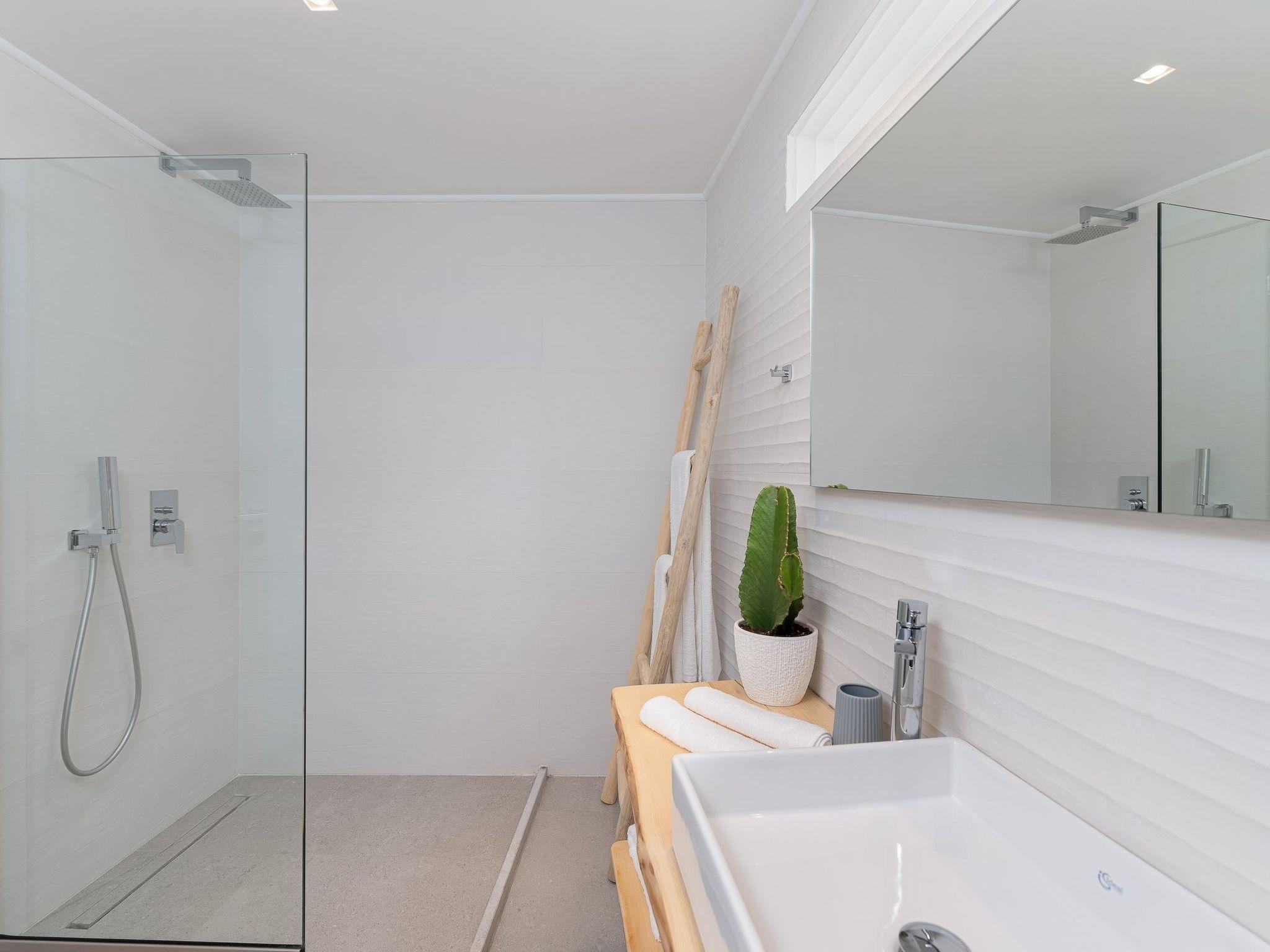 Pure relaxation on 150 square metres of outdoor living space, dining table for 8 people, garden furniture, sun loungers, shaded area, oven, barbecue fireplace, outdoor kitchen, plus 2 roof terraces of approx. 20 square metres each, with sea views, a total of 370 square metres of feel-good space!