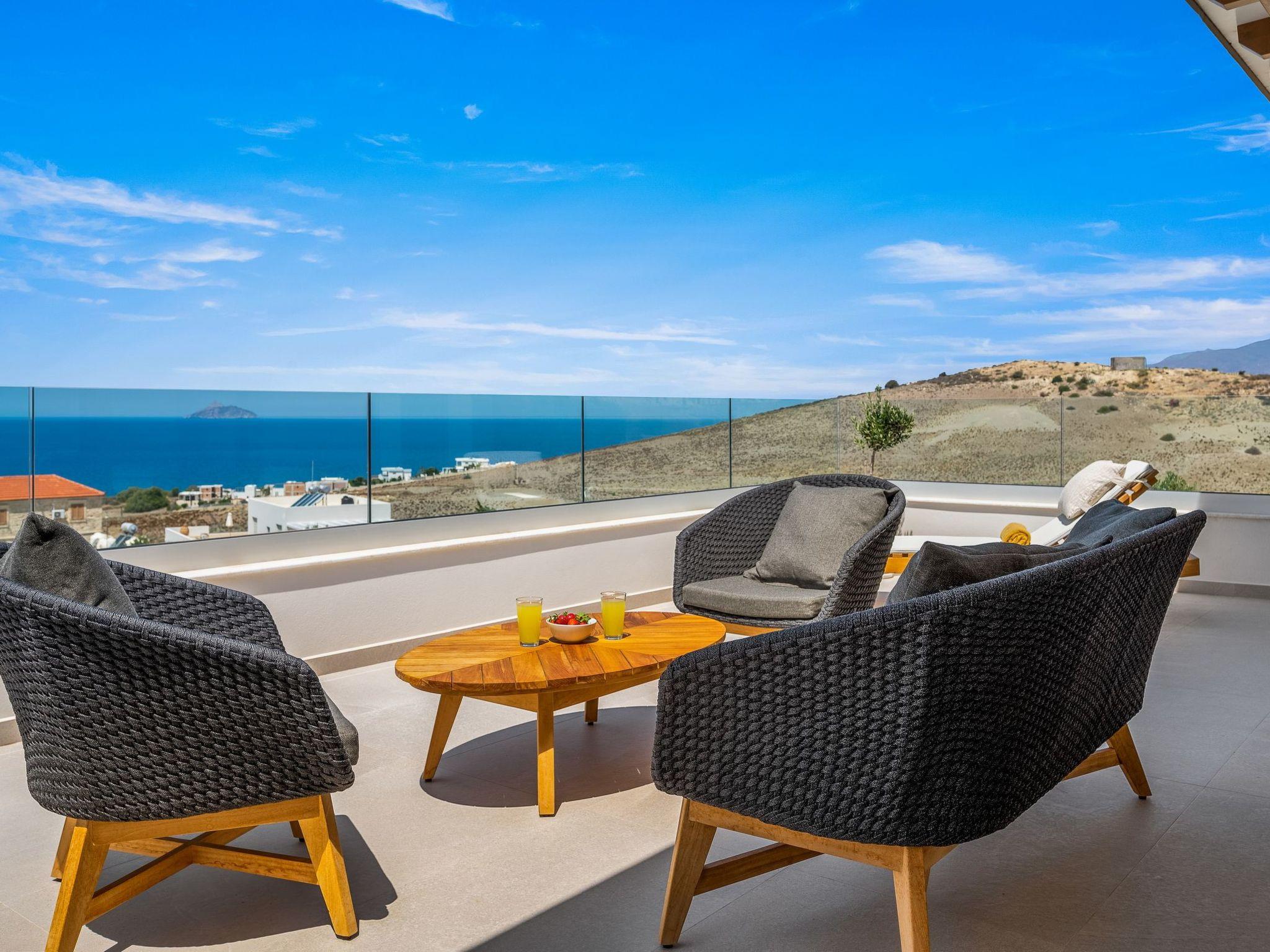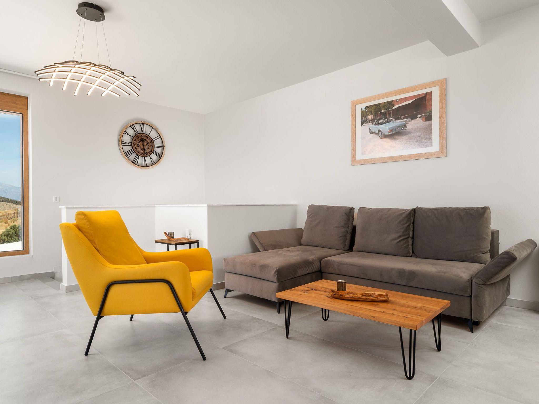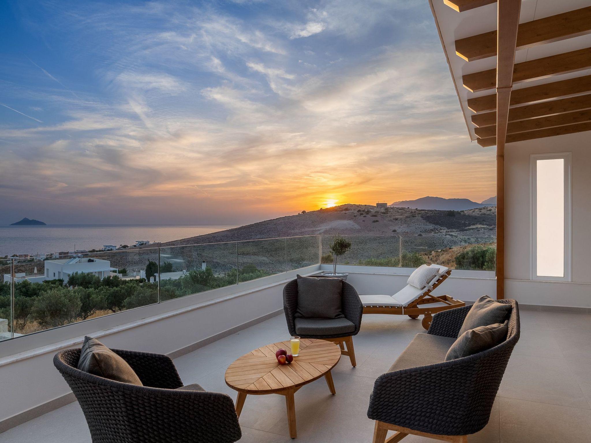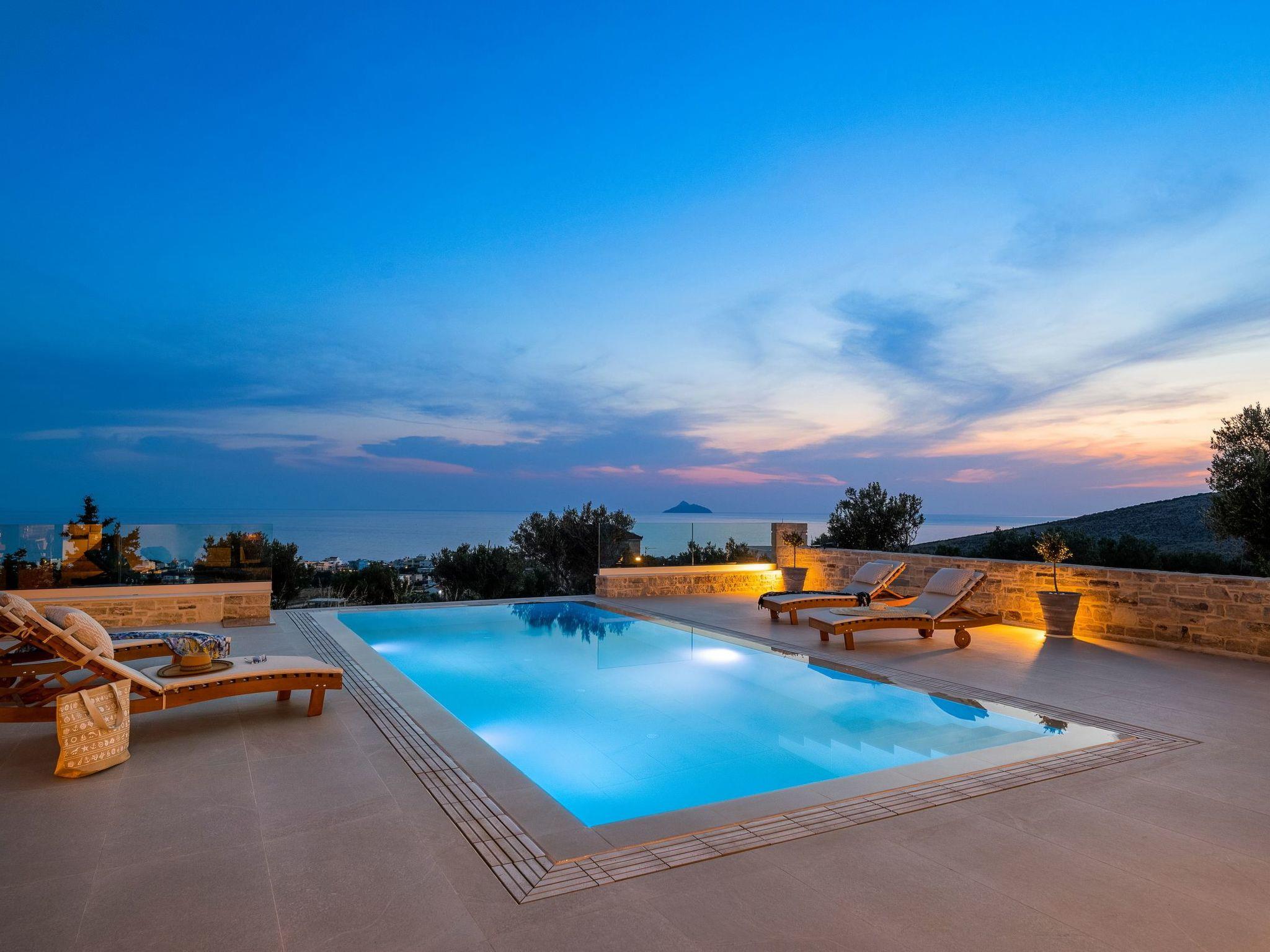 The villa not only shines inside and out, but also thanks to its first-class location. It is located 150 metres above sea level on the edge of the charming village of Kalamaki and offers stunning views of the sea and the countryside. Only a few minutes' walk separates you from the beautiful sandy beach and the lively village centre of Kalamaki, where you can immerse yourself in local hospitality and culture.