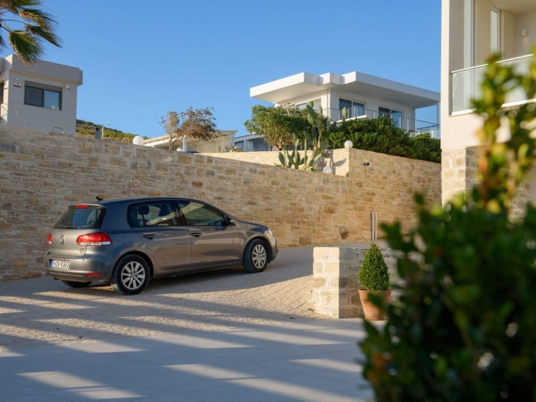Large panoramic windows offer spectacular views of the Libyan Sea and the Paximadi Islands. If you are a nature lover and long for peace and quiet, this modern villa is the perfect choice for you. The villa, which has an open-plan kitchen/living room, a large sofa bed, 2 airy bedrooms with double beds 1.60 m x 2.00 m, 2 bathrooms and a guest toilet, can comfortably accommodate up to 6 people. The tasteful living area and the fully equipped kitchen with dining area, the large balcony, 43sqm, with seating area and dining table give an unobstructed view of the sea and in the evening of fantastic sunsets.