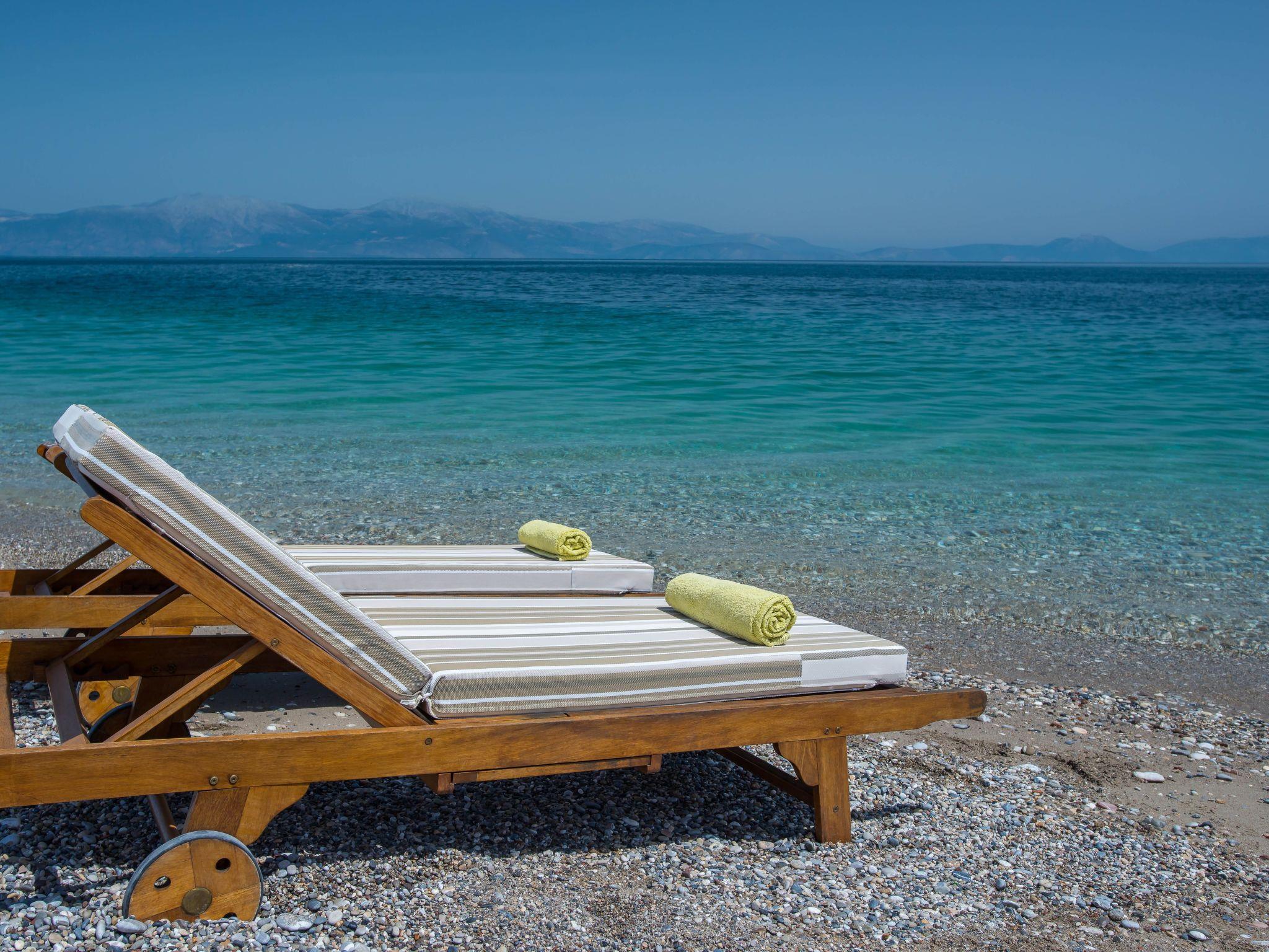 This luxury 95 sqm private suite is located in front of the amazing beach of Sikia in the Corinthian Gulf. So you can reach the beach just by making only 3 steps.