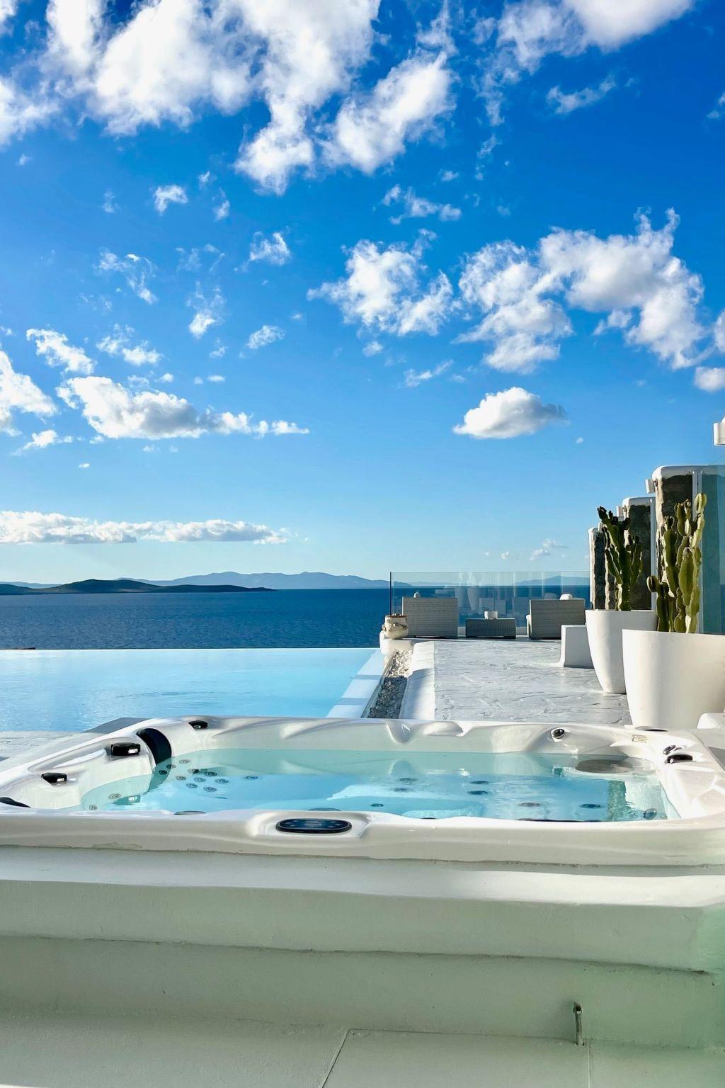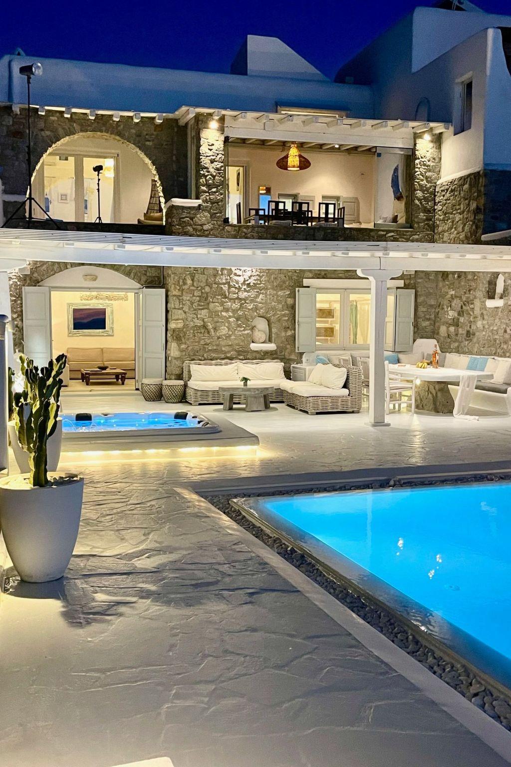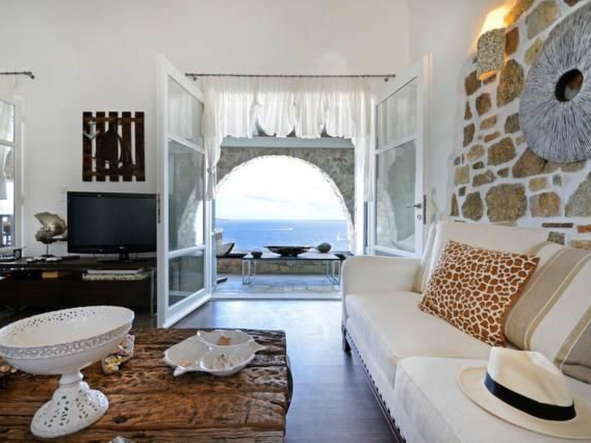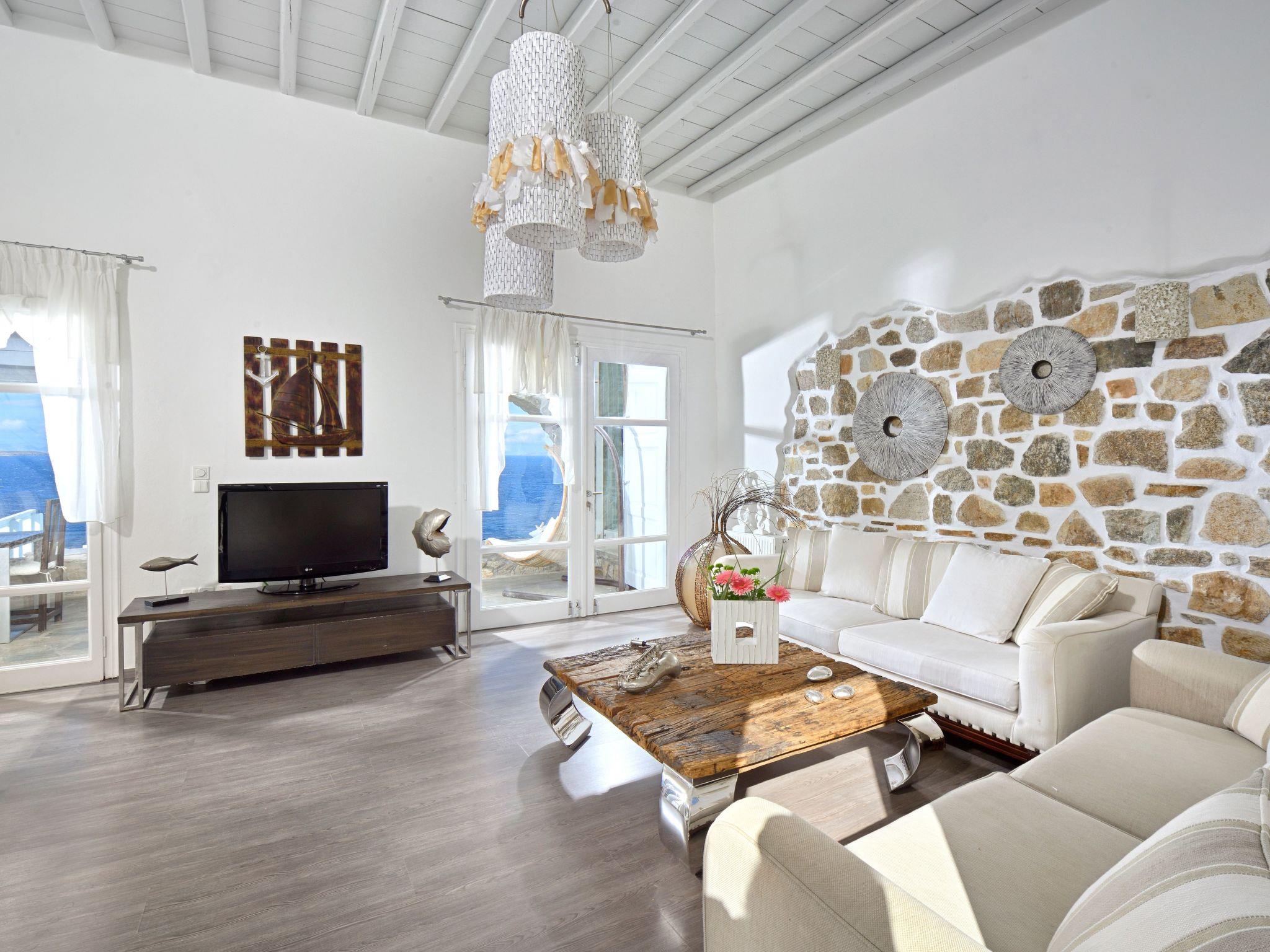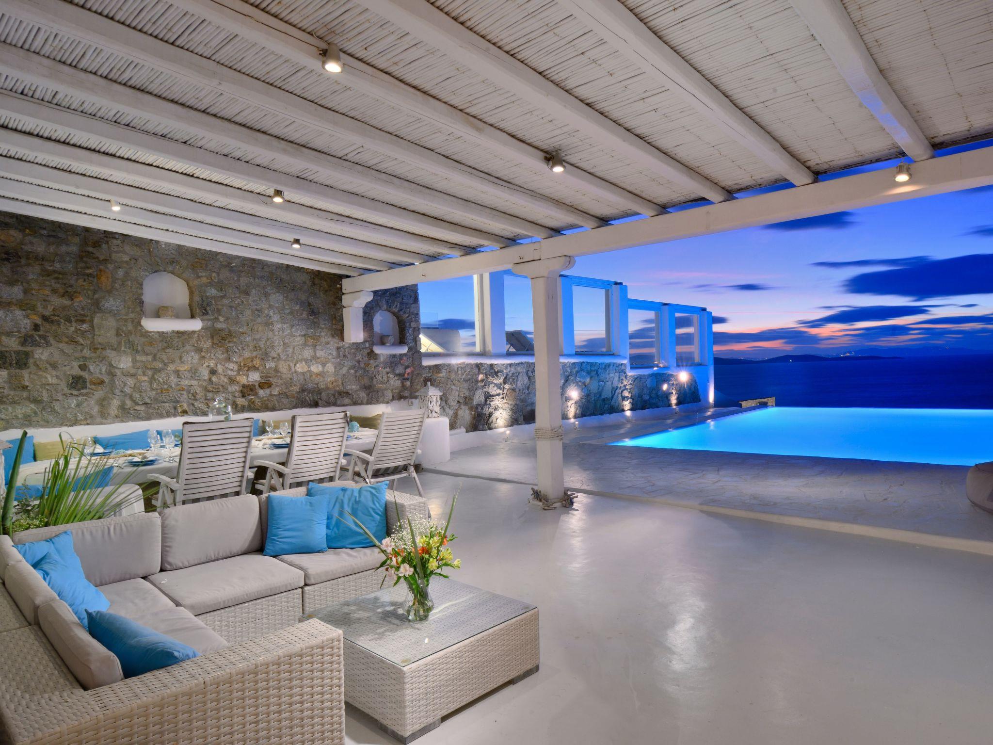 The property is located in one of the most distinct areas of the island with uninterrupted views of the Aegean Sea and the Cycladic Islands of Delos, Syros, Tinos with 180 degrees views having a large infinity edged swimming pool.