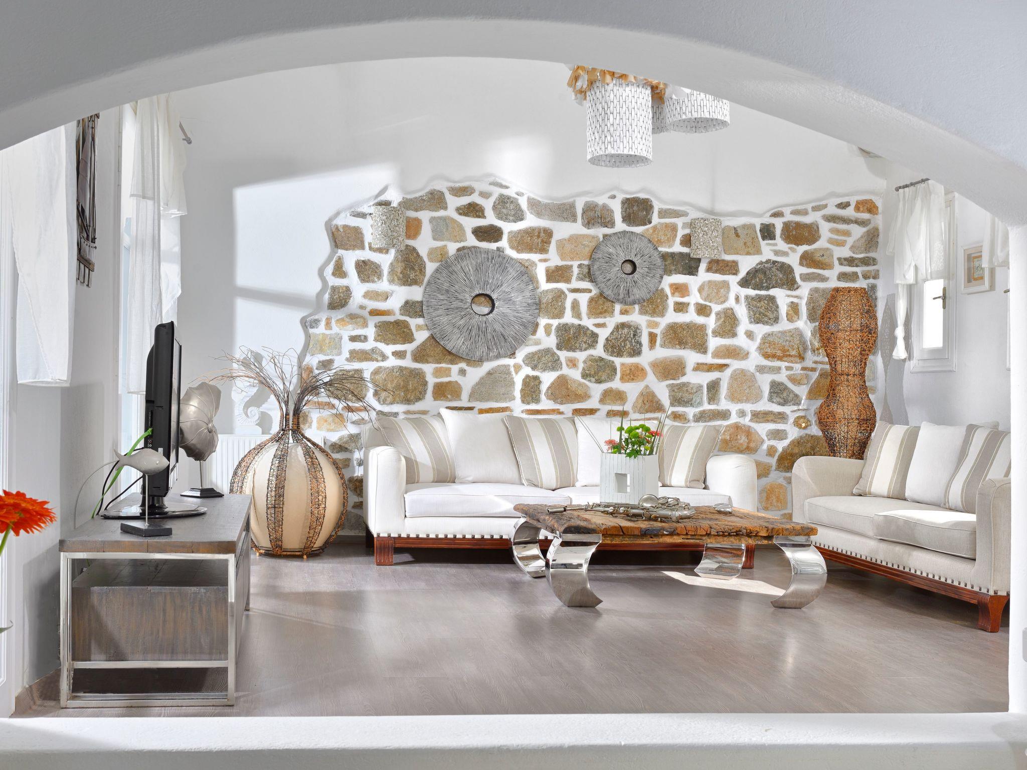 The villa has access through a walking distance to a secluded small beach which is protected from the winds in a picturesque giant rocky landscape ideal for walking, taking photographs and swimming offering the ideal location for relaxed holidays for families or groups of friends.