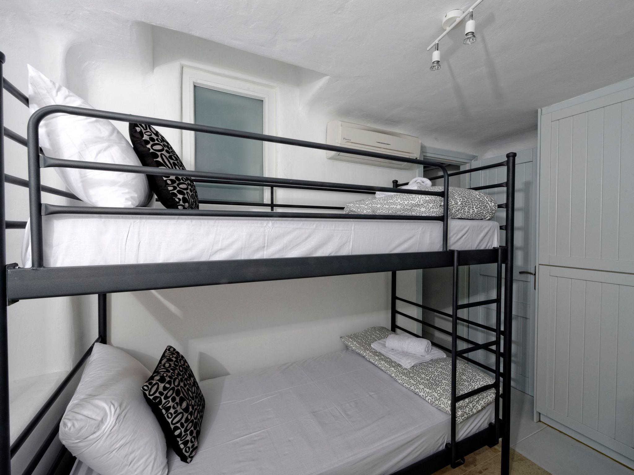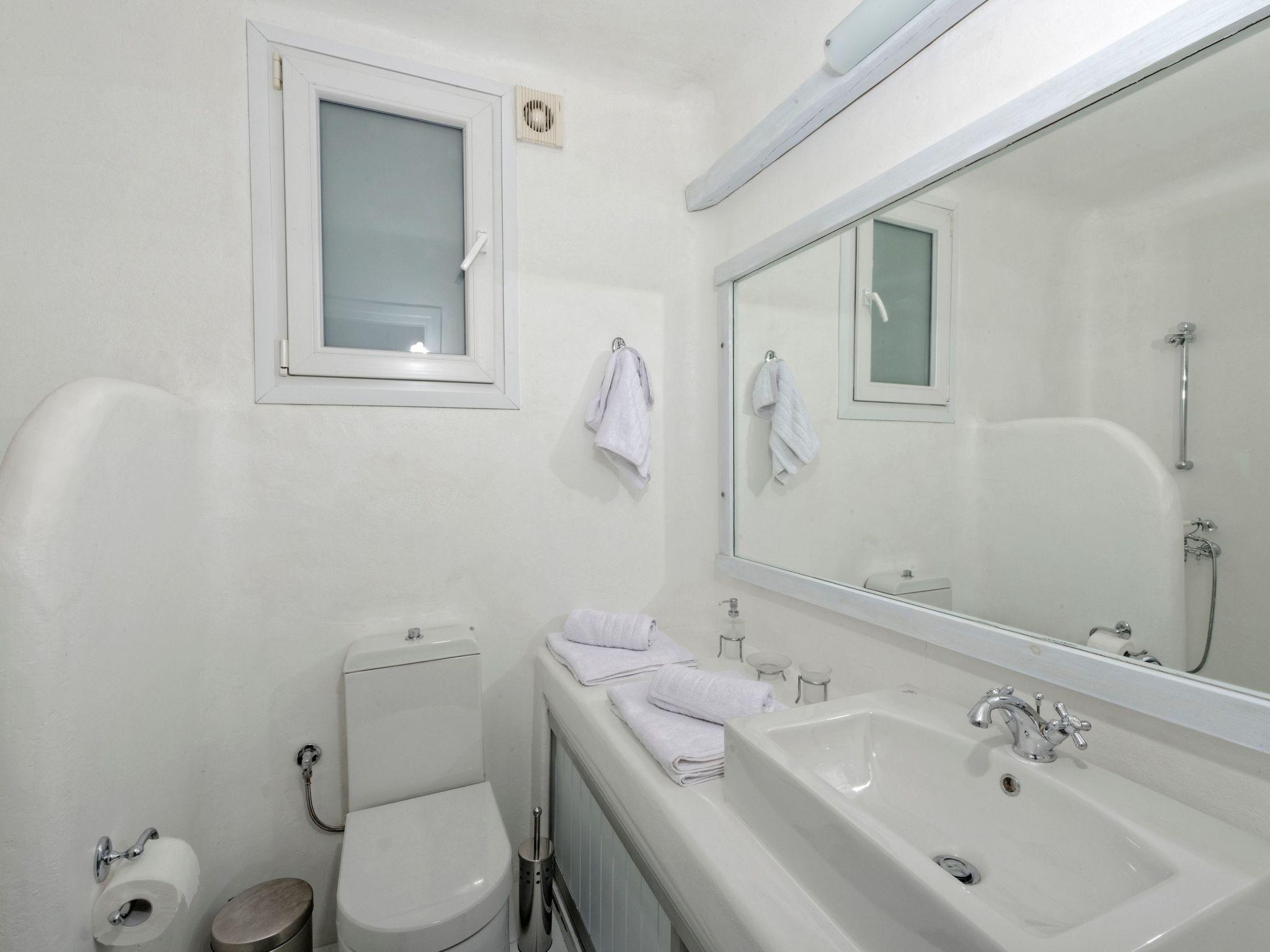 As a part of a complex of autonomous villas it combines traditional mykonian architecture with the luxury of modern conveniences. The ground level hosts the living room, a full equipped open kitchen, a dining area, a bedroom and a bathroom where the underground level hosts four bedrooms, three bathrooms, a small kitchen, a living room and a laundry room.