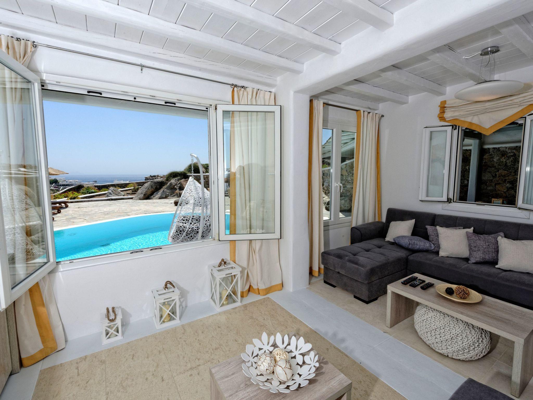 Two kilometers from the villa we have kalo livadi beach which is one of the most cosmopolitan beaches of Mykonos. At 1,5 kilometer we have Agia Anna beach and an amazing cave restaurant at the same spot. Another beach at the same spot is Kalafatis beach that you can enjoy water skiing or other activities. Finally at 3 kilometers we do have Lia beach that is famous for scuba diving.