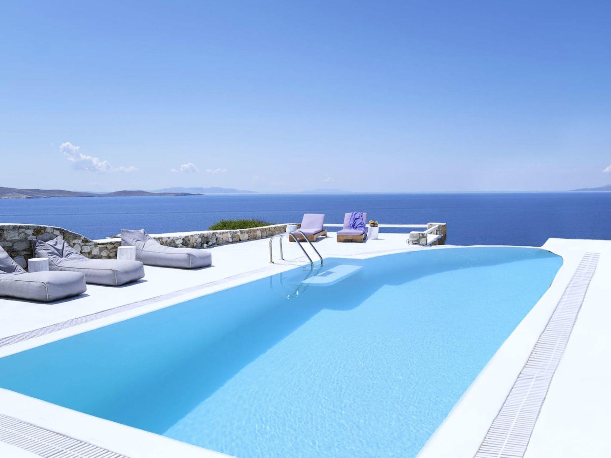 The property is located in one of the most distinct areas of the island with uninterrupted views of the Aegean Sea and the Cycladic Islands of Paros, Naxos, Delos, Syros, Tinos with 180 degrees views having a large infinity edged swimming pool.