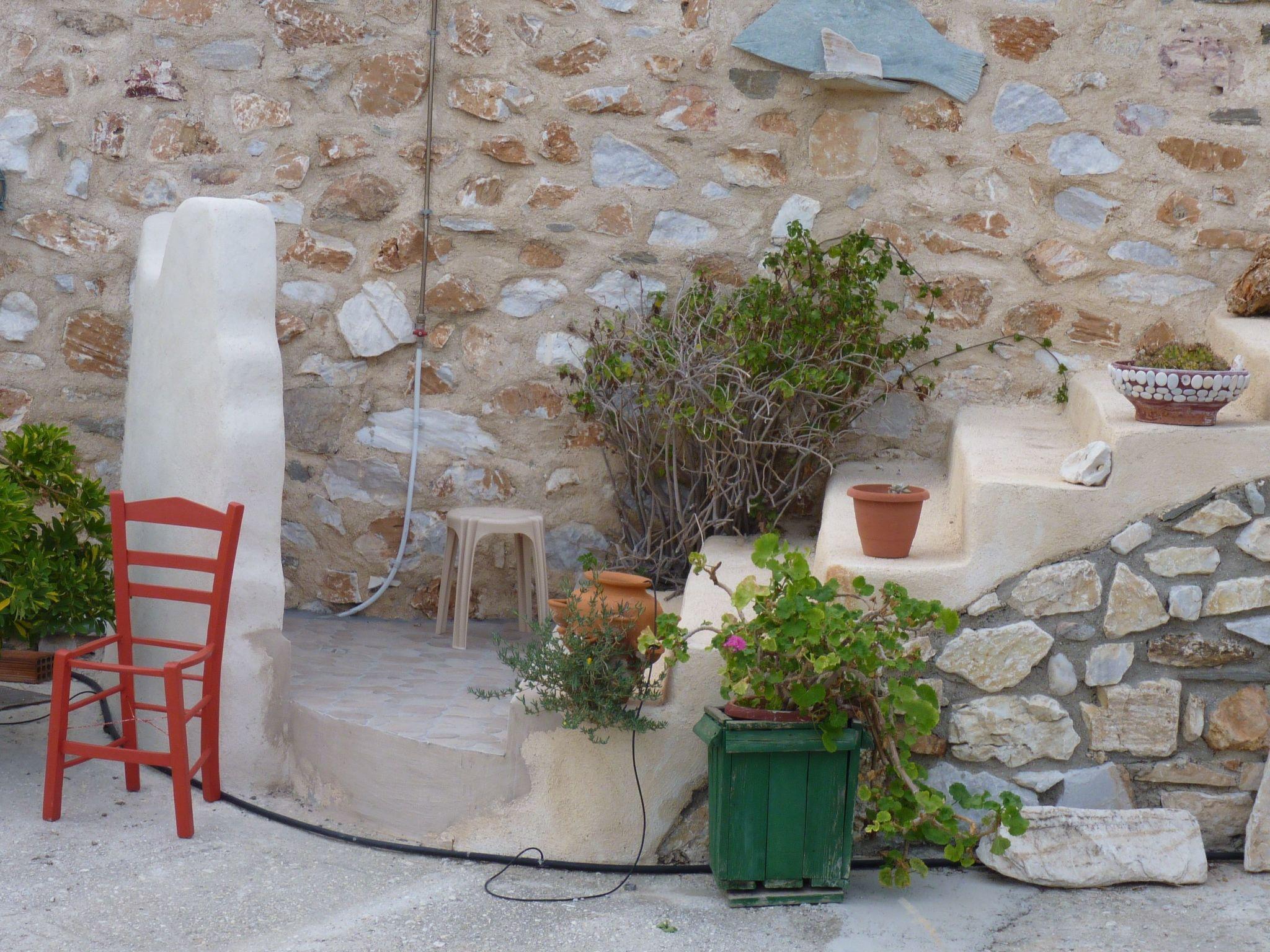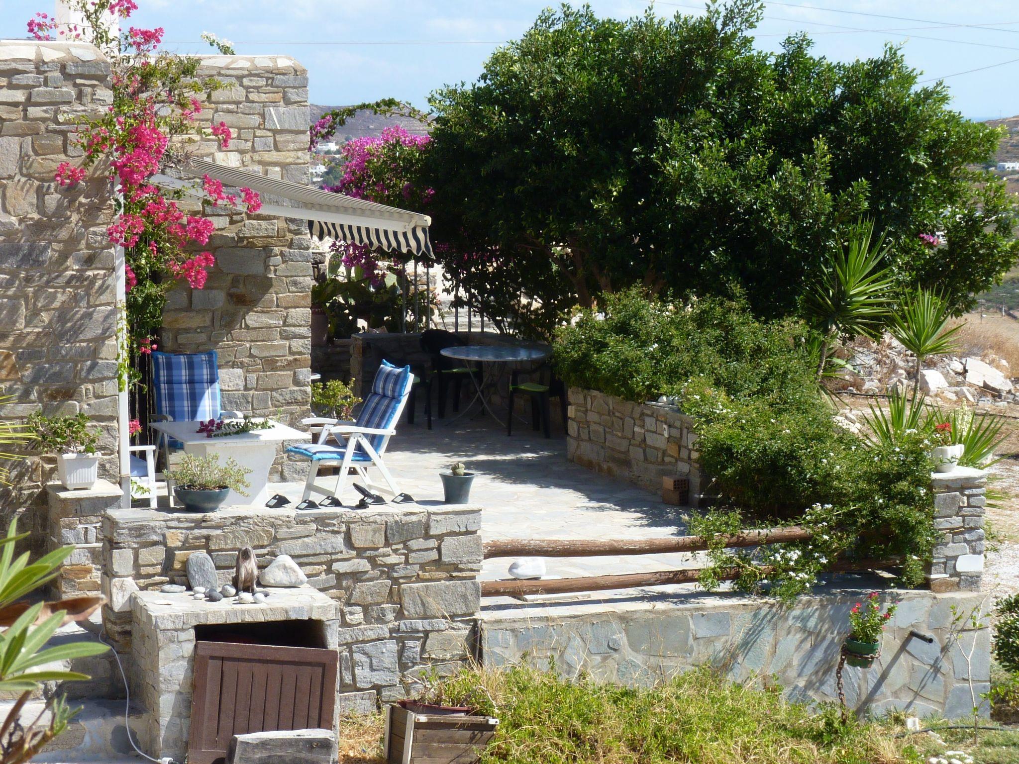 House with fantastic views surrounded by terraces in an absolutely quiet location surrounded by Bouganville as well as olive and fig trees Detached stone house in an area of 6000 square metres on a hill, Delion, situated below the former temple of Apollon with unobstructed views of the bay of Paros, the village of Parikia and the mountains beyond. The house is surrounded by terraces and offers a sheltered spot for every wind direction.