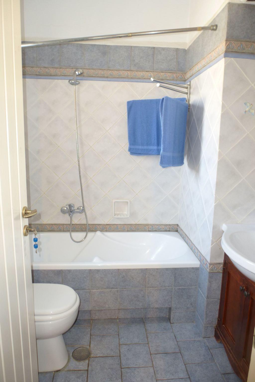 The house is situated on a plot of 6000 square metres overgrown with olive and fig trees. It is surrounded by terraces in an absolutely quiet location and about 4 to 5mn drive to the town centre and the beach. To the side of the house there is a large terrace with seating and barbecue facilities. The terraces are equipped with garden furniture, sun loungers and parasols and there are three outside showers on the property, one of them next to the kitchen with hot water connection and a dry toilet on the property.