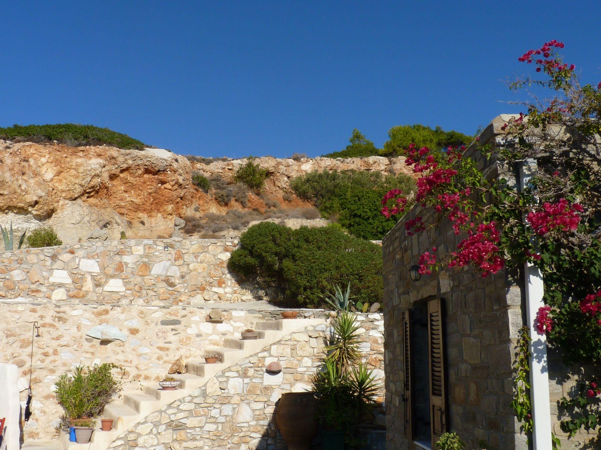 The house is nestled in a hill, below the former Apollon temple on the hill with unobstructed views of the sea and the bay of Parikia and Nausa.