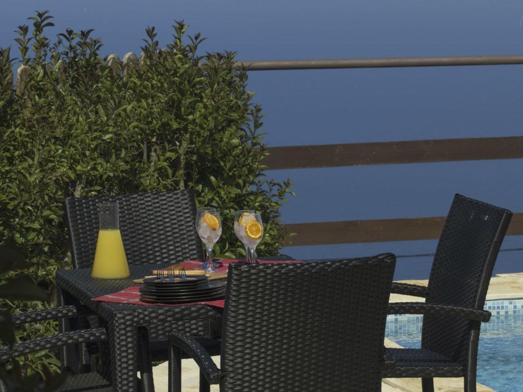 The villa can host up to 5 people. It has a comfortable living room with an open space fully equipped kitchen. The living room leads to the amazing private pool that offers a splendid sea view to the Ionian Sea. The guests can enjoy relaxing peaceful moments by the pool with their loved ones and appreciate the breathtaking sunsets the Ionian Sea has to offer.