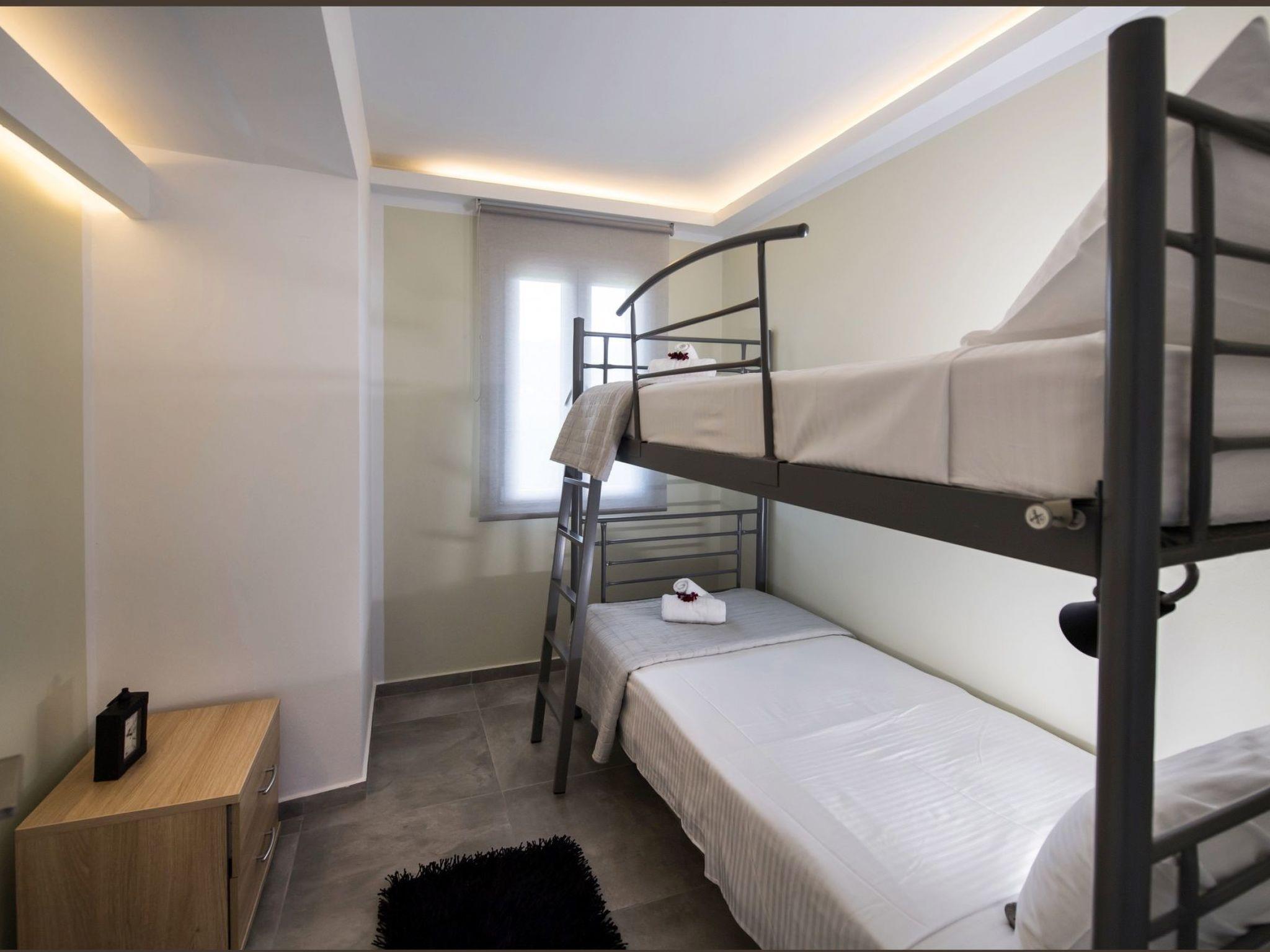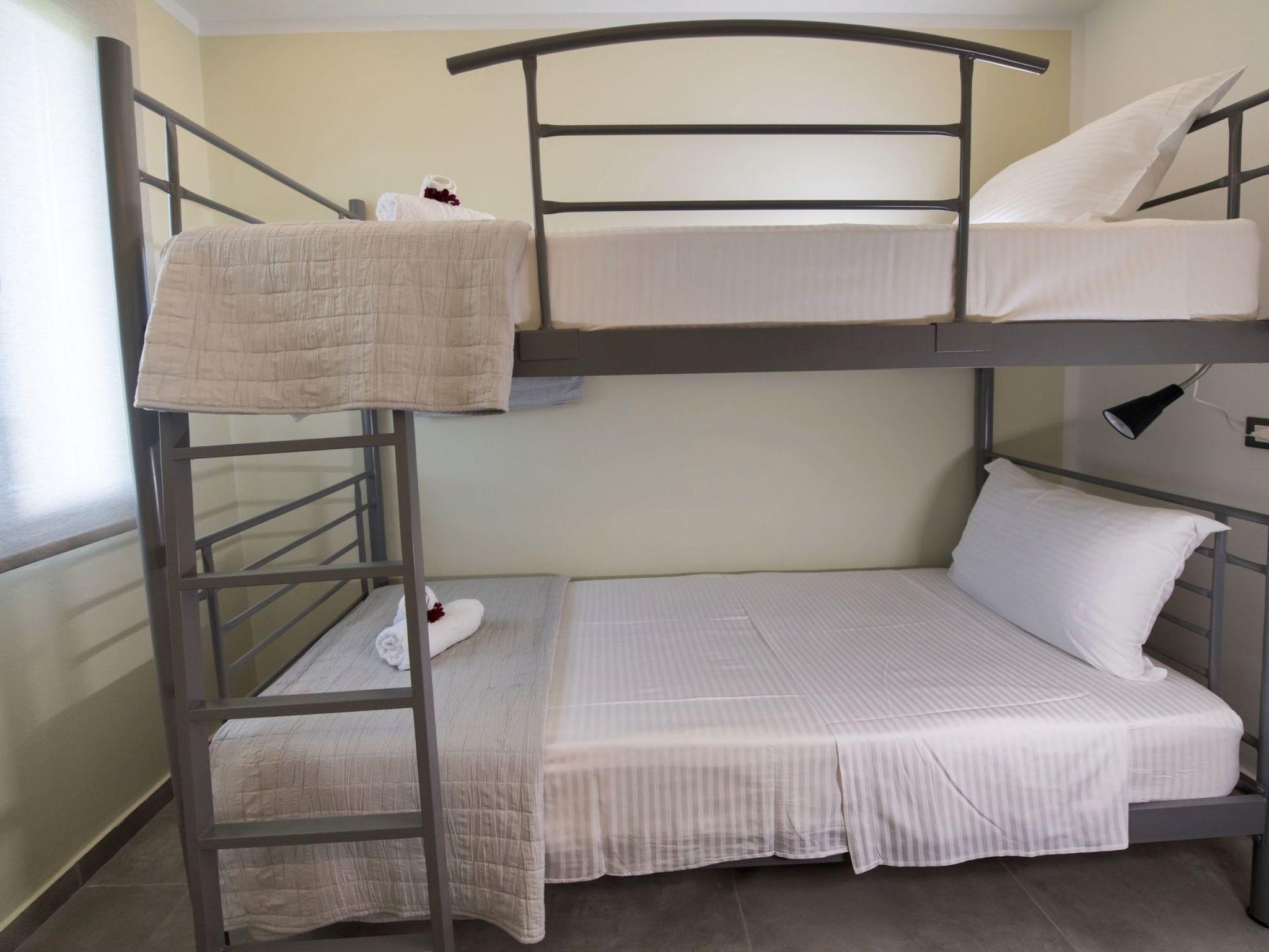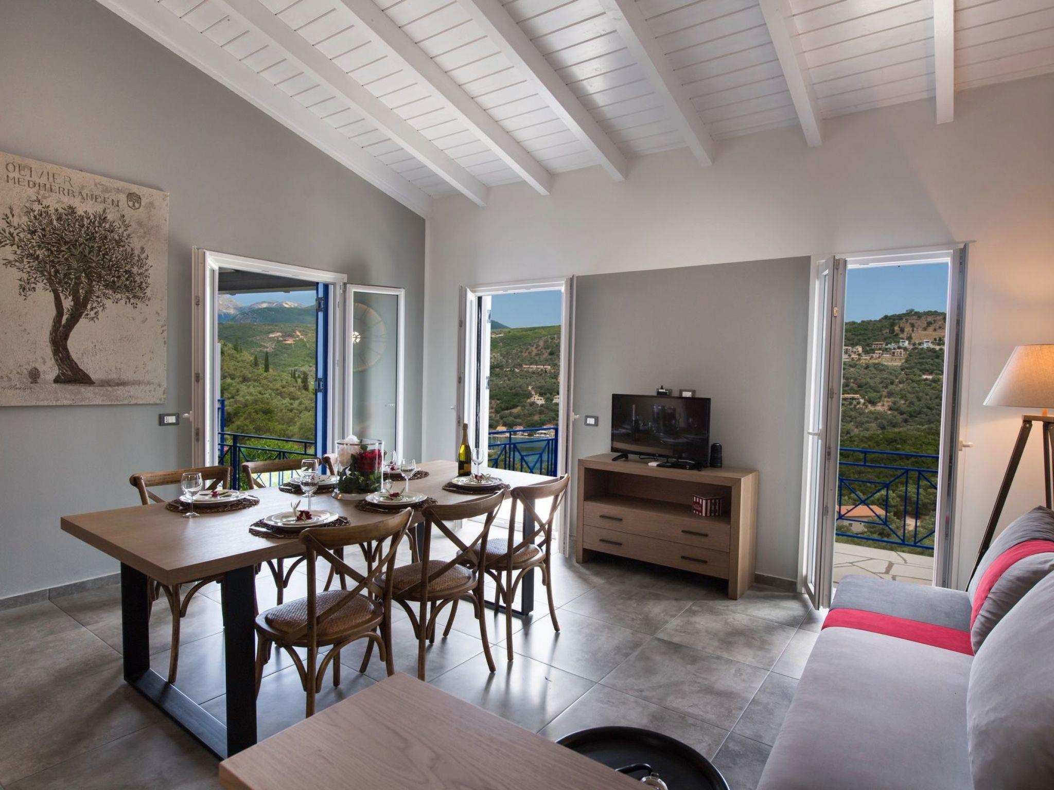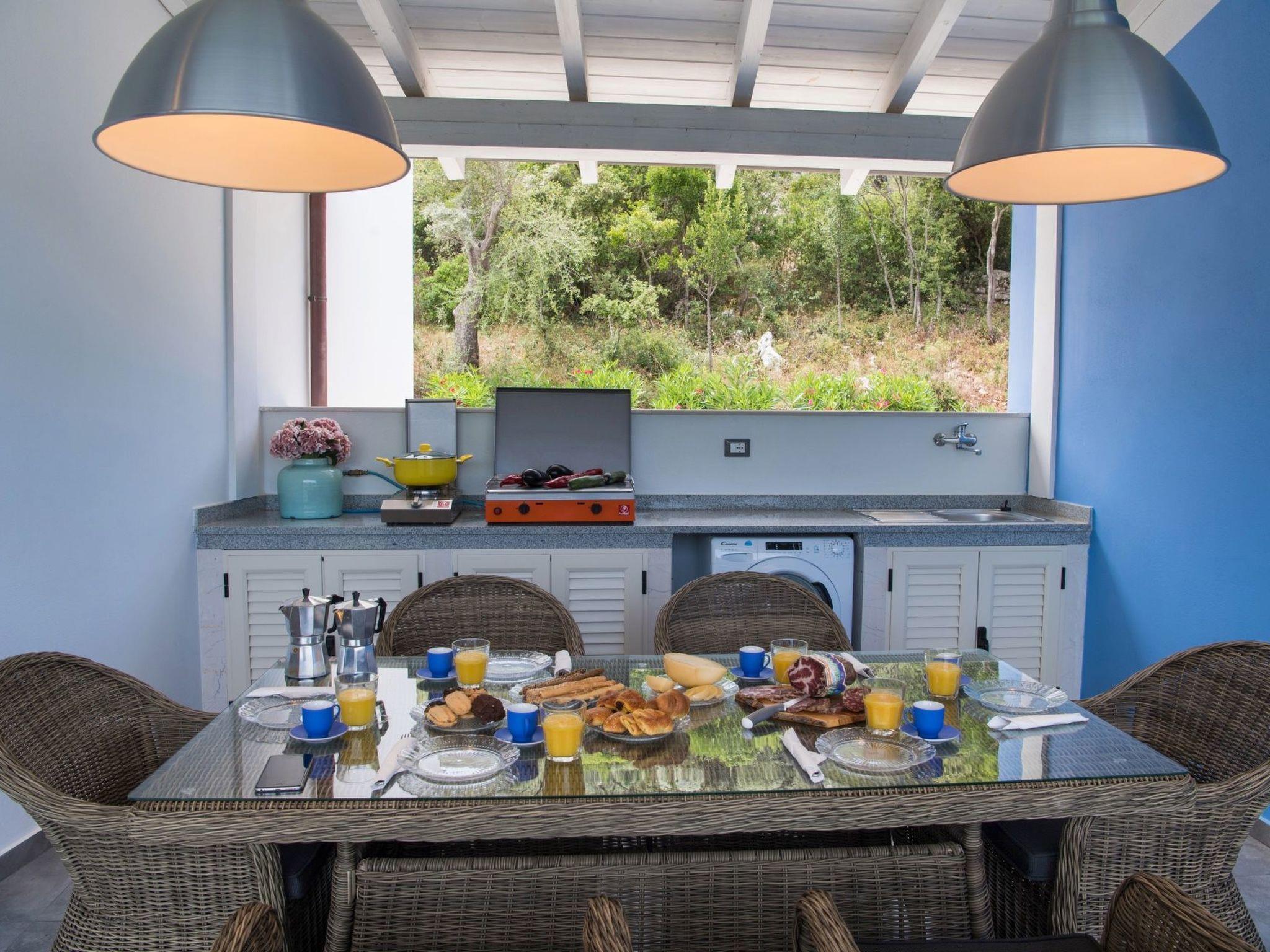 Villa Amantea3 is for 6 persons maximum, it consists of two floors of about 65 square metres each, on the first floor there is the living area, on the ground floor there are 2 double bedrooms, a half bedroom with bunk beds and storage room. There are 2 large bathrooms with showers. The living area has an equipped kitchen, a large table with 6 chairs, a comfortable sofa, and is communicating with a balcony and a large terrace both with a panoramic view of the bay of Sivota. The covered terrace is furnished with a second kitchen with gas barbecue, cooker and sink, table and sitting area. There are: Flat screen TV, Italian and American coffee machines, internet access, washing machine, dishwasher, an iron, and a generous supply of crockery and cutlery. Air conditioning in the living area and in the 2 double bedrooms.