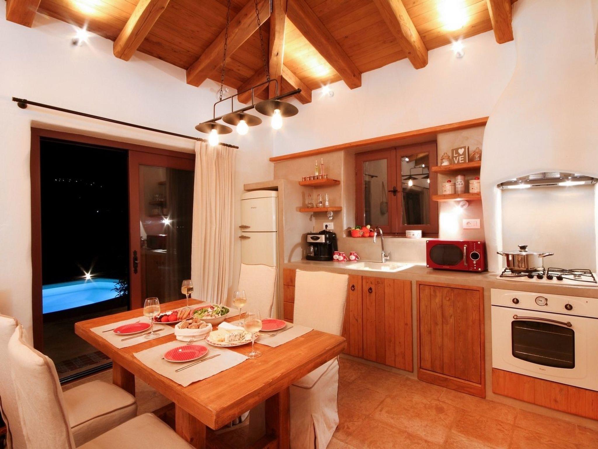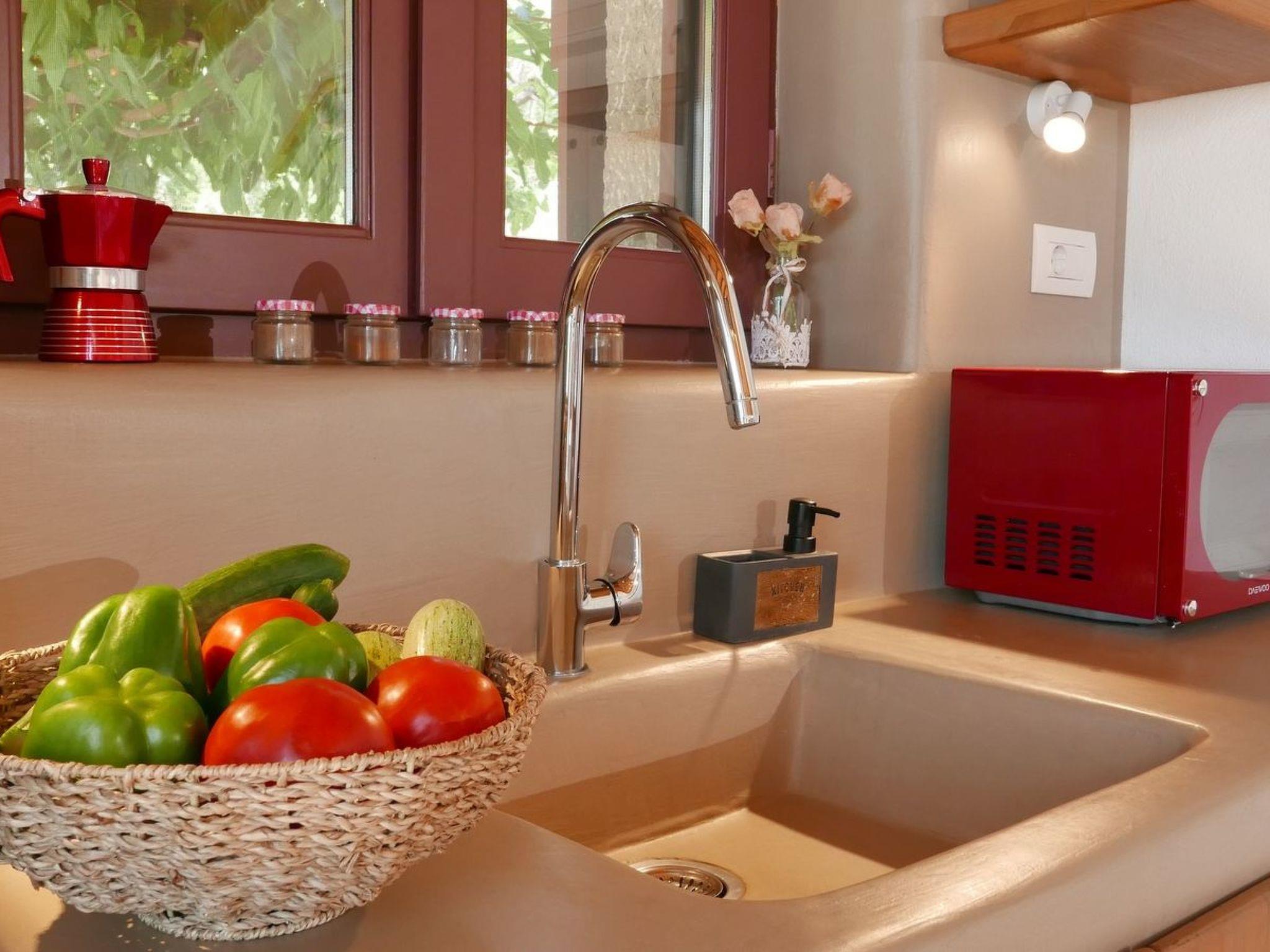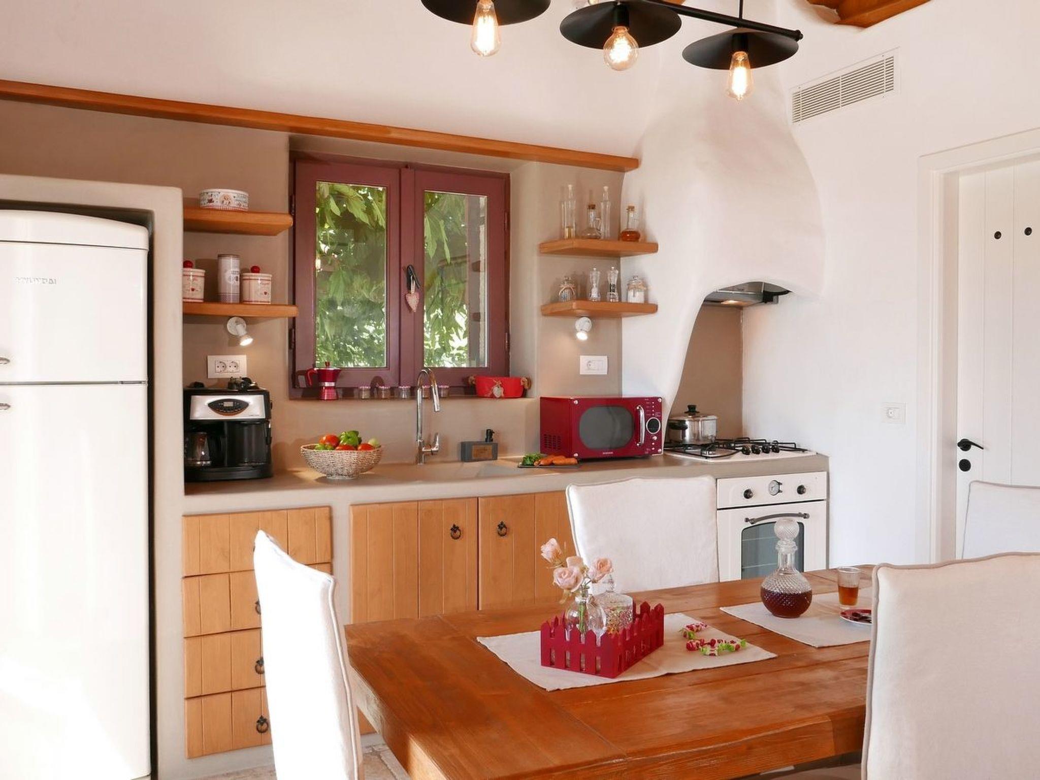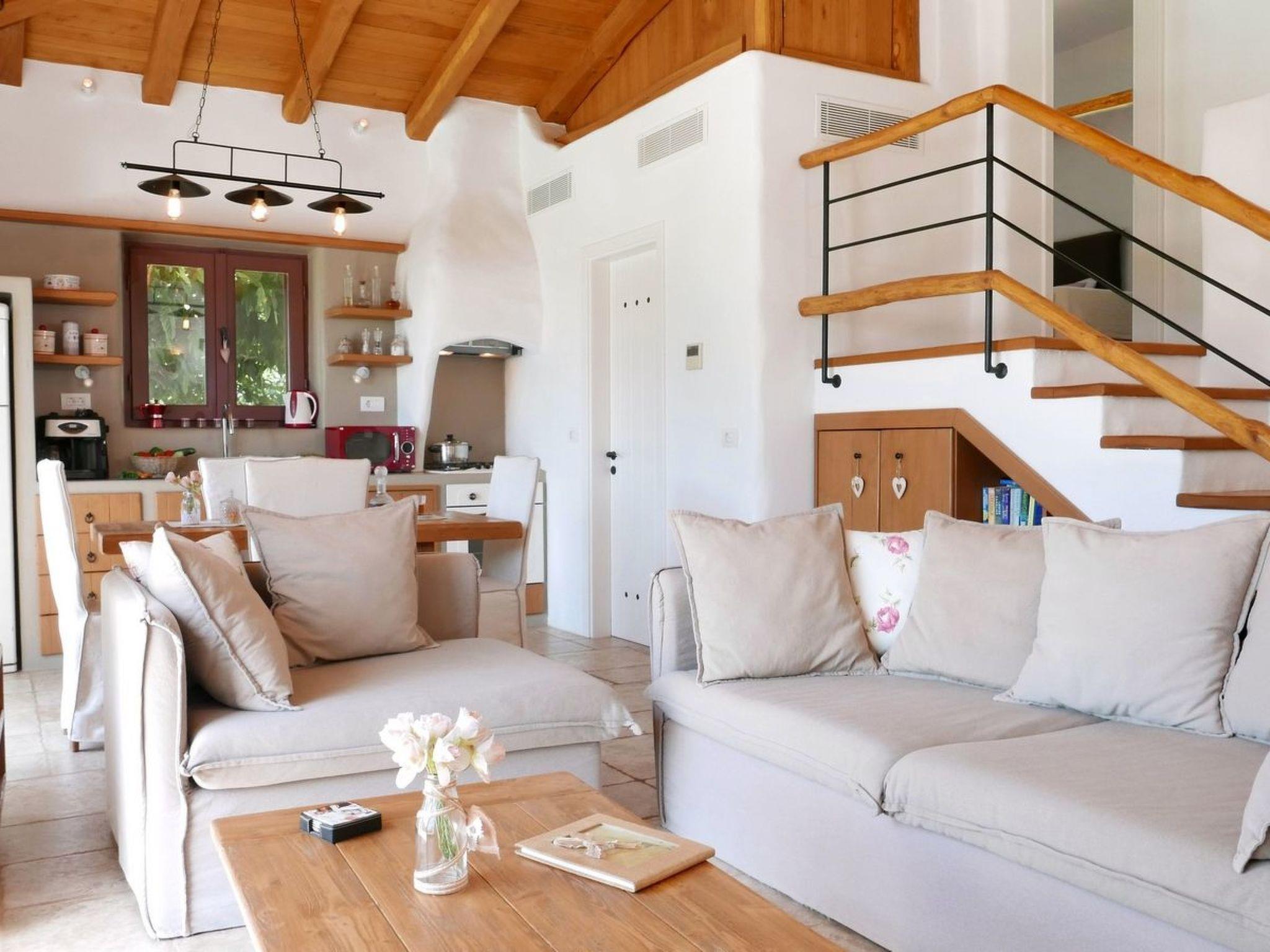 The two-storey villa is in a new complex of independent holiday villas. It has two bedrooms and can accommodate four persons. It is equipped as follows: Kitchen Fully equipped kitchen, refrigerator-freezer, cooker with gas hotplates, dishwasher, microwave oven, toaster, filter - espresso coffee maker, kettle. Bedroom Anatomic luxurious mattresses from natural materials, different pillows, 100% cotton-satin linen, full furniture equipment. Bathroom Professional hair-dryer with all the accessories, shampoo, shower gel, liquid soap. Coffee and welcome supplies on welcoming, free consumption of the available fruit and the vegetables of the garden. Swimming Pool Private swimming pool with comfortable sun beds and personal towels, stone sofas with cushions on, shower. Furniture - Garden Equipment BBQ, dining table, shading pergolas, swing. Garden Vegetable garden and aromatic herbs flower-bed, olive trees as well as fruit-baring trees. Entertainment 40" Led satellite TV in the living room and 28?? in every bedroom. Free internet access (wi-fi). Various Private parking space, individual air-conditioning / inverter in all spaces, washing machine, cleaning products, ironing equipment, sewing kit, first aid kit.